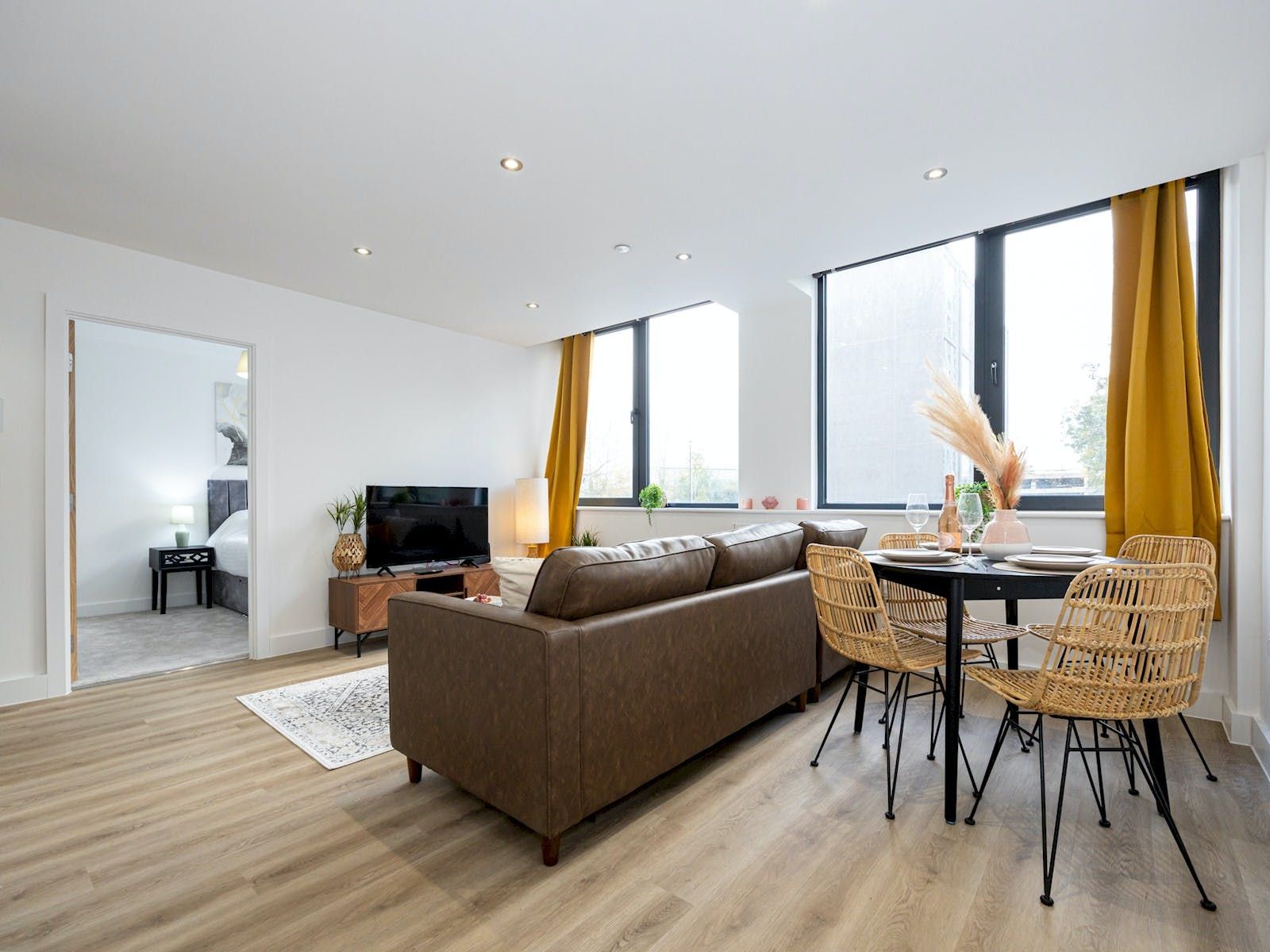 If you’re an avid football fan, then you won’t want to miss this home. Located right in the heart of Old Trafford, mere minutes away from the iconic football stadium with the same name – the ‘Theatre of Dreams', Manchester United’s home turf. Inside, you’ll have everything you’d need for a comfortable stay, including a fully-equipped kitchen and cosy living room. When you’re ready to venture out, it’s an easy train ride right into the hustle and bustle of central Manchester. But it’s also easy to drive, because this apartment has a parking spot available – somewhat of a rarity this close to the city!