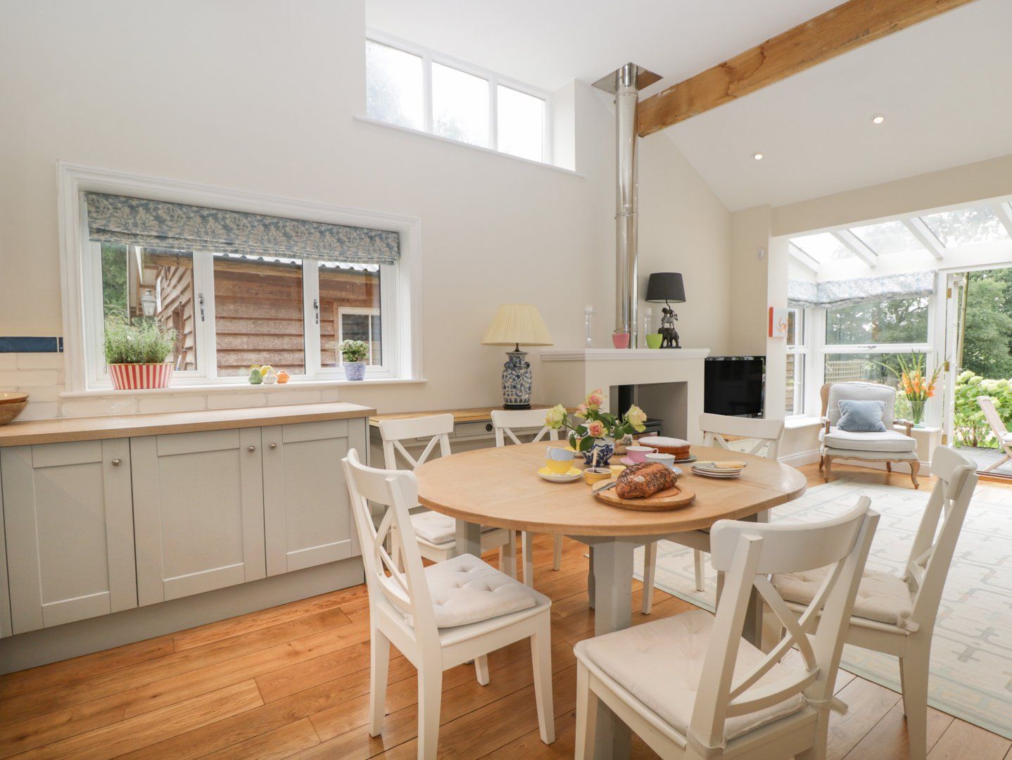 Accomodation Details Single-storey. Three bedrooms: 1 x super-king-size, 1 x twin (zip/link, can be double on request), 1 x twin. Bathroom with bath, hand-held shower, walk-in shower, basin and WC. Open-plan living space with kitchen, dining area and sitting area with woodburning stove