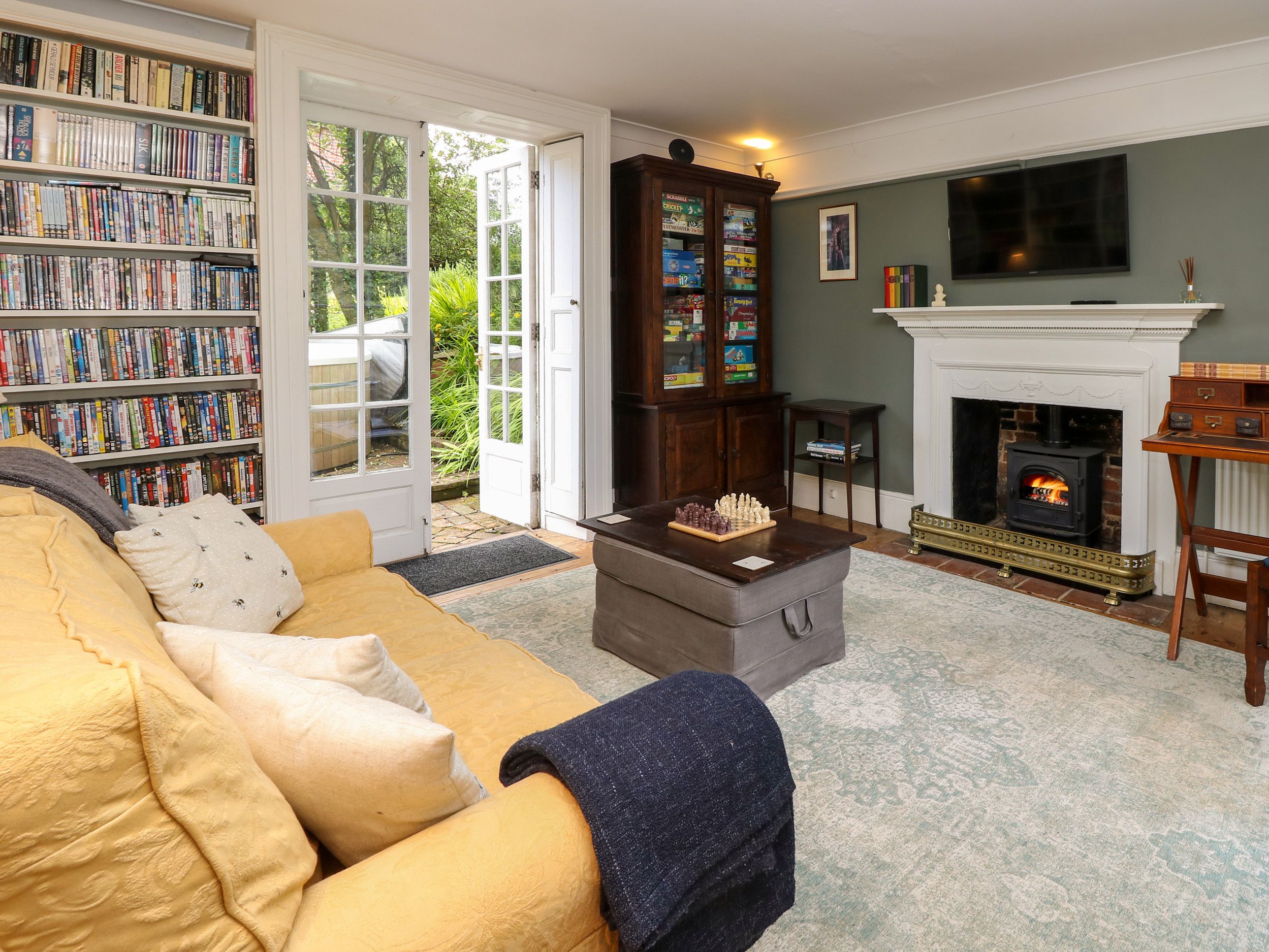 Accomodation Details Four bedrooms: 1 x super-king-size (zip/link can be twin on request), 1 x king-size with en-suite sunken bath, basin, heated towel rail and WC, 1 x family room with king-size and full size single bed, 1 x full size single bed. Bathroom with freestanding bath, basin and WC. Ground library room with full size bed settee. Ground-floor shower room with walk-in shower, basin and WC. Dining room. Sitting room with woodburning stove. Library with Smart TV