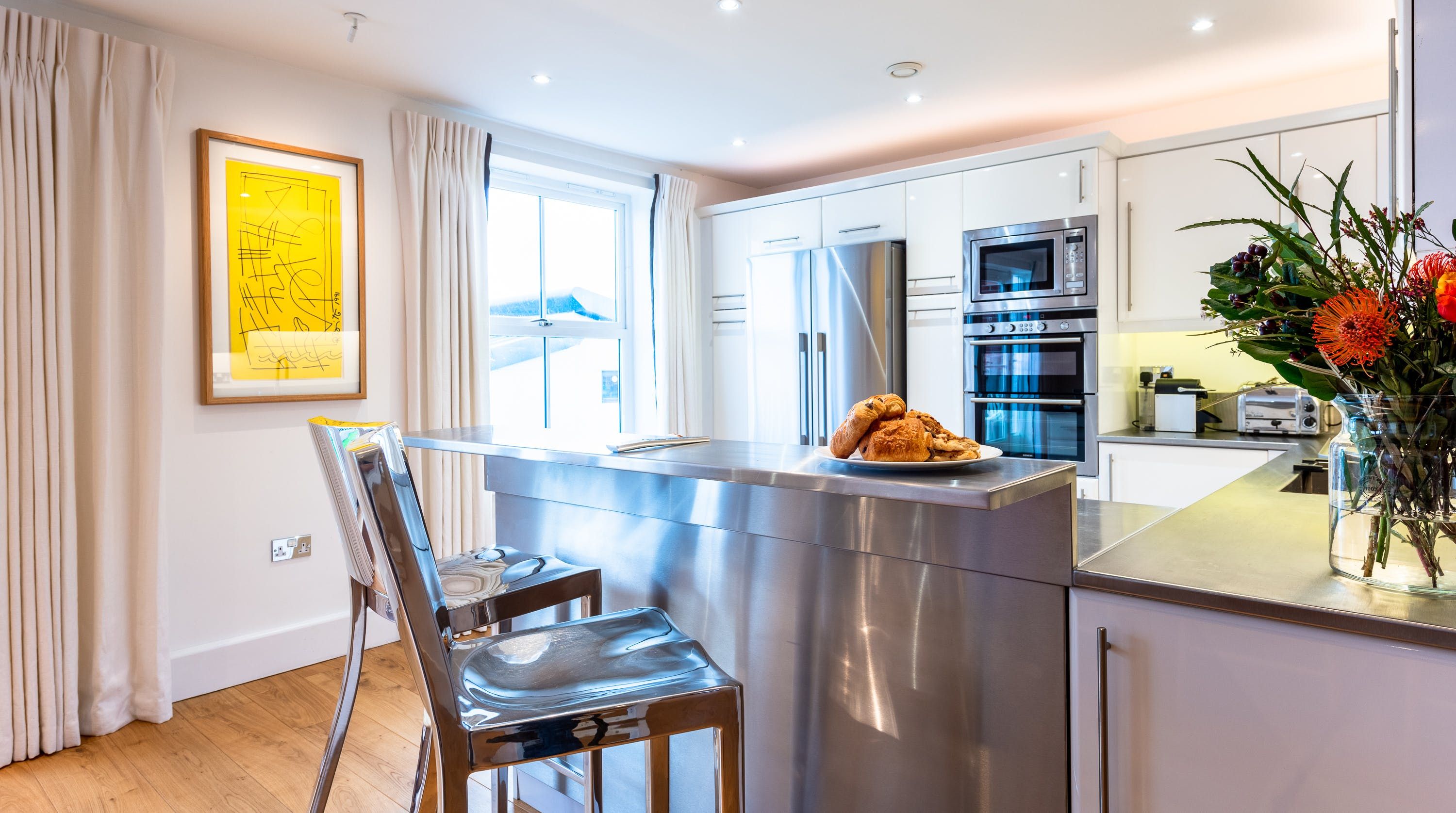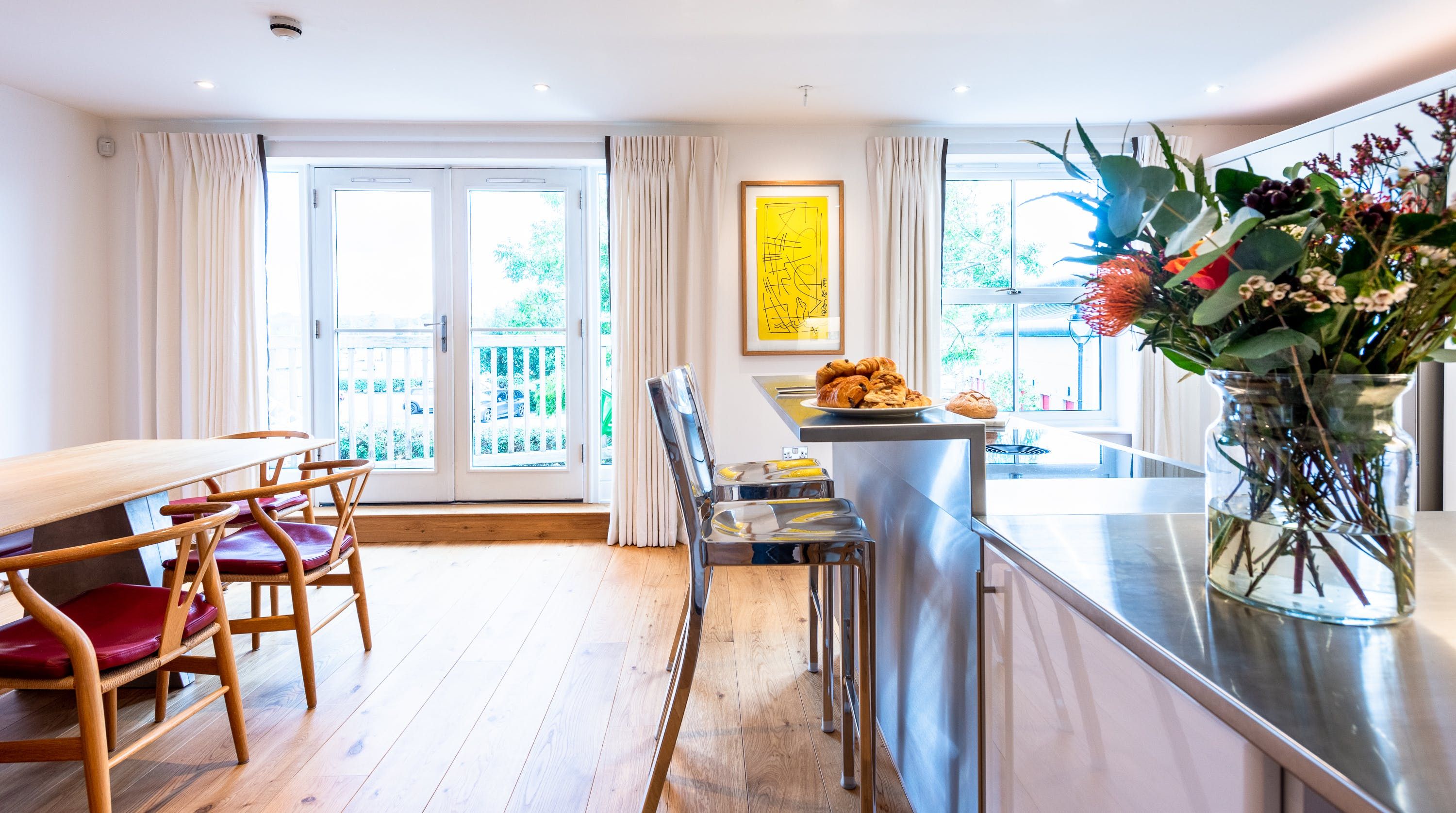 For anyone looking for a coastal getaway with a group of friends or family, we'd suggest casting your eyes on this stunning waterfront house. Inside, you'll find an impeccable space that's been curated with designer-made furnishings and high-spec amenities to deliver an exceptional stay that has all the comfort and convenience you need for a truly relaxing break. From the moment you step through the door, you’ll be greeted with a decor that reflects your hosts' interests in competitive sailing, yacht design and modern art. In fact, most of the art is by renowned Brazilian artist Romero Britto – he even designed the logo for your host's sailing team. Through to the open kitchen-diner and you'll find plenty of space for up to twelve people around the handmade Jean Prouvé replica boardroom table with its stunning Wegner wishbone designed chairs replete with leather seats. On sunny mornings, enjoy direct access to the outdoors and sit out on the balcony with a cup of coffee and soak up elevated waterfront views. Or, make yourself comfortable at the kitchen’s breakfast bar – with its alloy seats crafted from designs for New York's Hudson Hotel by Philippe Starck – while enjoying a cup of tea (courtesy of the boiling water tap). Upstairs, you'll find the sitting room a lovely space to relax, with large floor-to-ceiling windows that allow you to watch the activity out on the river. Alternatively, select from hundreds of books lining thirty metres of shelving and take a seat in the Eames armchair, or fire up the sixty-five-inch TV and surround sound for an immersive movie experience. The four bedrooms are soothing and dazzle with carefully designed features – from the master bedroom’s Philippe Starck ghost chair, Royal Auping bed and Moël chair designed by Inga Sempé to the third bedroom’s view of the Hamble Harbourmaster’s office and eye-catching artworks throughout. Each is equipped with its own en-suite, while the fourth, a children's room, has a bathroom next door. All are furnished with high thread count cotton sheets and a selection of pillows to allow for total flexibility and comfort. The crowning glory is the rooftop terrace, which provides breathtaking Hamble views, all-day sunshine and a Weber gas barbecue for alfresco feasts. While you could spend all day and night enjoying your beautiful home, venture outside and you’ll find a stunning array of nature and activities to enjoy. The home is directly opposite the pedestrian ferry that will take you across the river to Warsash, while Hamble High Street – with its great selection of restaurants, pubs and a fantastic deli – is a two-minute walk away. You’re also perfectly positioned between two sailing clubs – the Royal Southern Yacht Club and the Hamble River Sailing Club – offering exceptional sailing programmes and events year round.