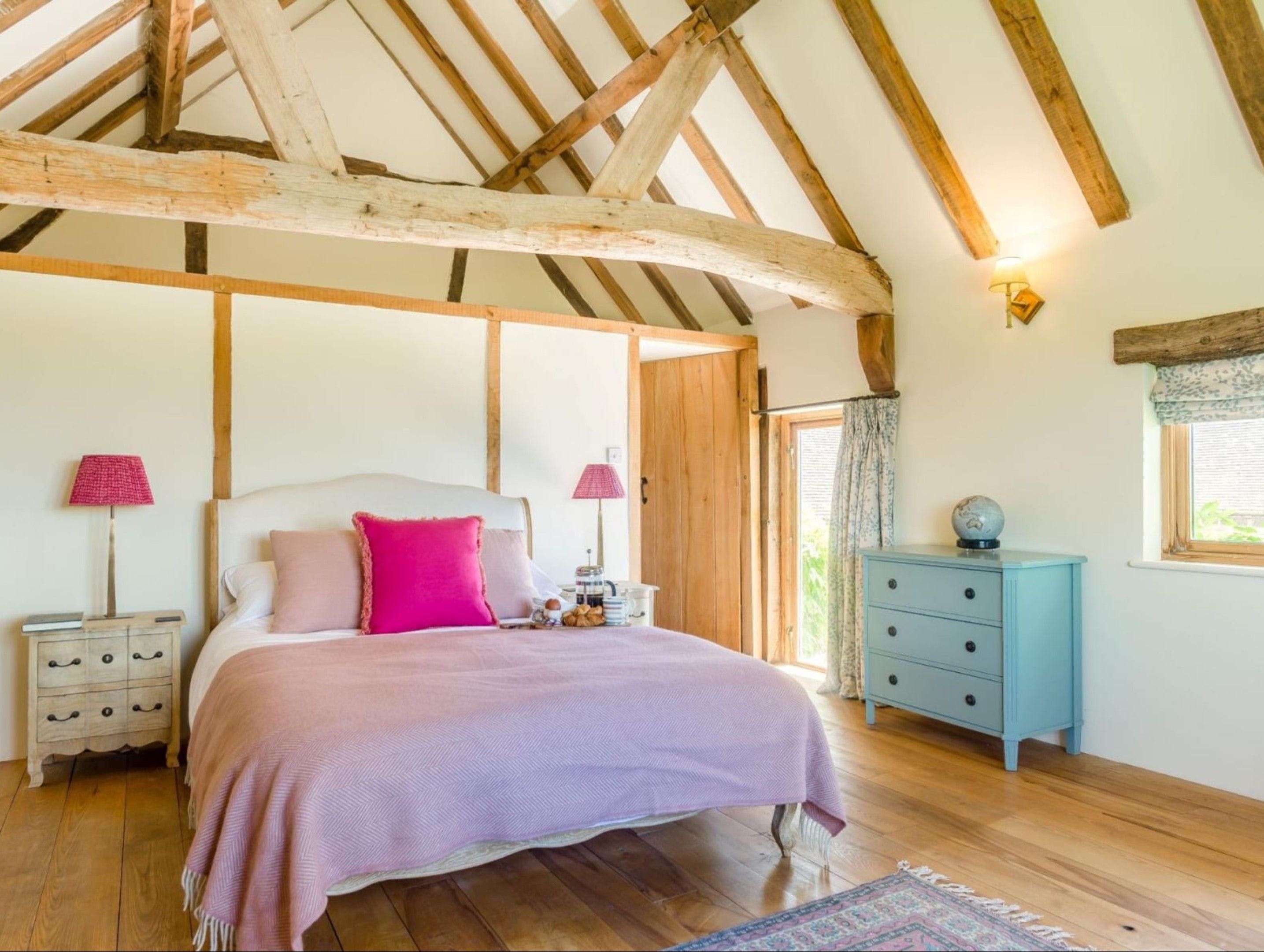 This characterful cottage is perfect for a romantic getaway. Set among 80 acres of vineyards, woodland, and fishing lakes, with views as far as the eye can see from the private patio, you’ll feel like you’ve escaped to the country here. We love the unique features inside – like the circular-shaped lounge and curved staircase – and who could resist a relaxing soak in the Jacuzzi bathtub? Location-wise, you’re perfectly placed for hikes and bike rides in the surrounding countryside and for adventures further afield, the market town of Farnham is 11 miles away and historic Winchester is a 20-mile drive.