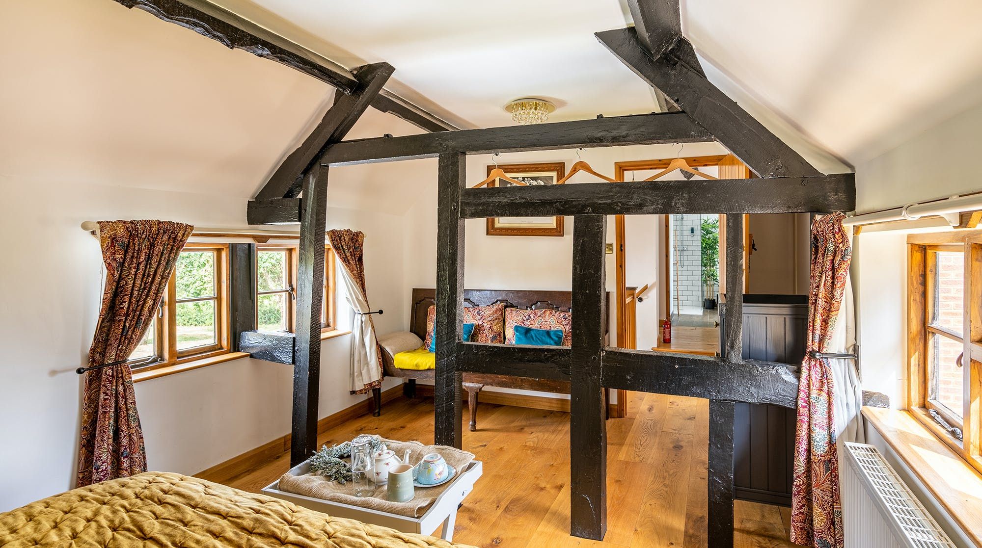 This home gives you the chance to completely switch off and unwind. It’s tucked away on a farm in the countryside of Herefordshire, surrounded by wildlife and wildflowers. There are walking trails nearby, including a public footpath that runs through the farm – bring your hiking boots if you fancy exploring Offa’s Dyke. The 18th-century home is pretty and comfortable, with a wood burner, wooden beams, and a dreamy free-standing bathtub. Outside, you’ll find a garden with a sauna and a hot tub. The dark skies here mean that you can happily while away your evenings stargazing. What could be better?