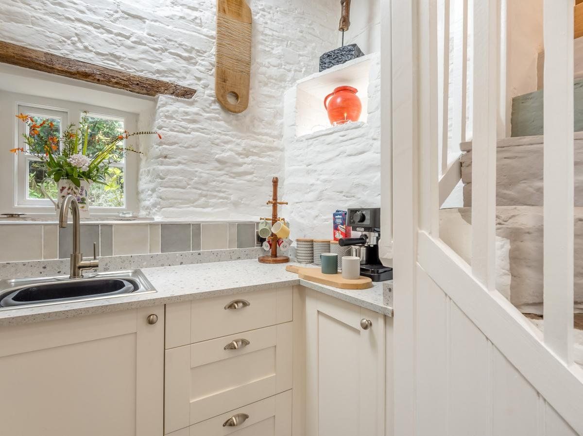 The roaring wood burner and sumptuous soft furnishings in the cosy lounge set the scene for pure relaxation; on a fine evening, throw open the hand-crafted wooden shutters to unwind to the sound of birdsong carried through the breeze. The high vaulted ceiling and painted stonework create a sense of space in the quant kitchen whilst the contemporary cottage style décor will capture your imagination, inspiring you to whip up some delicious.