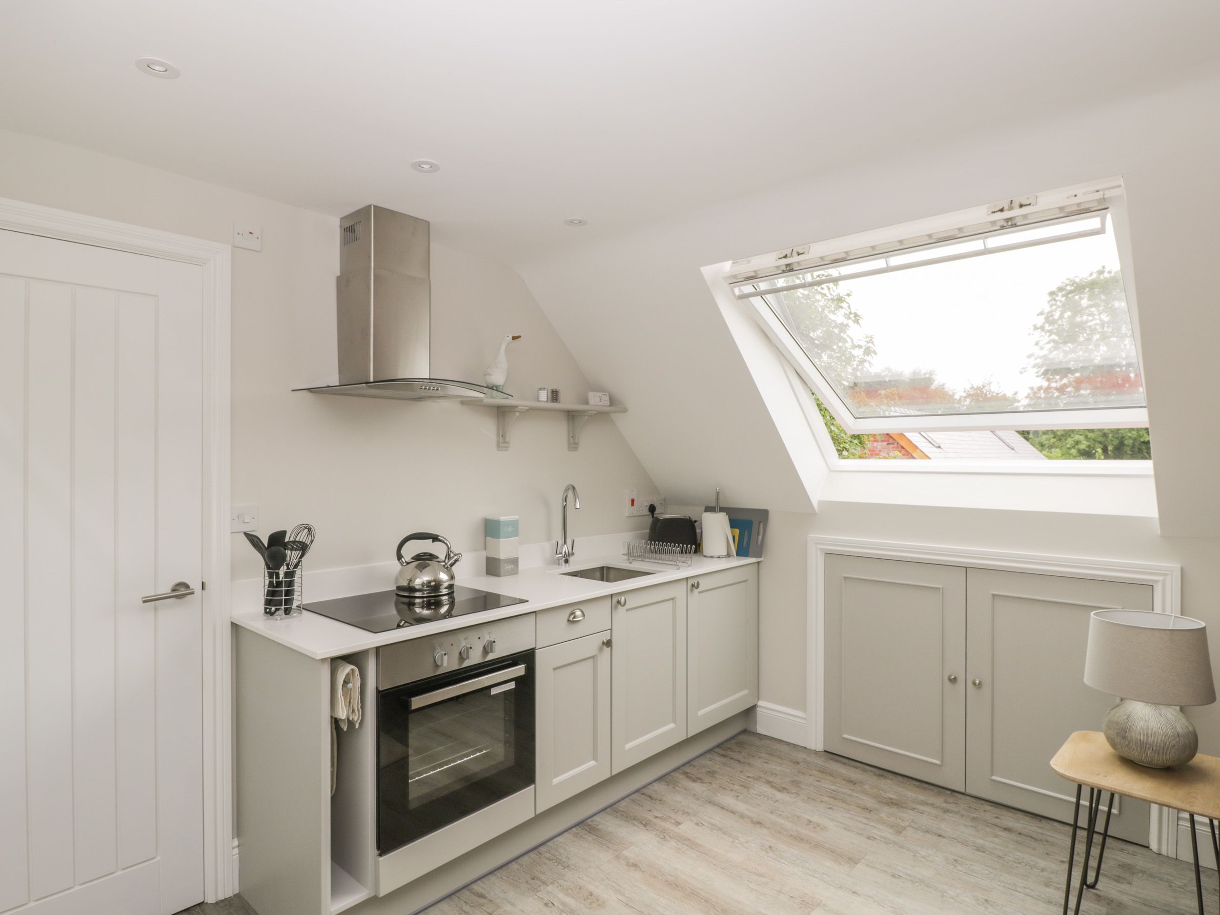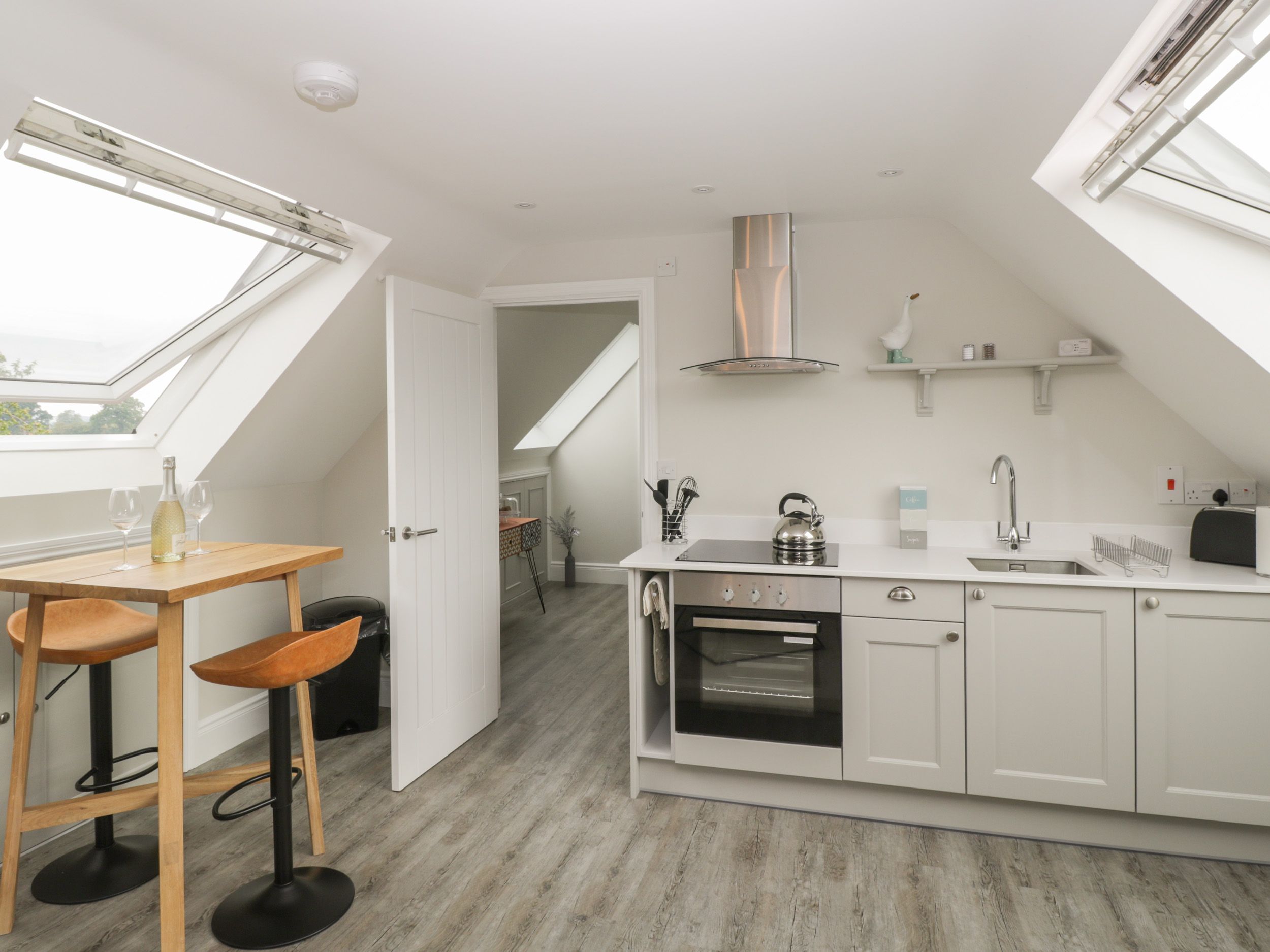 Amenities Electric heating. Electric oven and induction hob, fridge, microwave, wine rack and storage, 2 x TV, WiFi. Fuel and power inc. in rent. Bed linen and towels inc. in rent. Cot and highchair available. Off road parking for 1 car. Gravelled front garden with furniture. Shared landscaped garden with lawn, seating area, bike storage and dog washing facilities. Sorry, no pets and no smoking. Shop 3.1 miles, pub within 0.1 miles, river 0.1 miles. Note: There is a laundry room downstairs with a washing machine and tumble dryer that guests are welcome to use. The check in time is 15:30 and the check out time is 09:30. Note: Communal BBQ area- There is a communal BBQ area in the shared green space with seating. There are BBQ utensils that are kept within the Bike storage area. Please provide your own 'self lighting' coal.