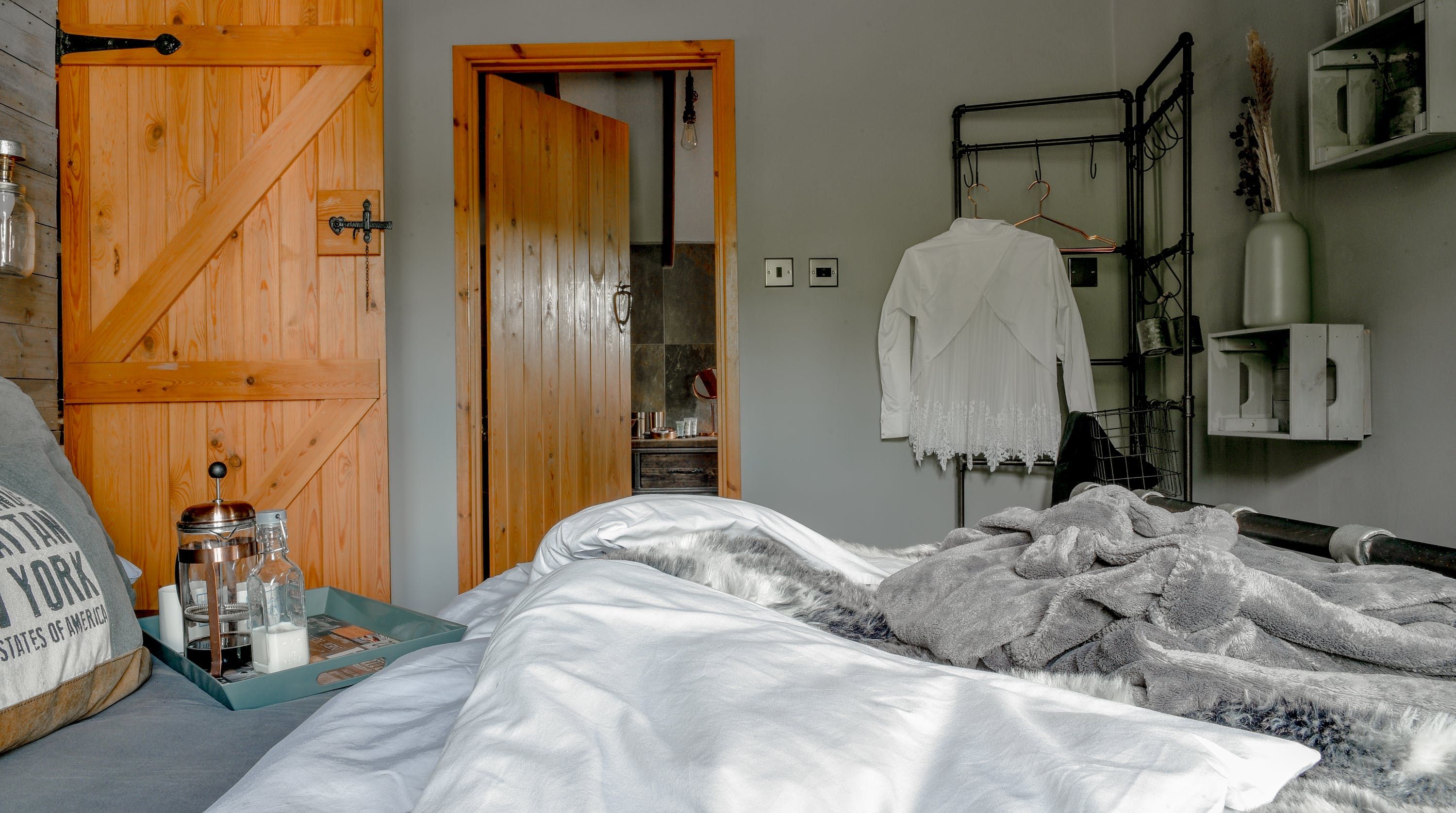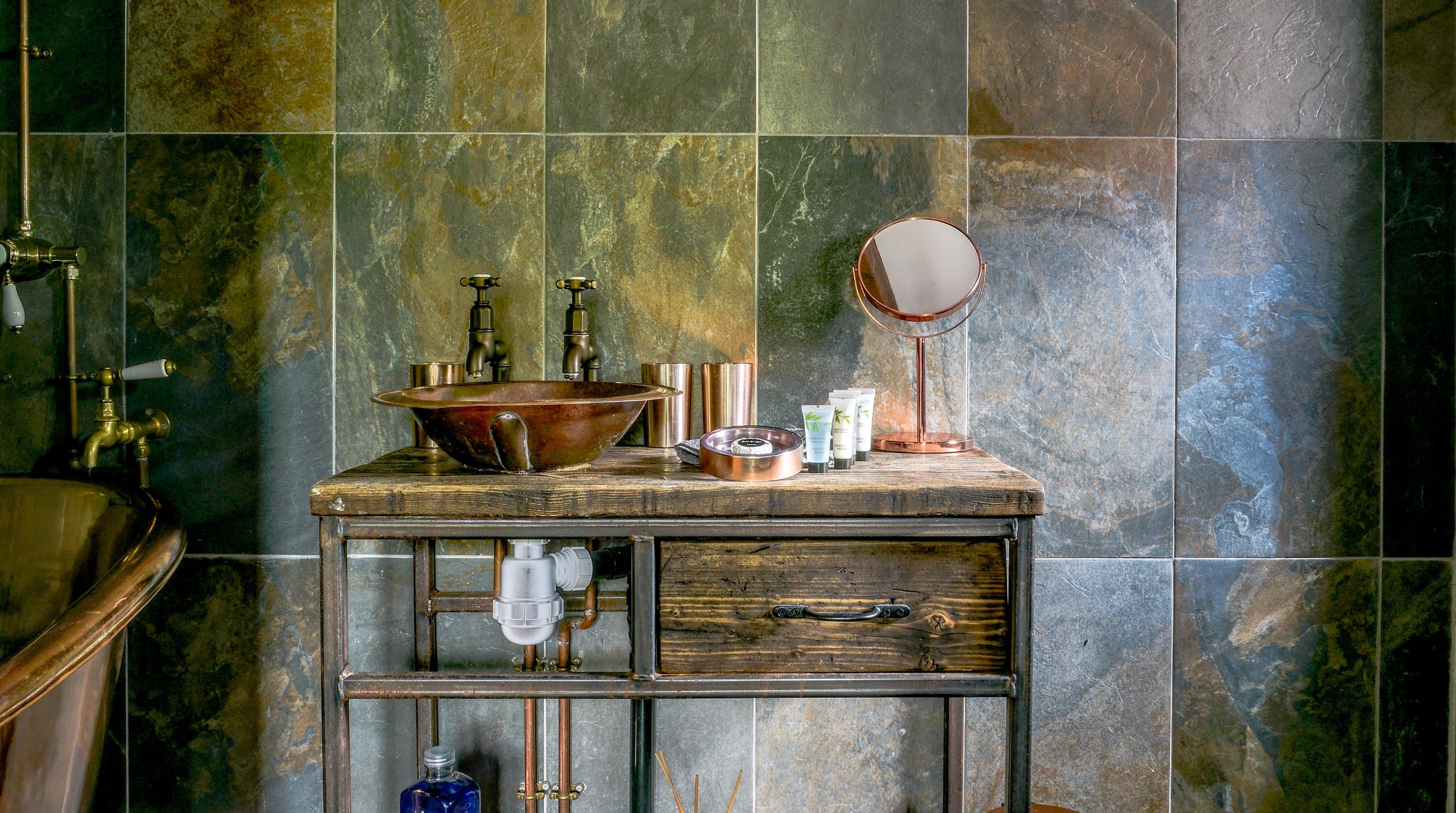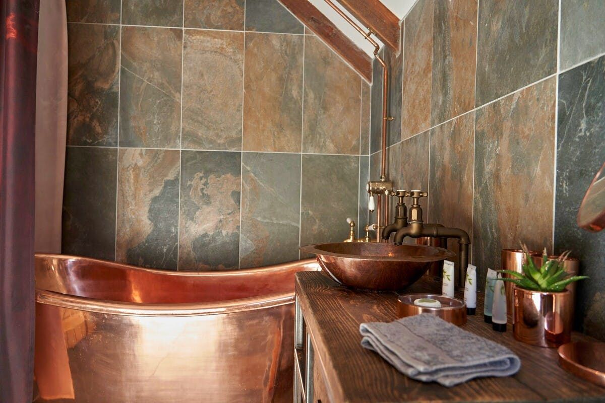 Somewhat upside-down in its layout, the main living space is on the top floor, with direct access to the pretty garden – a private sanctuary. Lounge on the leather sofa, cook in the stylish kitchen area or eat at the table in front of the patio doors. For extra snugness, there's a second lounge on the lower floor, complete with an electric fire for cosy film nights. And while we love the bedroom here, with its sumptuous mattress and faux fur throws, it's the bathroom that stole our hearts – its copper bathtub is a real showstopper.