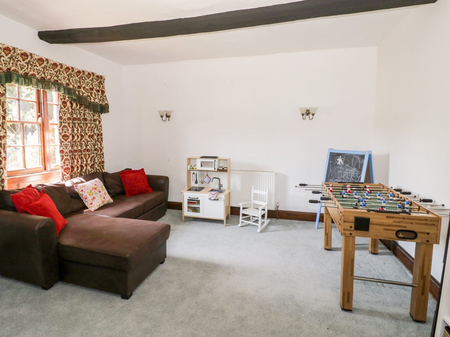 Holiday home Mainstone House is a detached cottage resting in Trumpet near Ledbury in Herefordshire. Hosting six bedrooms with TVs, a king-size with an en-suite shower, a king-size with a cot and a ground-floor king-size, a double with an en-suite, another double, and a family room with two cabin bunks, along with a bathroom, and ground-floor shower room, this property can sleep up to a maximum 12 adults and 2 chilren. There is a kitchen/diner, a dining room and two sitting rooms with woodburning stoves. To the outside, there is an enclosed garden with lawn, patio, hot tub, furniture, and bike storage, while ample off-road parking is available. Mainstone House is a characterful detached holiday home, perfect for a large family gathering.