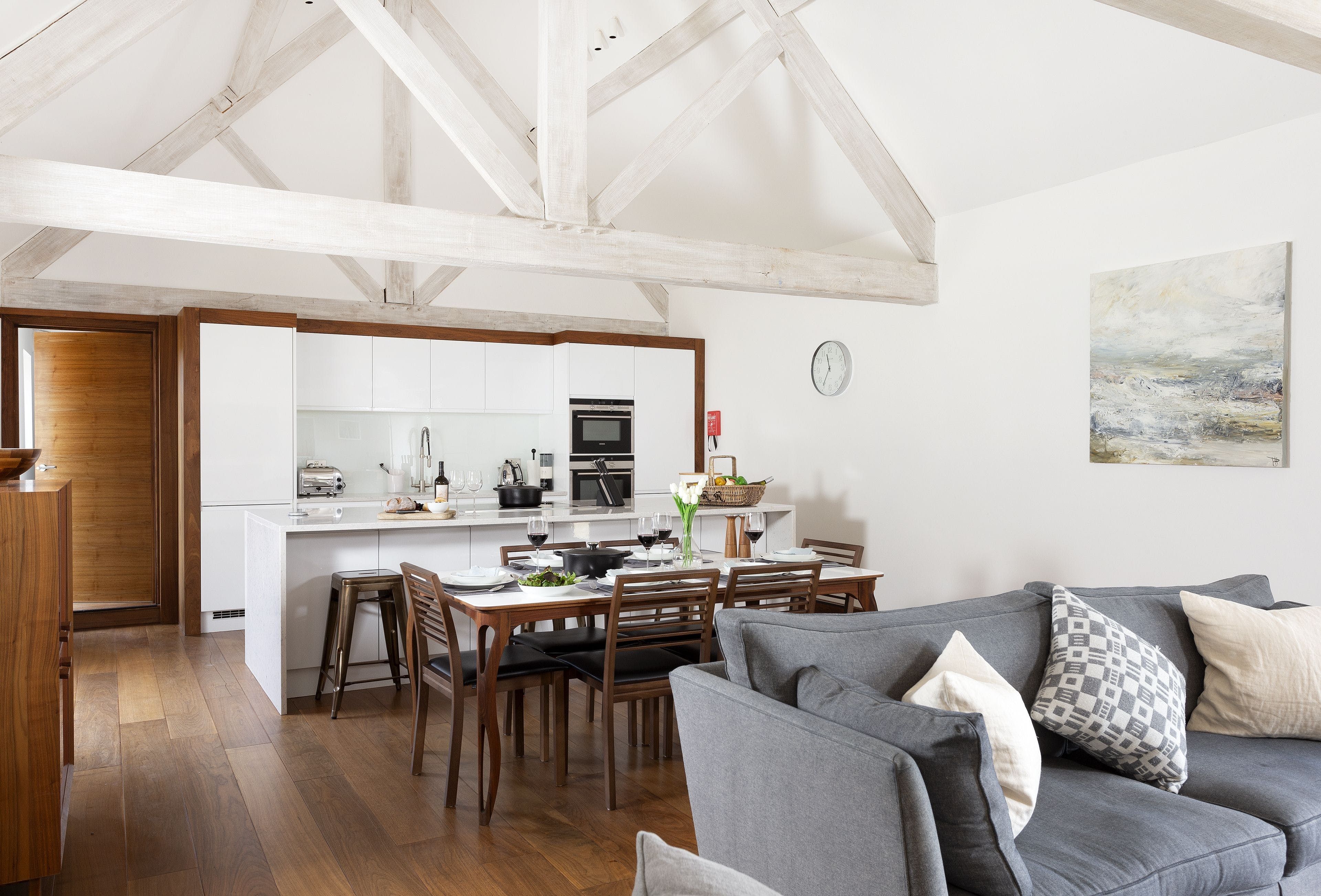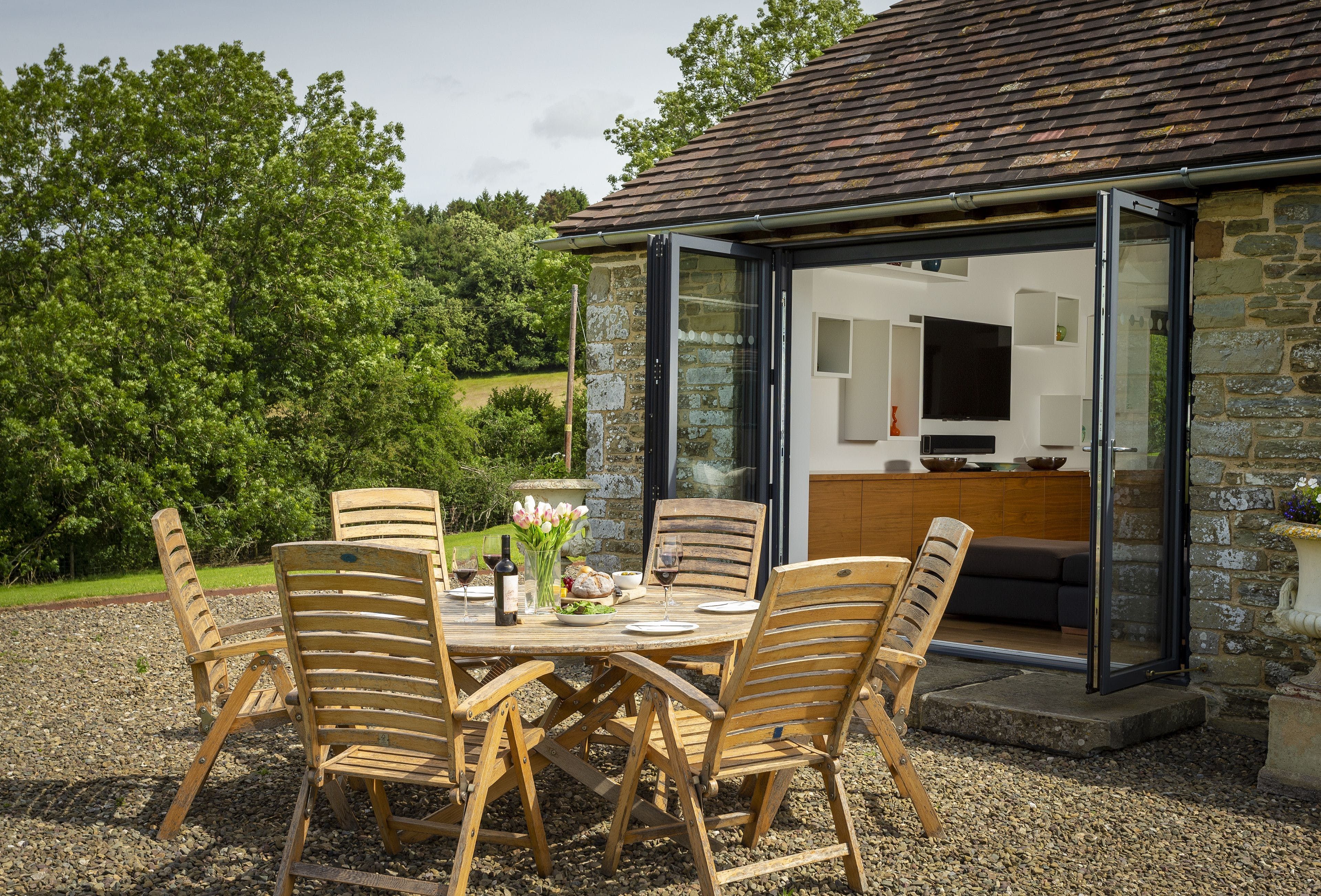 A peaceful stay is all but guaranteed at this former barn in the Shropshire Hills. If the modern interiors don't entice you to kick back and relax, we reckon the setting will. Bi-fold doors lead onto a panoramic patio and frame sprawling views of the surrounding countryside. Pour yourself a glass of wine, pull up a chair, and take it all in – there's also a fenced garden ideal for pups. You'll find it nestled among the 5,000 acres of a historic estate, just 4 miles from the market town of Ludlow. From historic castles to high-end eateries, you'll be perfectly placed to explore.
