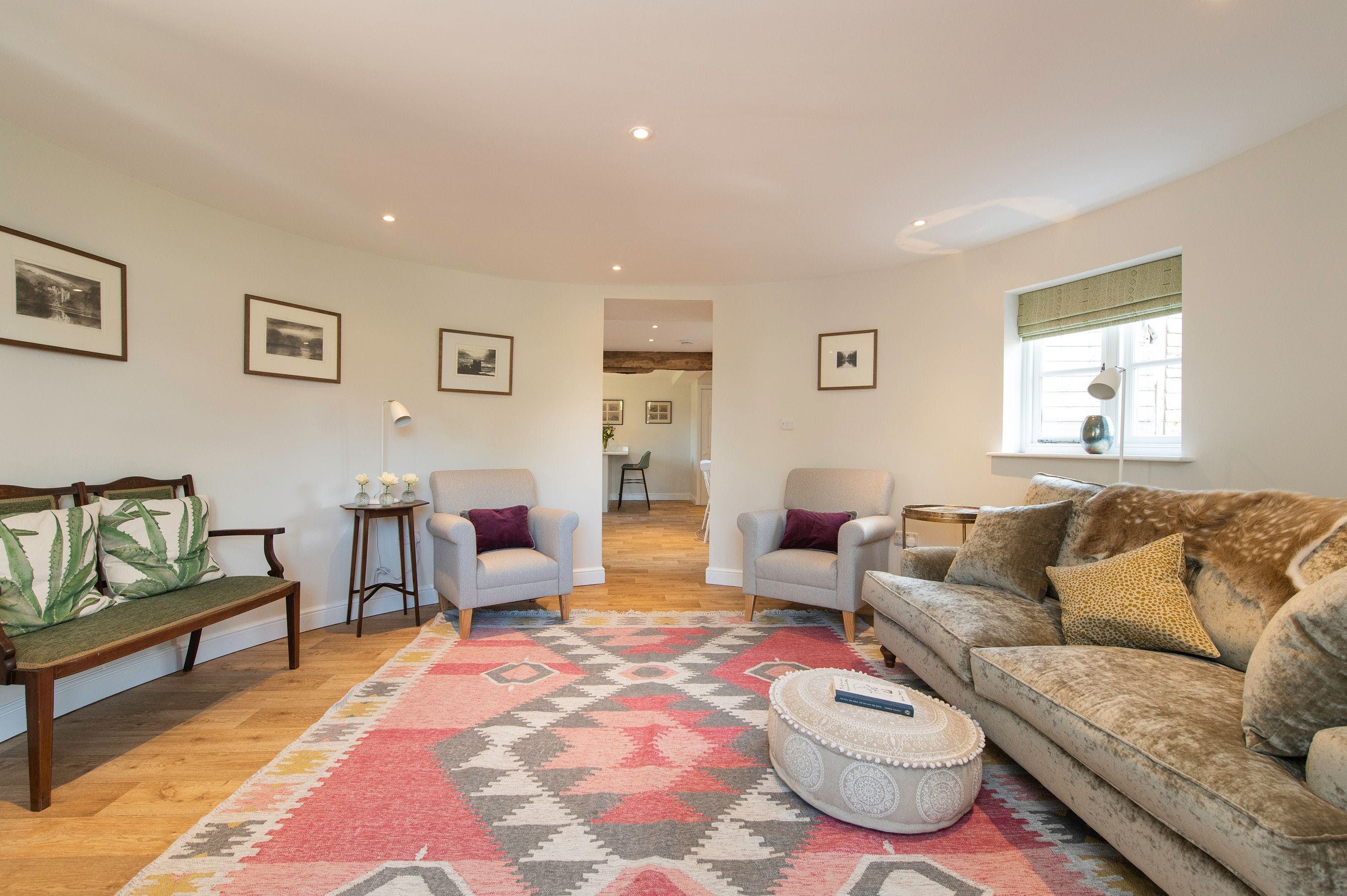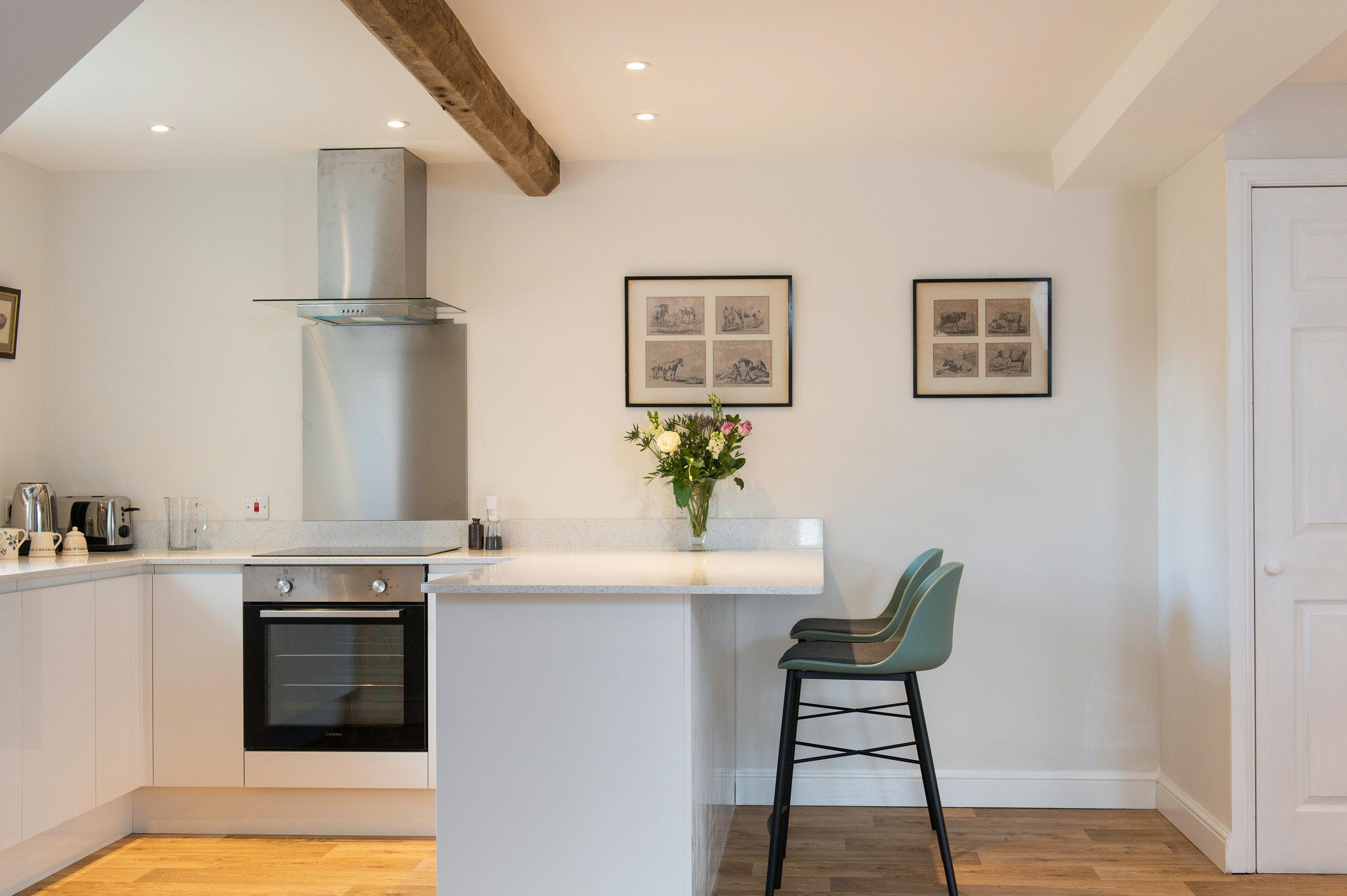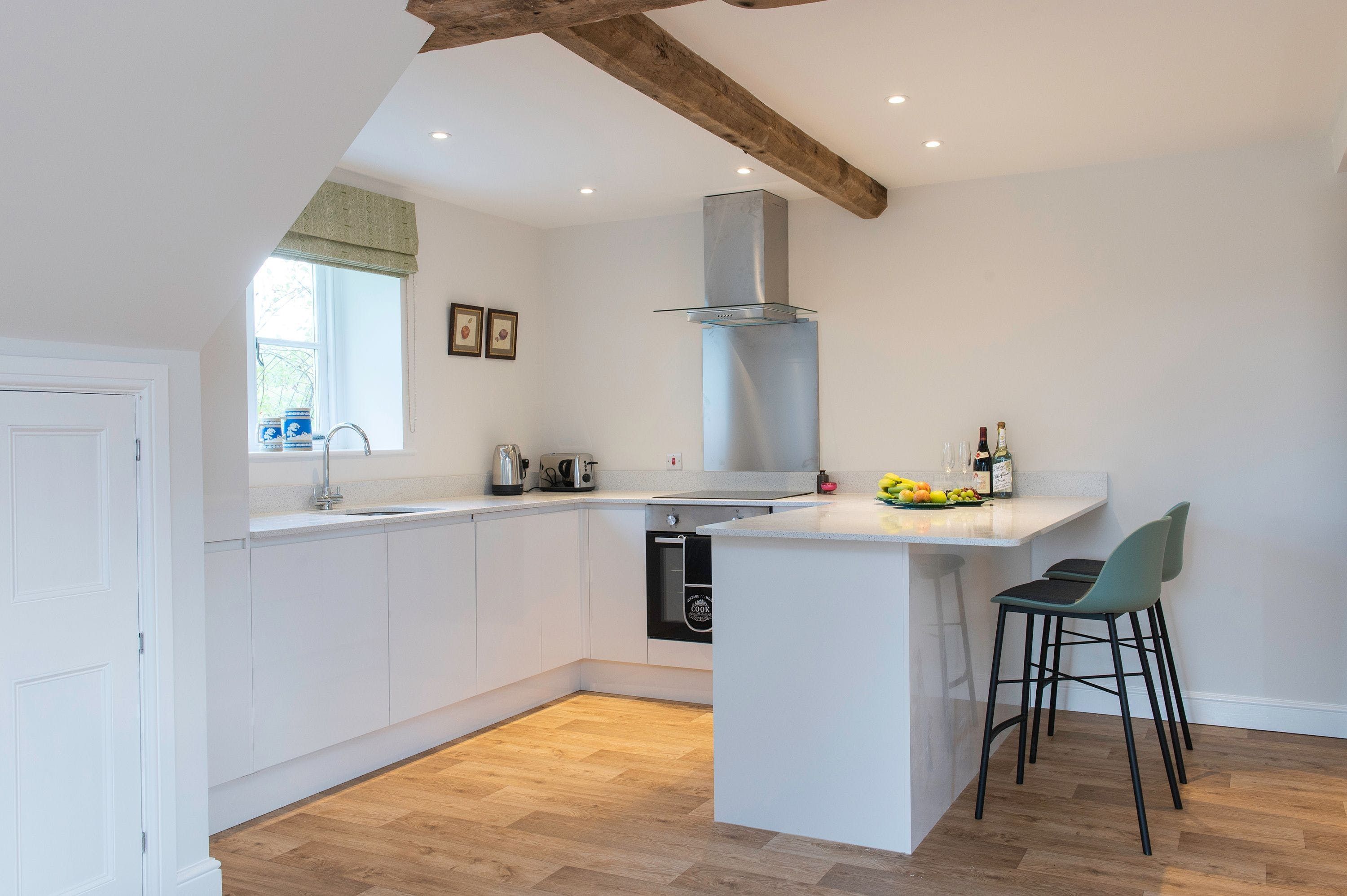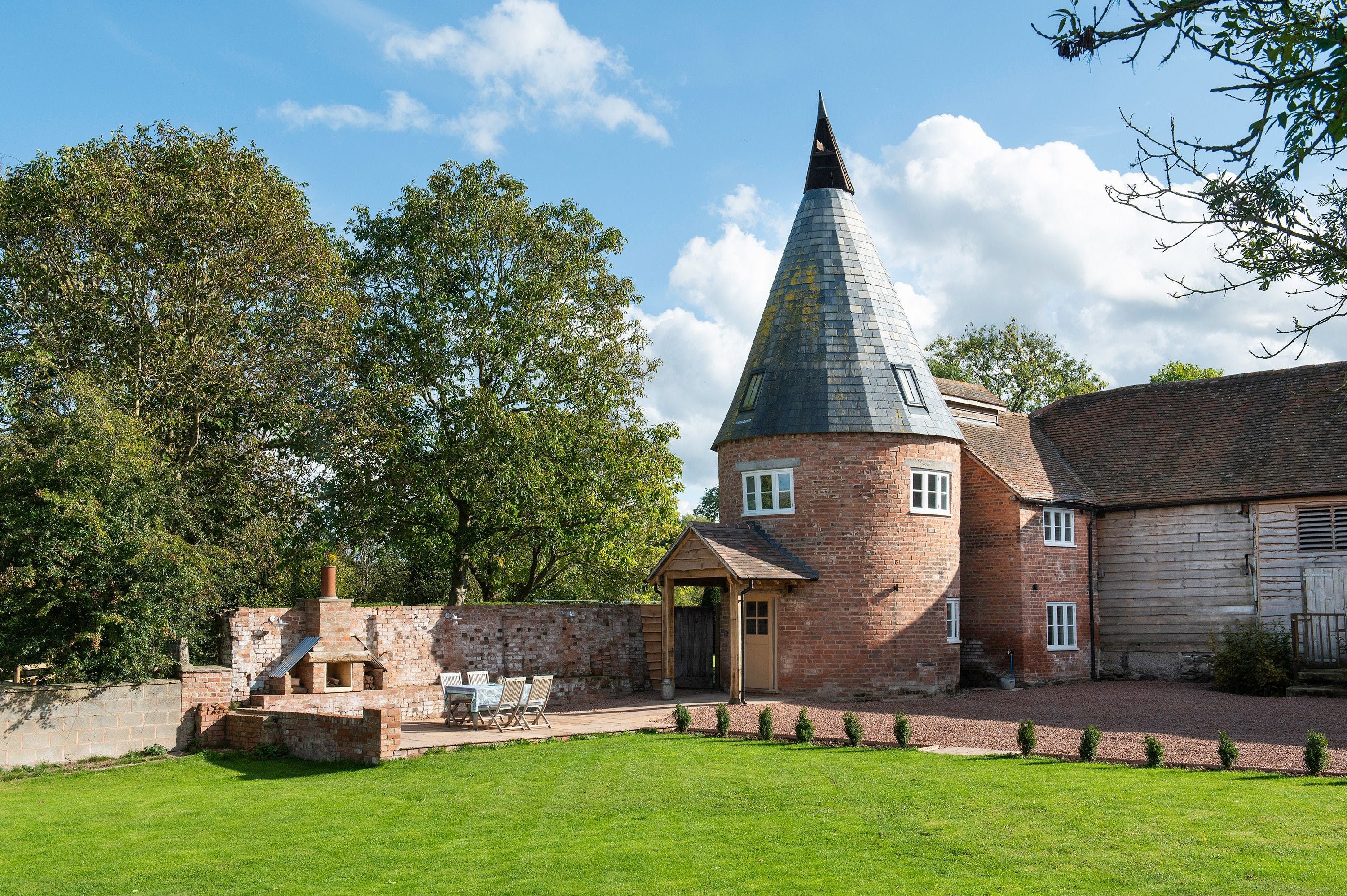 This is a stunning two-bedroom holiday property located on the border of North Herefordshire and South Shropshire. Once an operational kiln, it has been converted into a modern and stylish home while maintaining its exposed beams and brickwork. The property has views over the cider apple orchard and enclosed lawned garden, providing plenty of space for families. It is set in deep countryside, perfect for avid walkers and cyclists, with numerous country pubs and restaurants nearby as well as apple and cider distilleries. The Welsh border is conveniently situated nearby, offering some fantastic scenery. The Black and White Trail, which takes you through picturesque black and white villages like Weobley and Pembridge, is also close by. The owners of the farm offer some lovely walks on their farm, fishing on the River Arrow at an additional charge, and access to a tennis court available on request. The cozy beach house sleeps four guests in total comfort with underfloor heating, WiFi, off-street parking, and a large patio area looking across a large lawned garden.