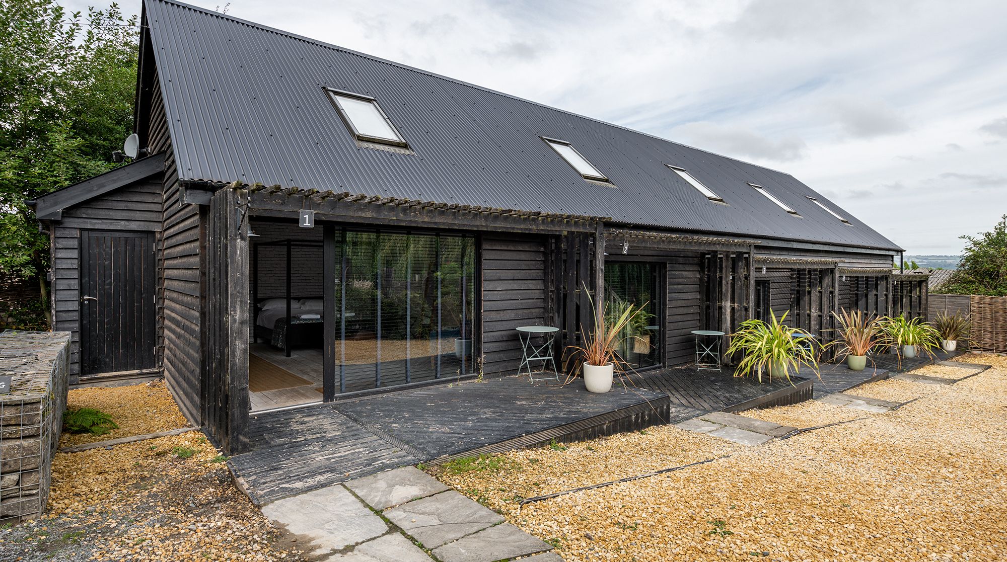 Built for entertaining, you'll have a games barn where you can play table tennis, work out on the gym equipment and grab some garden games, as well as a room perfect for group activities. There's even a wood-fired hot tub, a children's natural play area and private fields for you to explore.