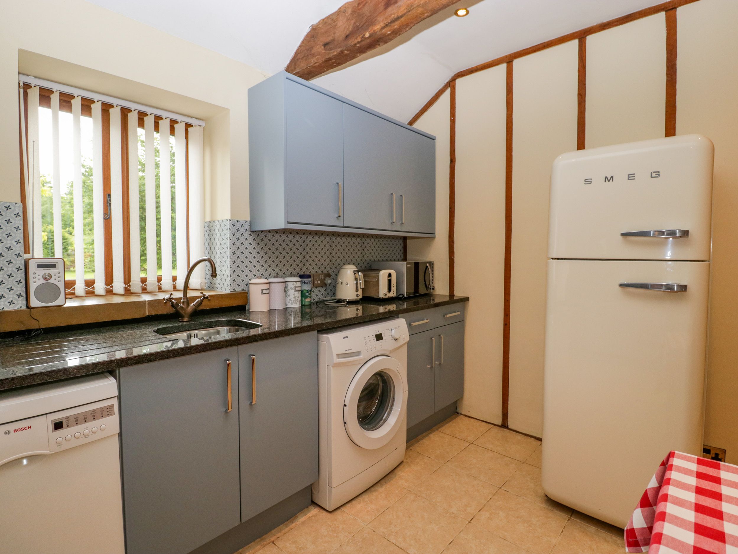 Holiday home The living areas in the property consist of a kitchen/diner with combi oven/microwave, electric hob, fridge/freezer, washing machine, dishwasher, dining seating for four, and a sitting room with TV and woodburning stove. The bedrooms consist of a double and a ground-floor twin, along with a ground-floor shower room. Within 2.8 miles, you will find a shop and pub, and please note that this is a non-smoking property. WiFi, fuel, power, bed linen and towels are all included in the price. One well-behaved pet welcome. For a memorable escape to Herefordshire, choose Sutton Barn.