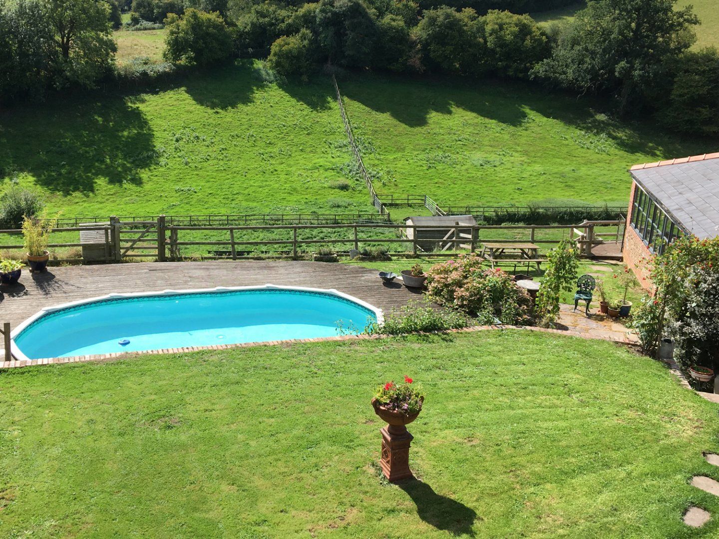 Amenities Electric central heating with woodburning stove. Gas oven and hob, microwave, fridge, dishwasher. TV with Freeview, WiFi, selection of books, games and DVDs. Fuel and power inc. in rent. All supplies for woodburner available at all times free of charge. Bed linen and towels inc. in rent. Off-road parking. Orchard to the rear with bench. Shared non-heated outdoor swimming pool. Two well behaved dogs welcome. Sorry, no smoking. Shop 1 mile, and pub 5 mins walk. Note: Nine steps up to lawned area, then further steps up to the cottage entrance, not suitable for the elderly or those with limited mobility. Note: Access by narrow lane. Note: Shared swimming pool available dependent on the weather during summer months only.