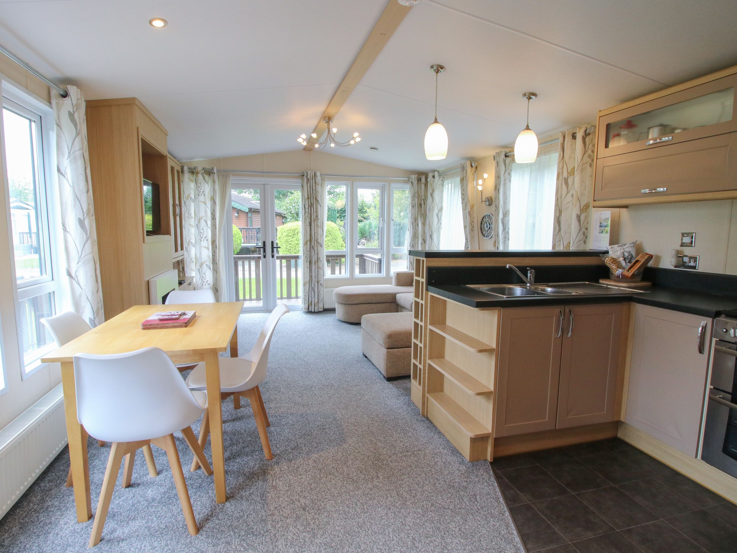 Holiday home Dove is a single-storey lodge with an open-plan living space with electric fire. Appliances include an electric oven and gas hob, microwave, fridge and TV with DVD player. The bedrooms include a double and two twins, serviced by a shower room. To the outside is a decking with furniture and off-road parking for one car. Please note, there is no smoking. Two well-behaved dogs welcome for a fee of £25 per booking. Within 0.5 miles or less there is a shop and pub. Travel cot, WiFi, fuel, power, bed linen, and towels are all included in the rent. Dove has it all. Free fishing is available at Pearl Lake for anyone staying in our lodges. Rules and passes to be collected from reception. We also have an onsite restaurant, bar, and golf for you to enjoy during your stay. Note: Though pets should be kept on leads, there are off-lead areas within the park and lovely walks around the area. Note: Bookings made for parties of workers can only be accepted with the prior consent of the Owner.