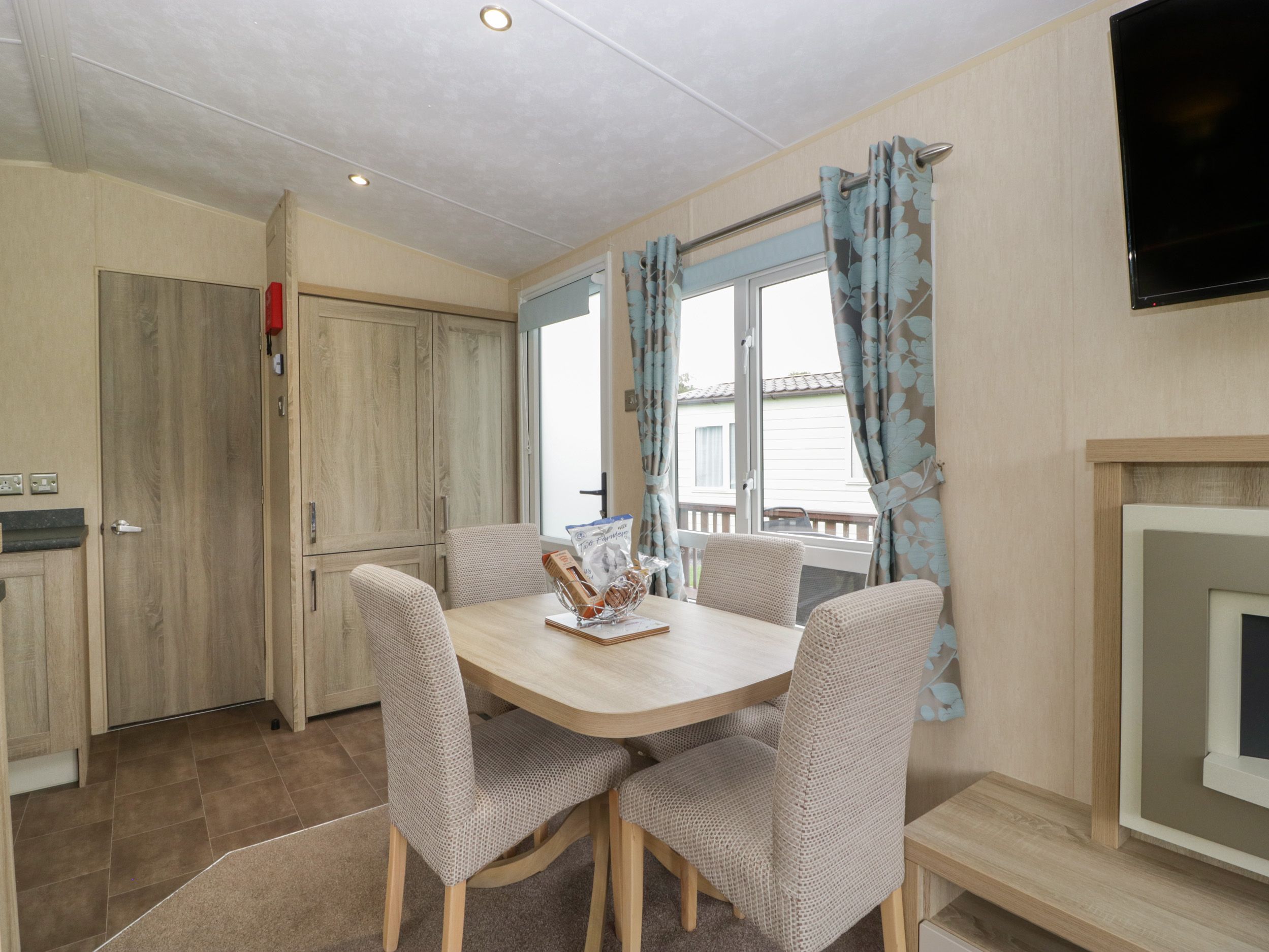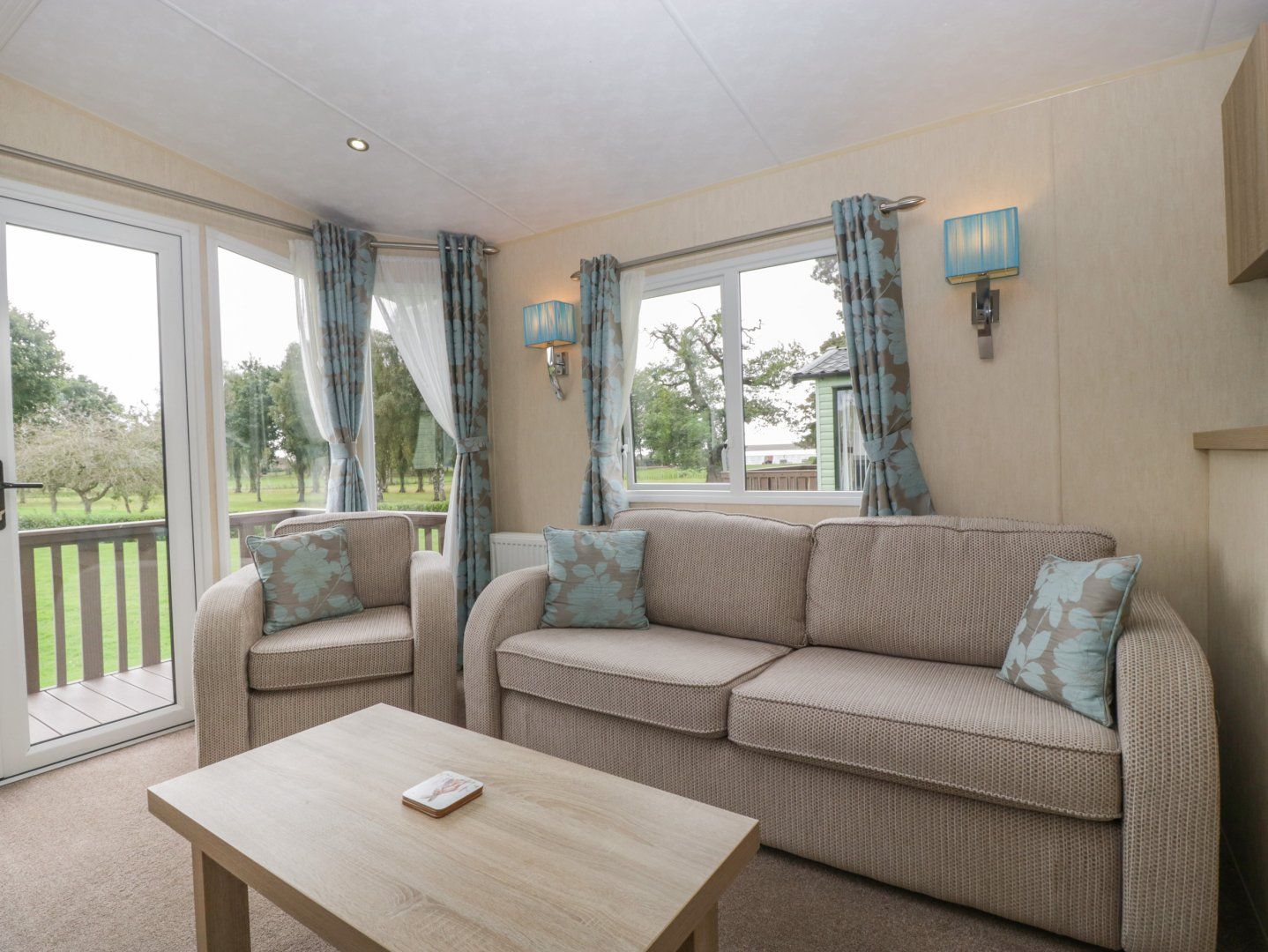 Accomodation Details Single-storey. Two bedrooms: 1 x double, 1 x twin. Shower room with walk-in shower, basin and WC. Open-plan living space with kitchen, dining area and sitting area with electric fire