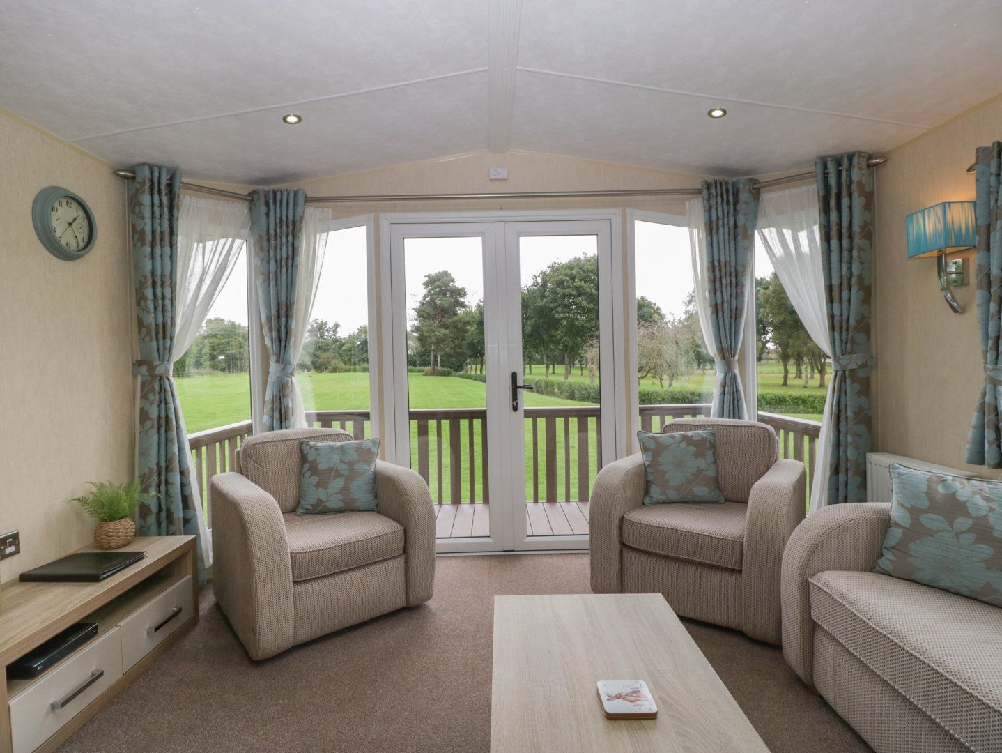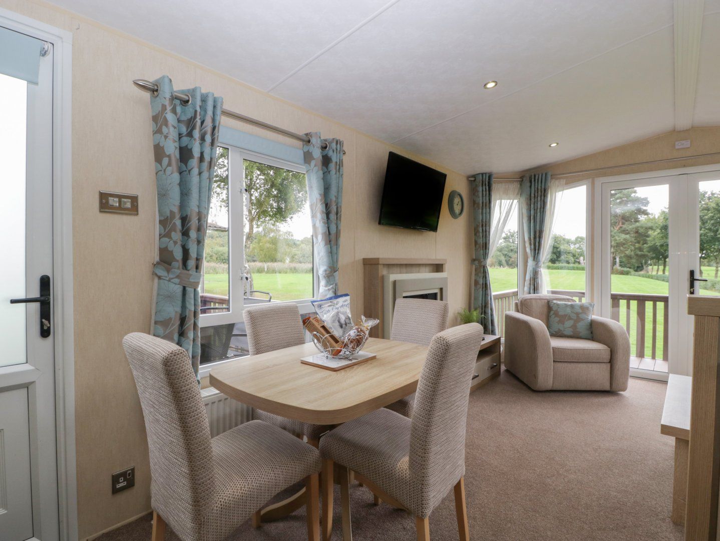 Amenities Gas central heating. Electric oven and gas hob, microwave, fridge. TV with DVD player, WiFi. Fuel and power inc. in rent. Bed linen and towels inc. in rent. Travel cot available on request. Off-road parking for 1 car. Enclosed decking with furniture. On-site facilities include golf and fishing. Two well behaved dogs welcome for a fee of £25 per booking. Sorry, no smoking. Shop 0.5 miles. Free fishing is available at Pearl Lake for anyone staying in our lodges. Pearl Lake has a stocked lake on site, which is free of charge for self-catering guests - Rules and passes to be collected from reception. We also have an onsite restaurant, bar, and golf for you to enjoy during your stay. Note: barbecue's are not permitted. Note: There are steps to the exterior, please take care. Note: Though pets should be kept on leads, there are off-lead areas within the park and lovely walks around the area. Note: Bookings made for parties of workers can only be accepted with the prior consent of the Owner.