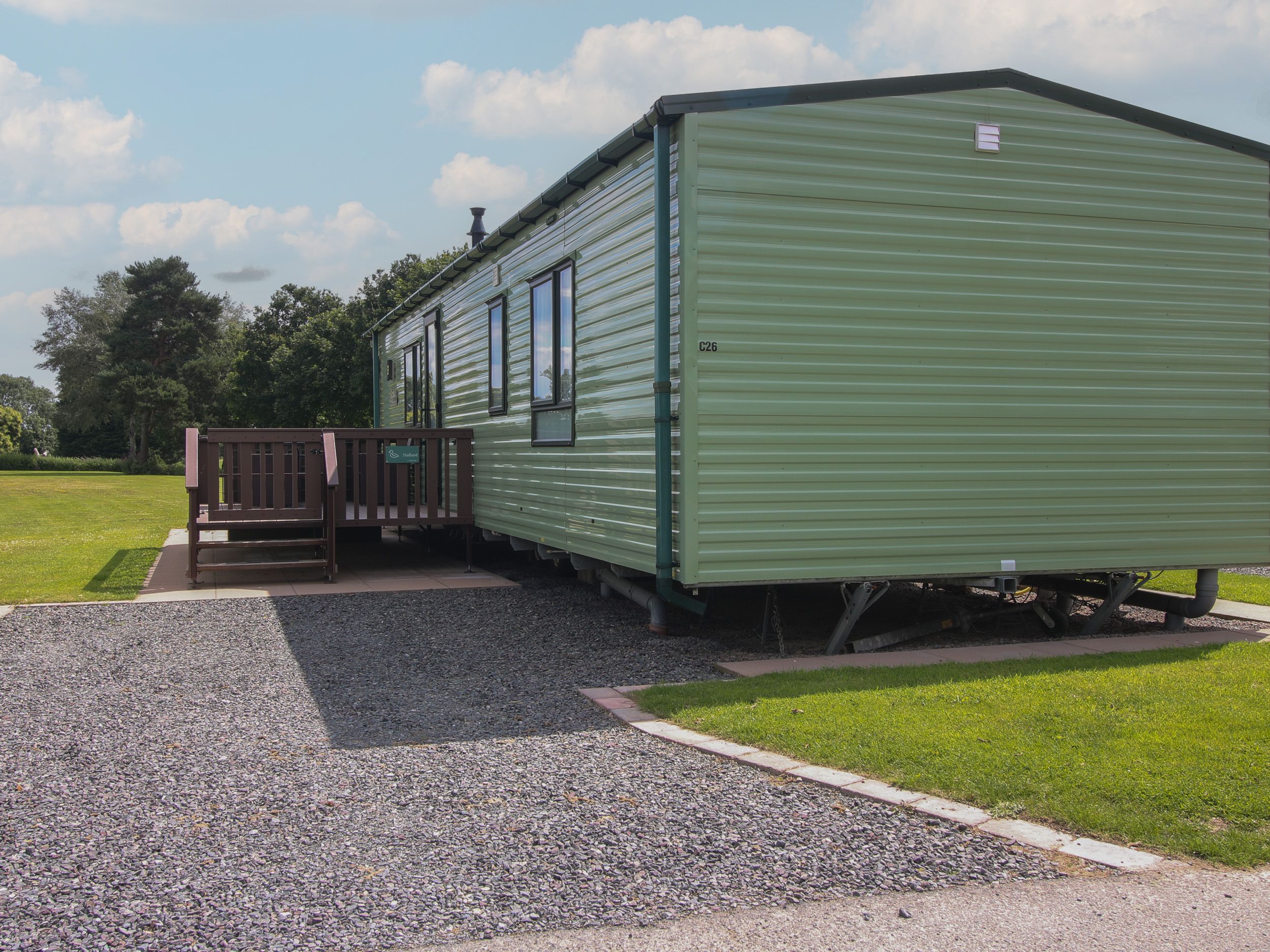 Holiday home Mallard is a single-storey lodge with an open-plan living space with electric fire. Appliances include an electric oven and gas hob, microwave, fridge and TV with DVD player. The bedrooms include a double and a twin, serviced by a shower room. To the outside is an enclosed decked area with furniture and off-road parking for one car. Two well behaved pet welcome for a fee of 25GBP per booking. Sorry, no smoking. Within 0.5 miles or less there is a shop and pub. Travel cot, WiFi, fuel, power, bed linen, and towels are all included in the rent. Escape to beautiful Herefordshire with a stay at Mallard. Free fishing is available at Pearl Lake for anyone staying in our lodges. Rules and passes to be collected from reception. We also have an onsite restaurant, bar, and golf for you to enjoy during your stay. Note: Though pets should be kept on leads, there are off-lead areas within the park and lovely walks around the area. Note: Bookings made for parties of workers can only be accepted with the prior consent of the Owner.