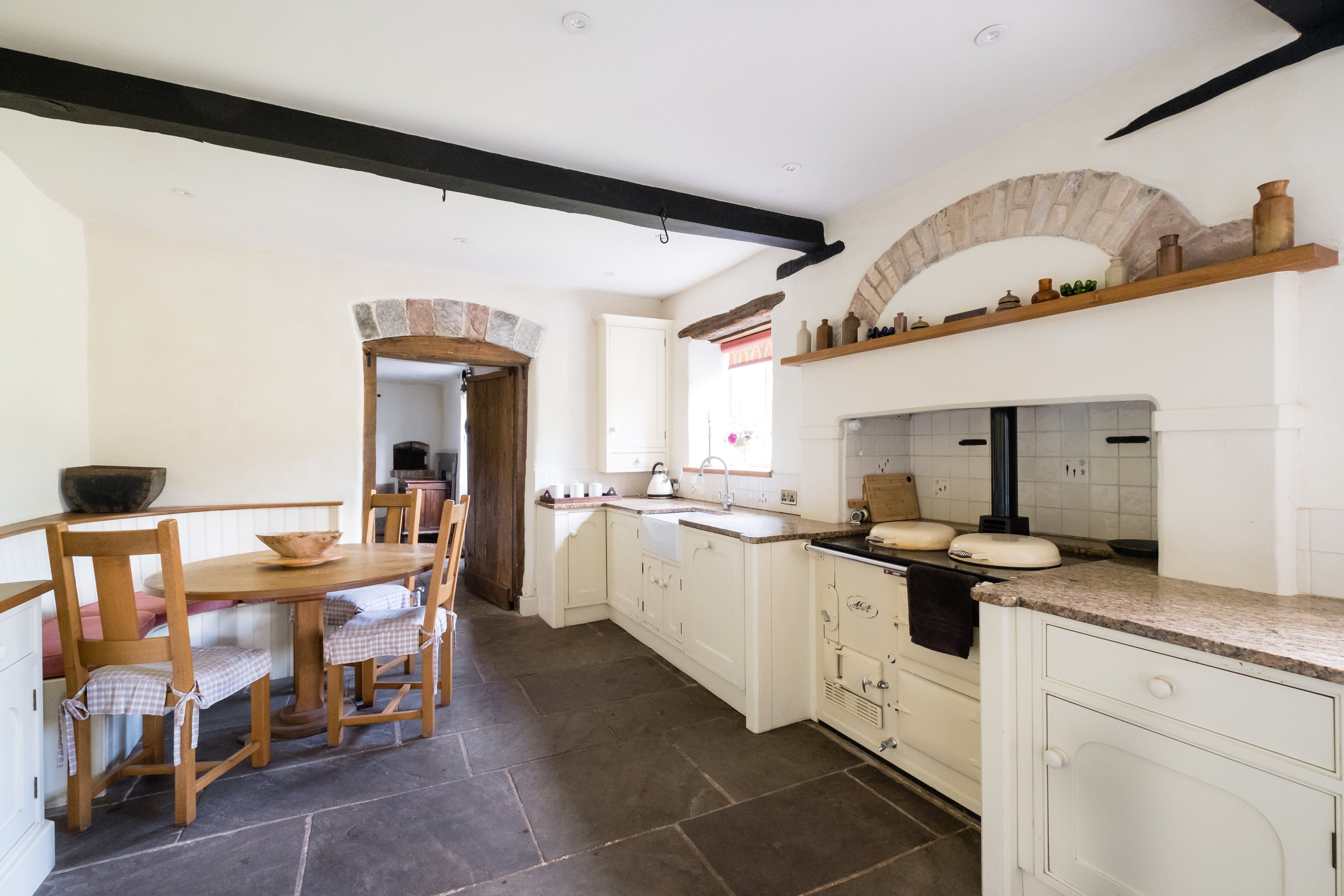 Located on the edge of Wilton Village on the banks of the River Wye, this grand castle boasts expansive grounds with space for alfresco dining amongst the ancient buildings. The exposed brick and stone alongside vintage furniture and paintings highlight the home's original construction, but this dated interior won't be for everyone. The location is beautiful though, with the Wye Valley being an Area of Outstanding Natural Beauty. You'll receive a hamper when you first arrive and pets are welcome, so we think it's a good spot for families and friend groups looking for a historic stay with lush surroundings.