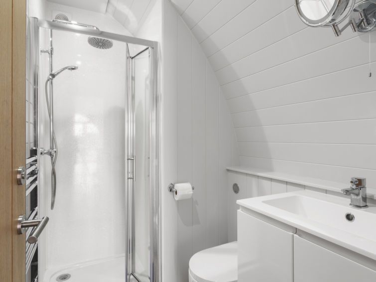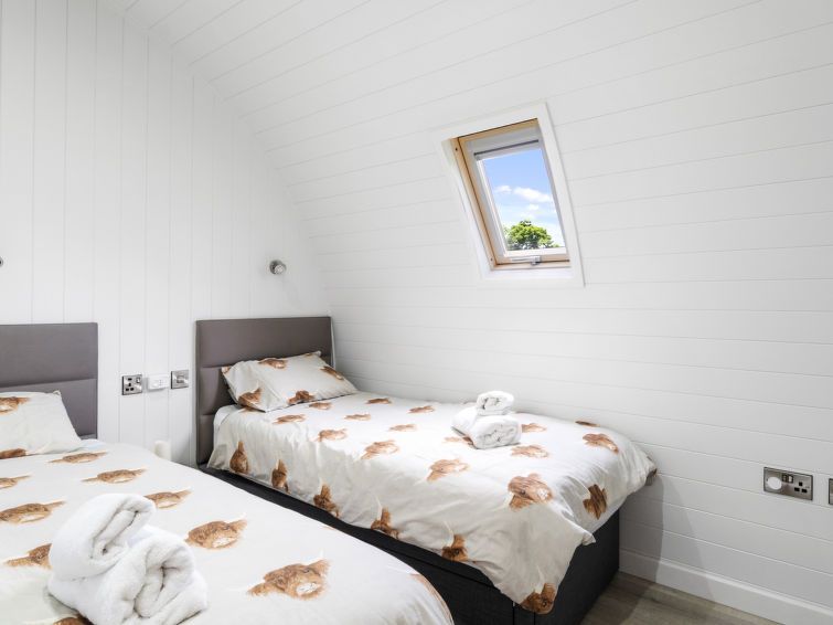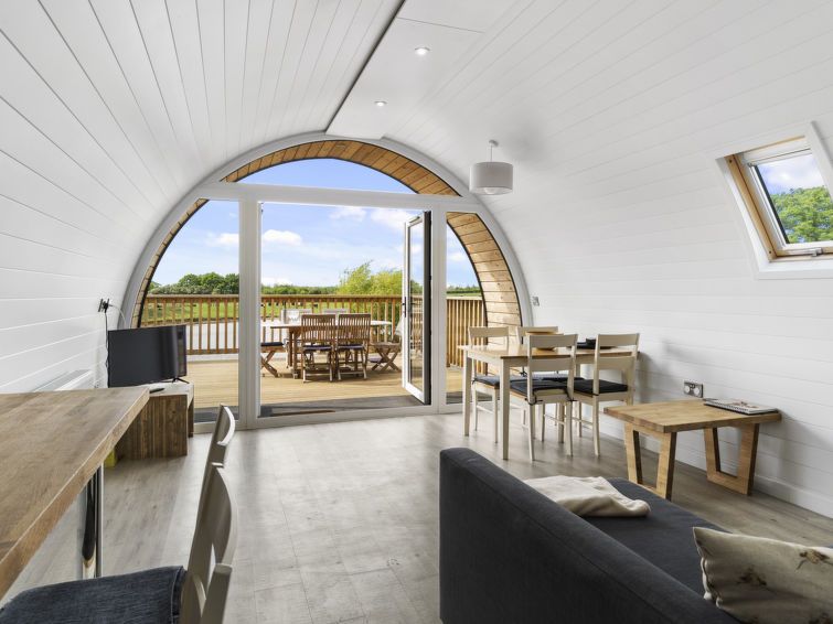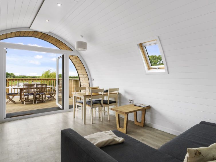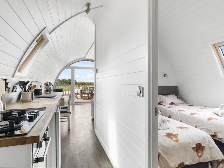"The Highland Camping Pod", 3-room chalet 35 m2, on the ground floor. Object suitable for 6 adults. Living room with 1 sofabed, 1 pull-out bed and TV. 1 room with 1 double bed. 1 room with 2 beds. Kitchen (oven, Gas stove, 4 gas rings, kettle, freezer). Shower/WC. Terrace. Barbecue.