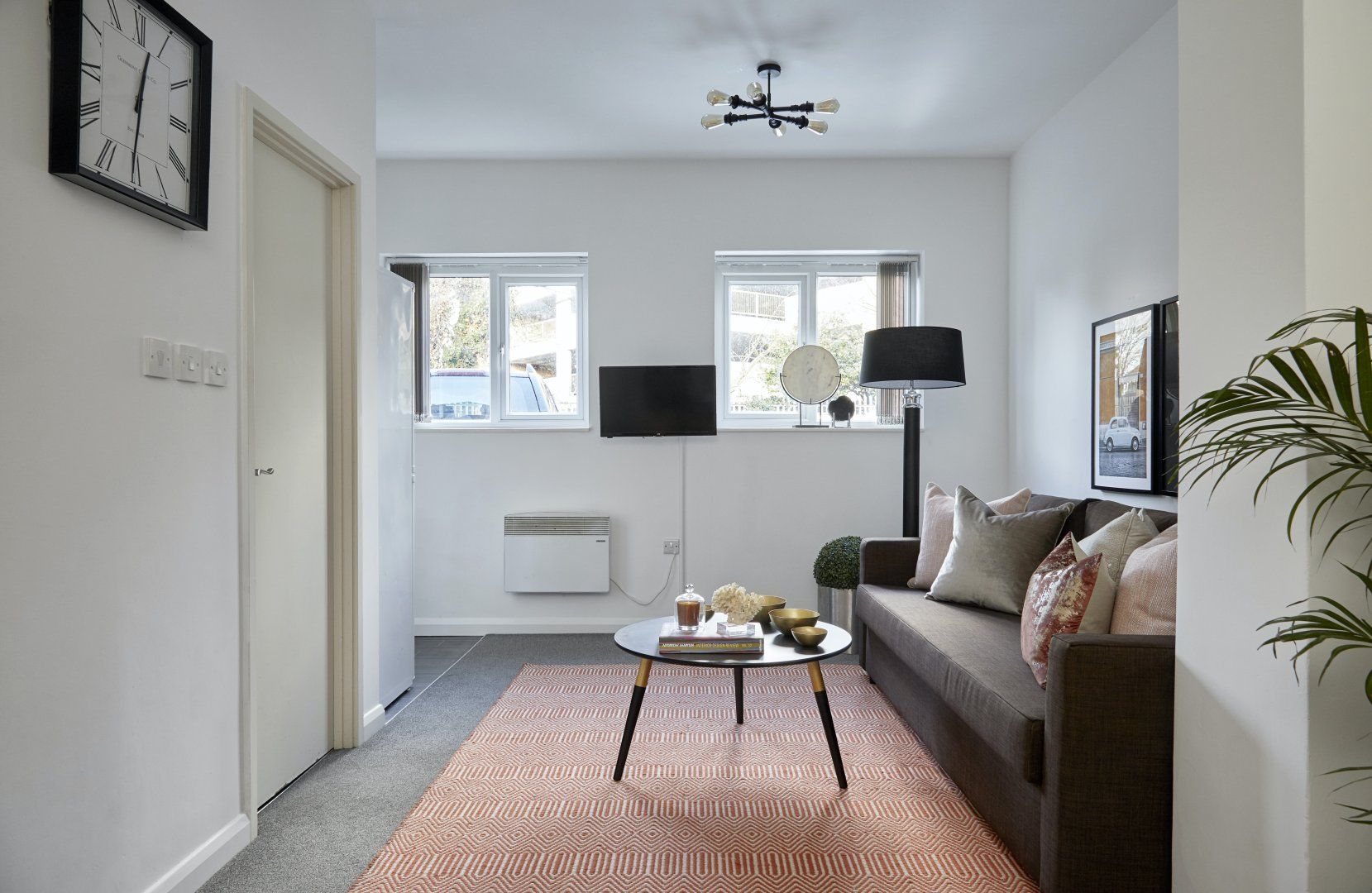 This smart apartment couldn’t be better placed. Situated in Watford, Hertfordshire, you’ll find yourself right between the city and the countryside. Inside, it’s a tranquil space with modern furniture, crisp white walls and pops of colour thanks to the carefully curated selection of artwork. You'll love making yourself at home in the sleek kitchen, sharing meals around the dining table and snuggling up amongst the soft cushions on the sofa.