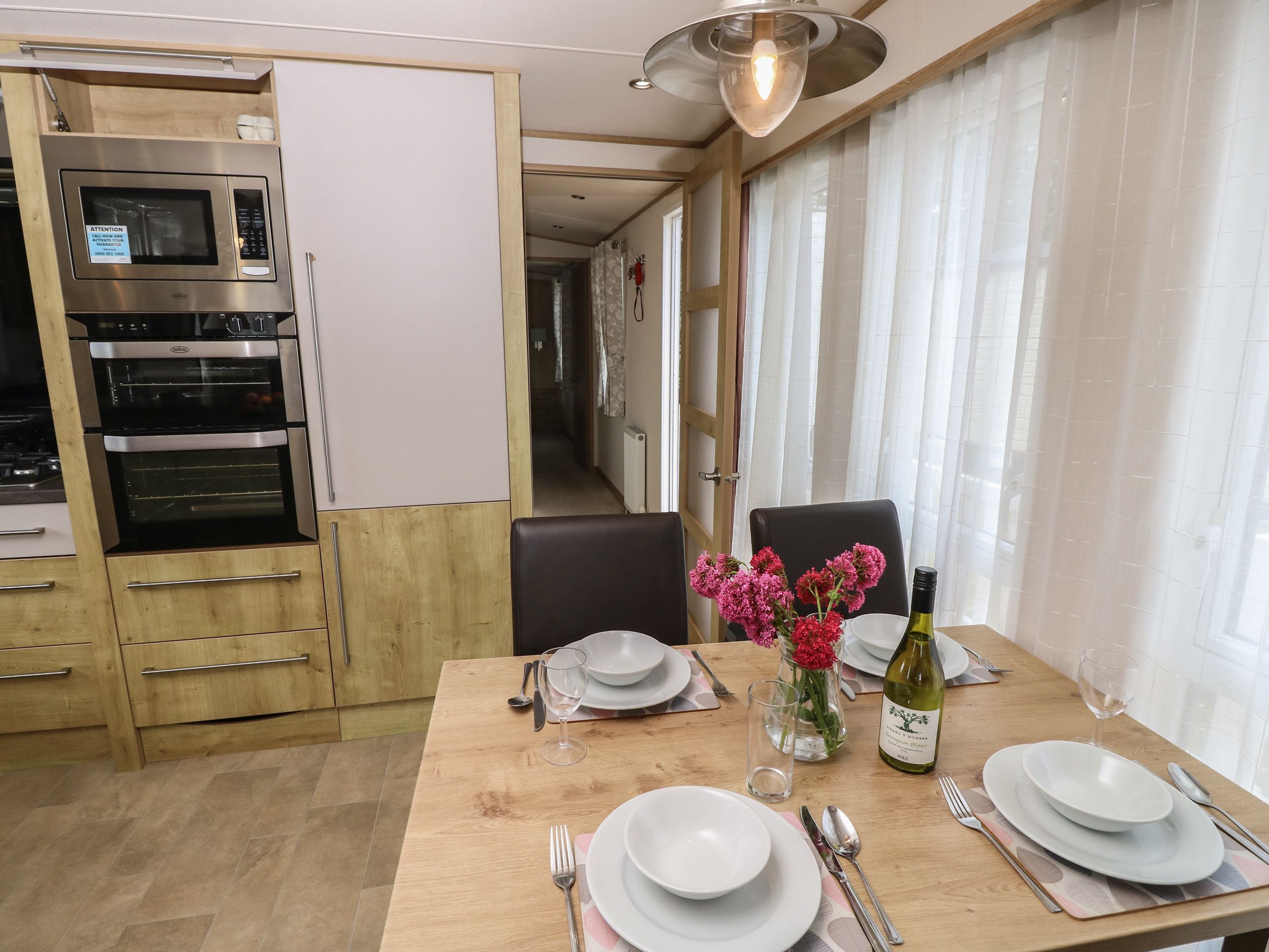 Amenities Central heating. Electric oven, gas hob, microwave, fridge/freezer, washing machine, dishwasher, kettle and toaster. TV, WiFi. Fuel and power inc. in rent. Bed linen and towels inc. in rent. Sofa bed available for two. Off-road parking for 1 car. Enclosed wraparound decking with furniture. One well-behaved pet welcome. Site passes available to access other site facilities such as the Pool and more. Sorry, no smoking. There is an onsite shop which is approx 0.5 miles from the property. Bigger Shop 1.4 miles. There is direct access to a private (dog friendly) beach from the property (approx 1 mile walk). pub 0.1 miles, beach 2.2 miles. Note: There are steps up to the entrance. Please note during July and August this property has a 7-night minimum restriction.