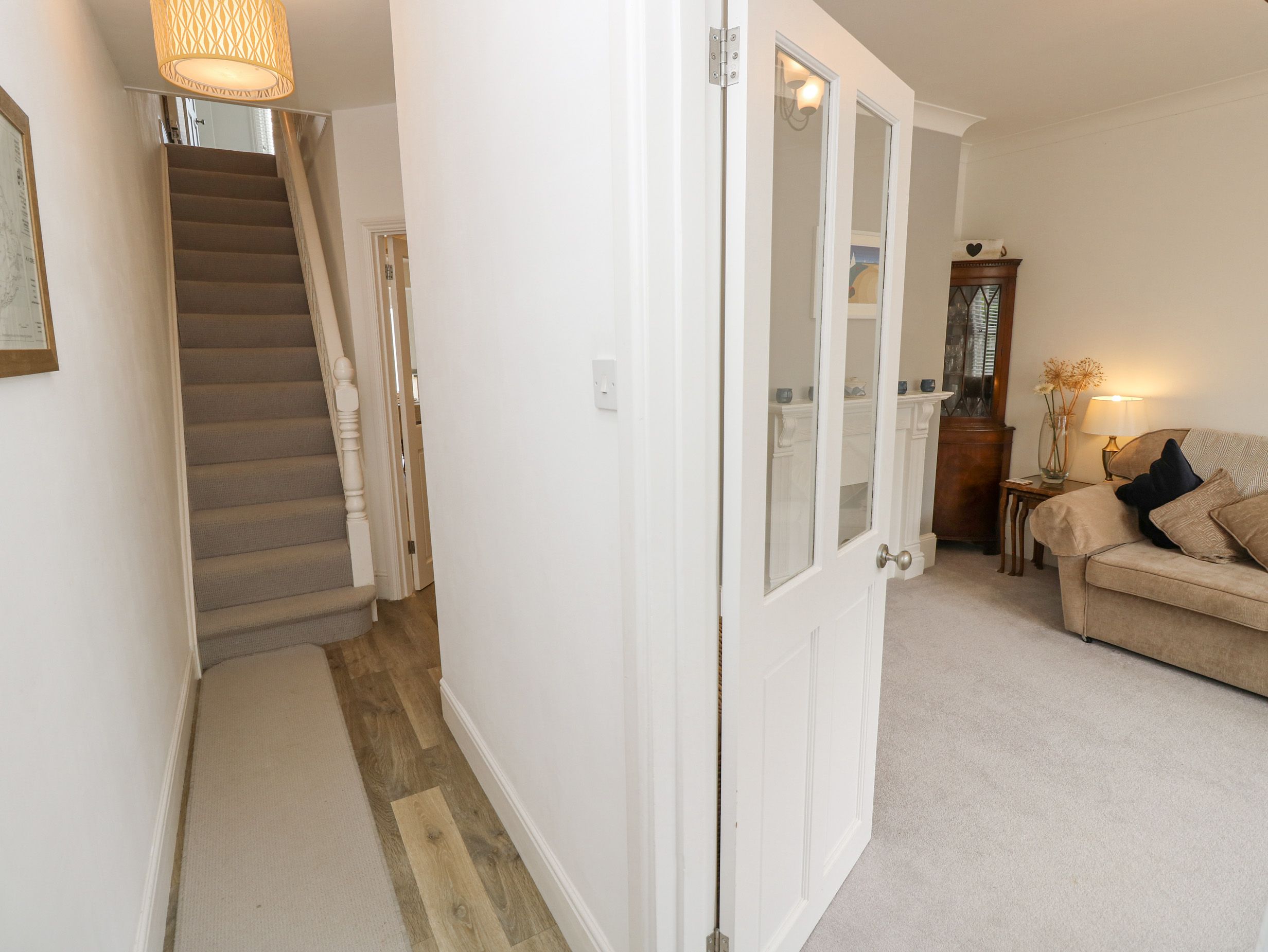 Holiday home The Anchorage, a terraced house, consists of a kitchen with kettle, toaster, coffee machine, dishwasher, microwave, gas hob, electric oven, fridge, and fridge/freezer, a dining room with dining seating for 6, a sitting room, and a sitting room with TV. The bedrooms consist of three doubles - one of the doubles can be offered as a twin room. There is a shower room with walk-in shower, basin, and WC. Outside, there is an enclosed rear garden with lawn, gravelled area, and furniture. Front garden with gravelled area and off-road parking for one car. Two well-behaved dogs welcome. Sorry, no smoking at this property. Guests can fnd a shop in 0.2 miles, a pub in 0.1 and a beach within 0.6 mile. WiFi, fuel, power, bed linen and towels are all included in the price. Visit The Anchorage for your next adventure. the rear bedroom is normally a twin but can be made up as a double bed if requested in advance.