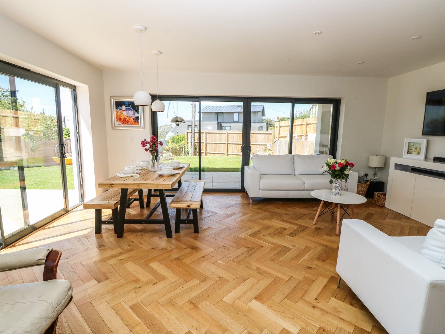 Holiday home Aquanaut is a detached villa resting in the village of Gurnard on the Isle of Wight. Hosting four bedrooms, including two king-size doubles with en-suite showers, along with a double and a twin, bathroom and a cloakroom, this property can sleep up to eight guests. There is also an open-plan living space with kitchen, dining and sitting area with woodburning stove, along with a utility room and a first floor sitting room. To the outside is a large enclosed garden, hosting a hot tub, barbecue, fire pit and a set of furniture. There is also off-road parking for three cars. Aquanaut is a luxurious escape for families, friends and couples, and is perfect for exploring the Isle of Wight.