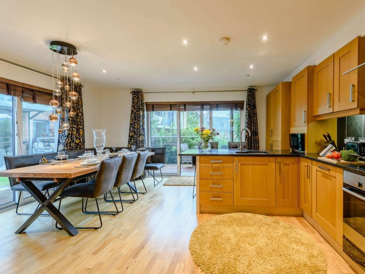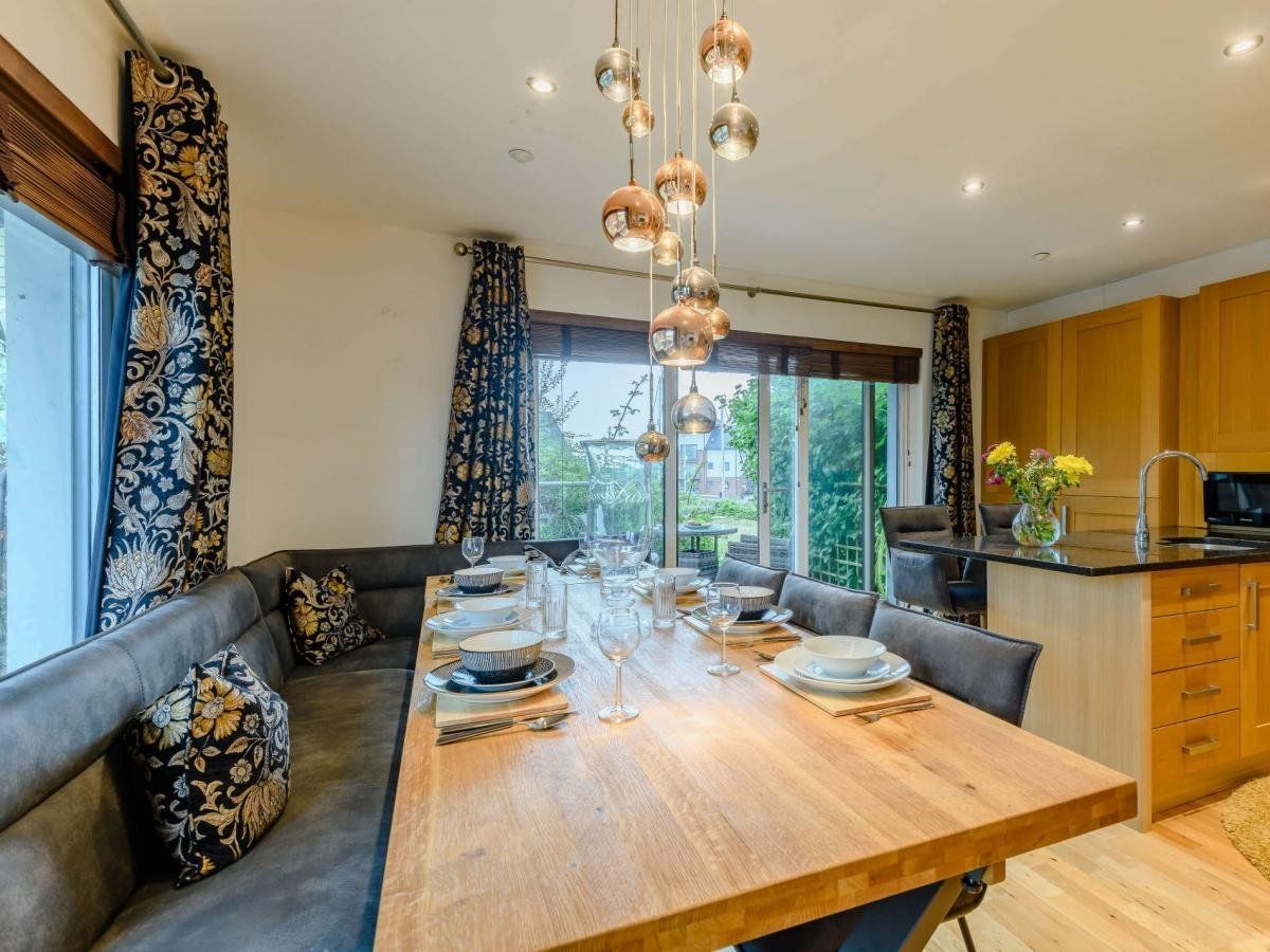 This expansive property is laid out over three floors and has four bedrooms which can accommodate up to eight people.