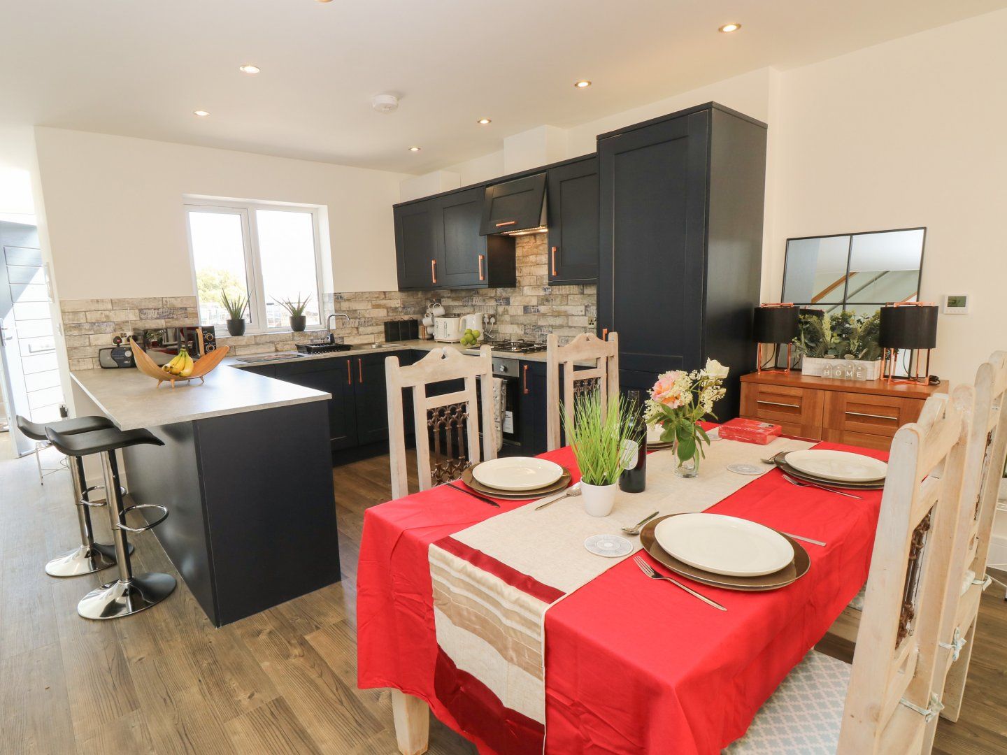 Accomodation Details Three bedrooms: 2 x Super king size bedrooms, 1 x twin bedroom, 1 x en-suite shower room with walk-in shower, basin, heated towel rail and WC. Bathroom with bath, shower over, basin, heated towel rail and WC. Cloakroom with basin and WC. Open-plan living space with kitchen, dining area and sitting area