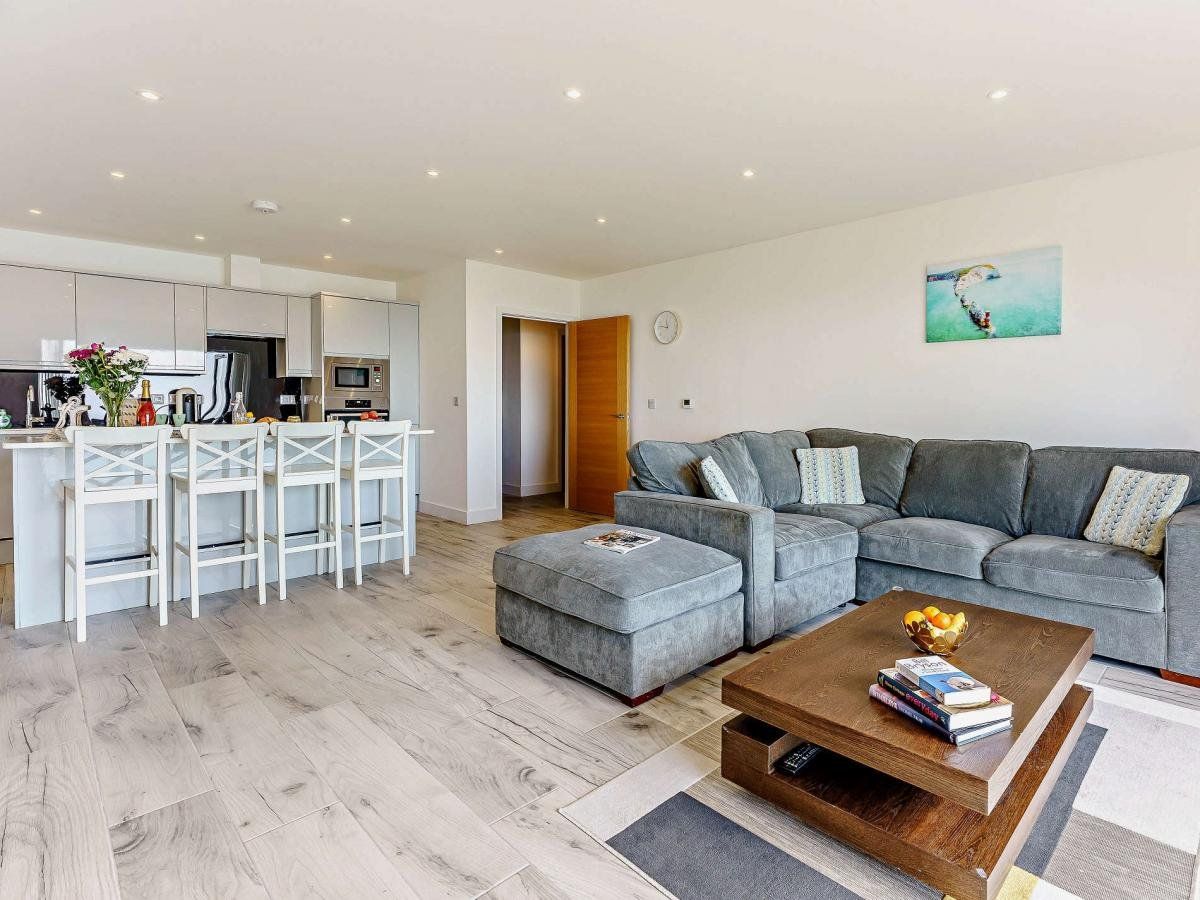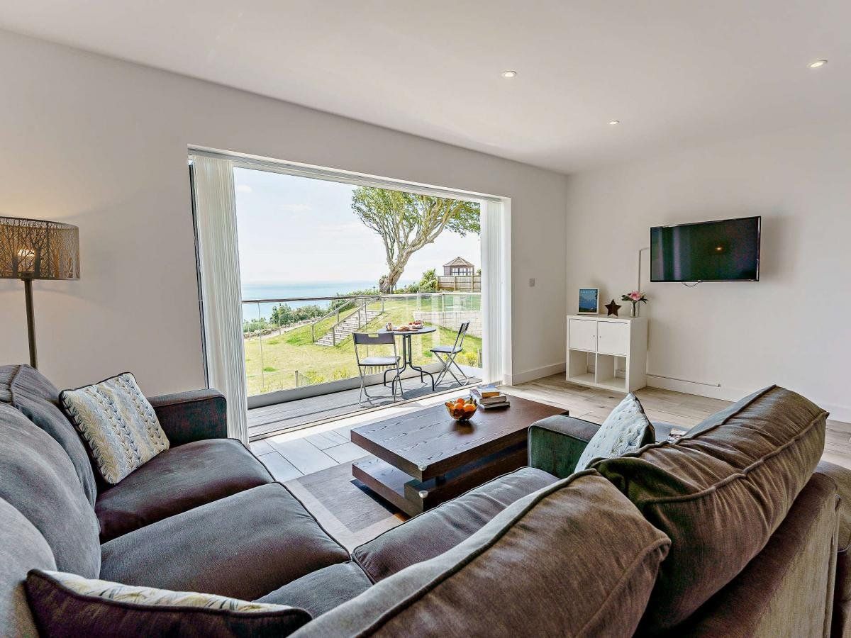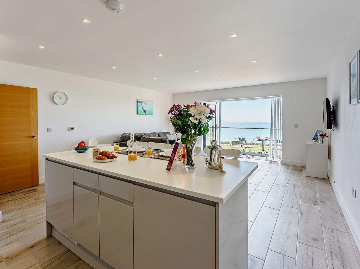 Set in an elevated position with beautiful views out to sea, this contemporary apartment sleeps four and is perfect for couples and families.