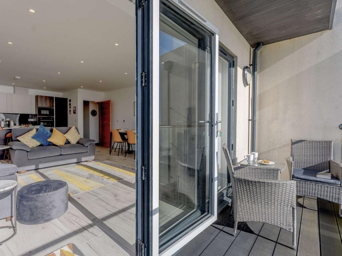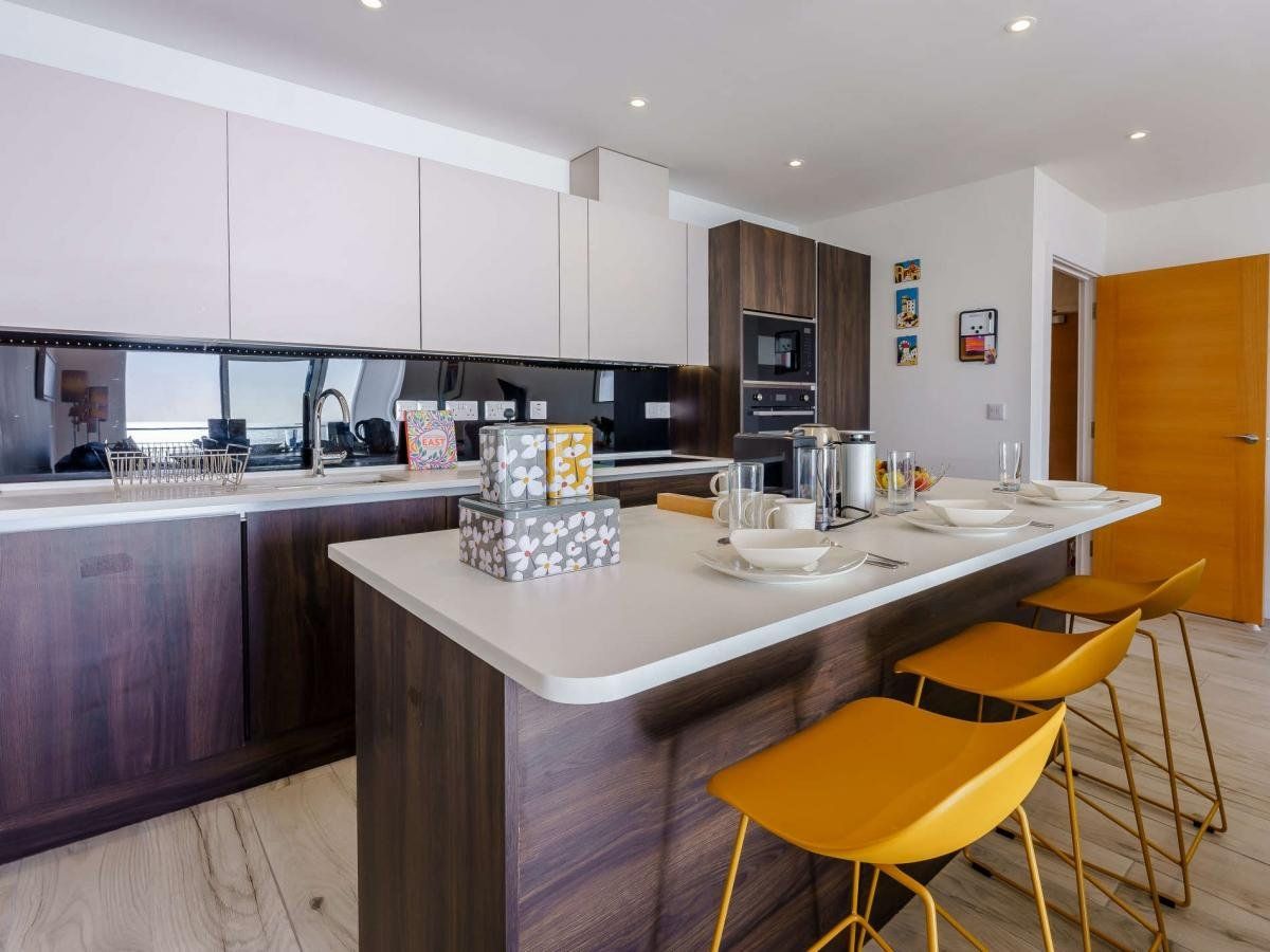 Sip a steaming cup of coffee from the Nespresso machine at the breakfast bar and glance out through the large glass balcony doors at the crashing waves at the end of the garden.