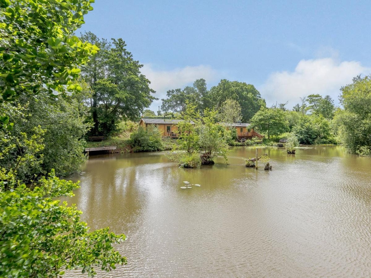 This charming lodge offers a tranquil retreat overlooking a picturesque pond, situated in a designated National Landscape.