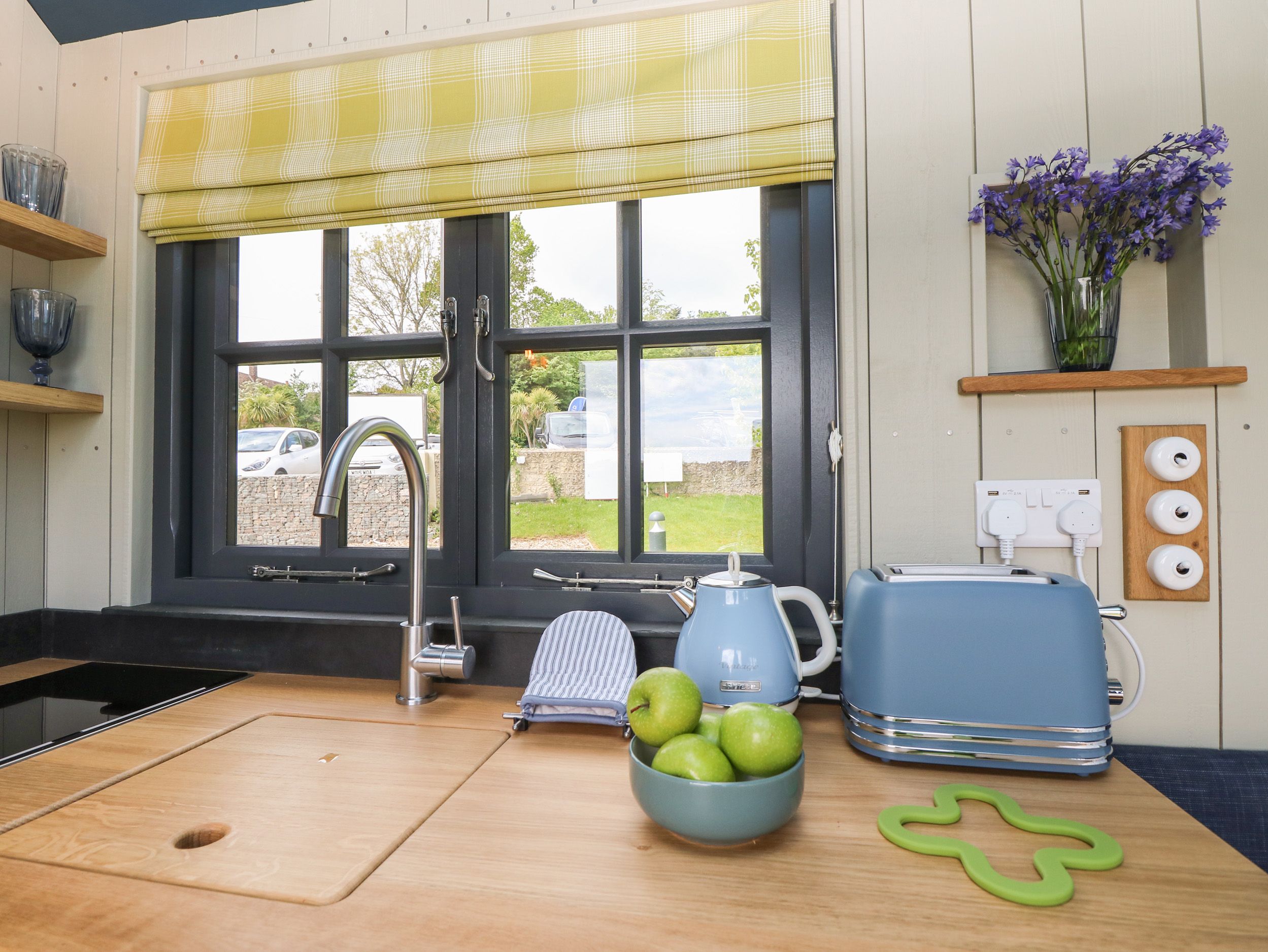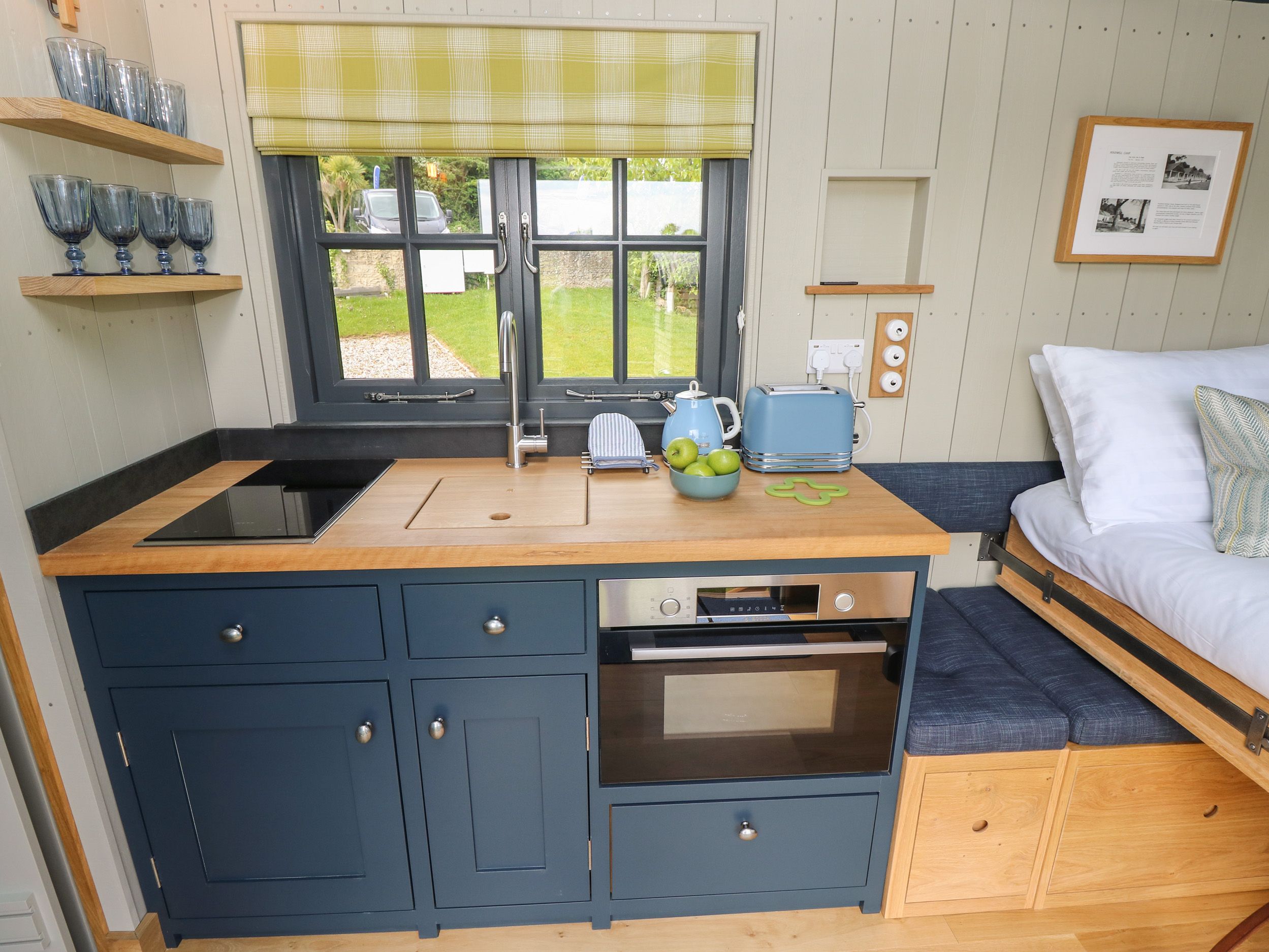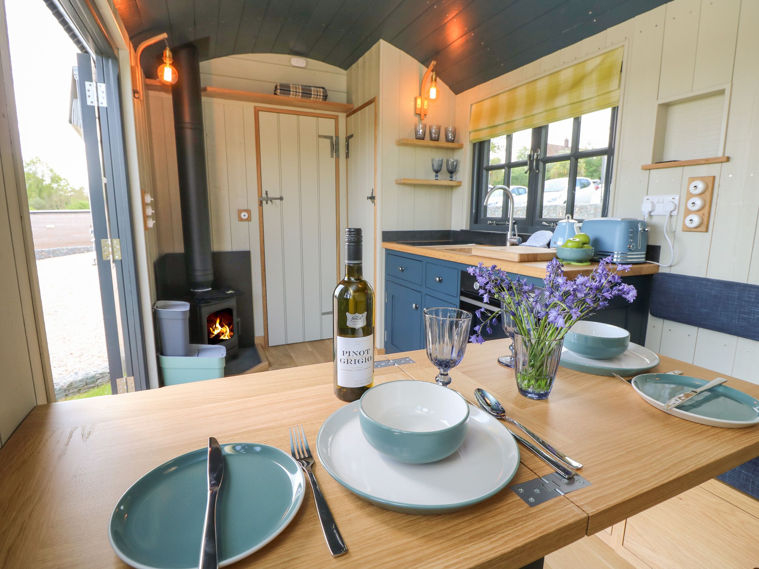 Accomodation Details Single storey. Studio-style layout with double bed, kitchenette and dining area with woodburning stove. Shower room with walk-in shower, basin, heated towel rail and WC