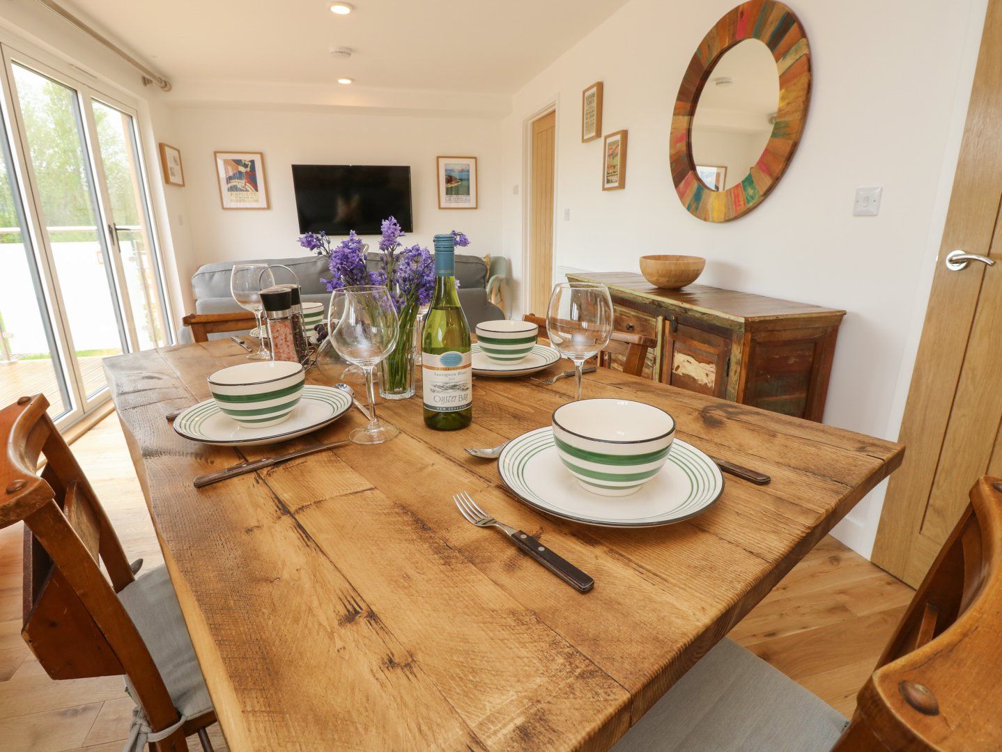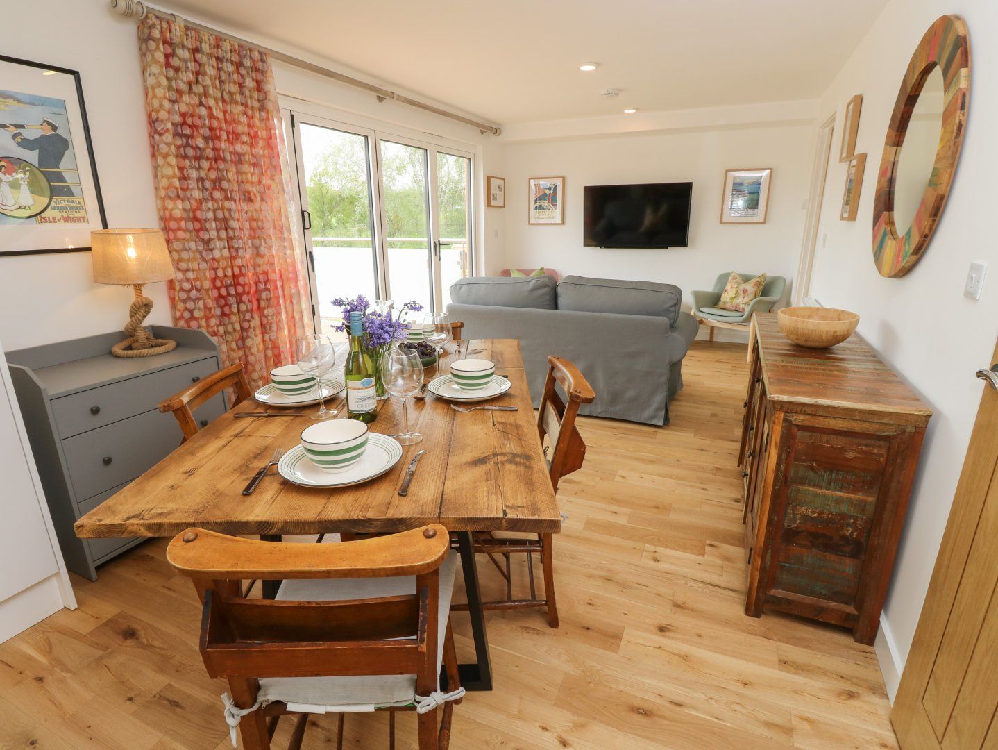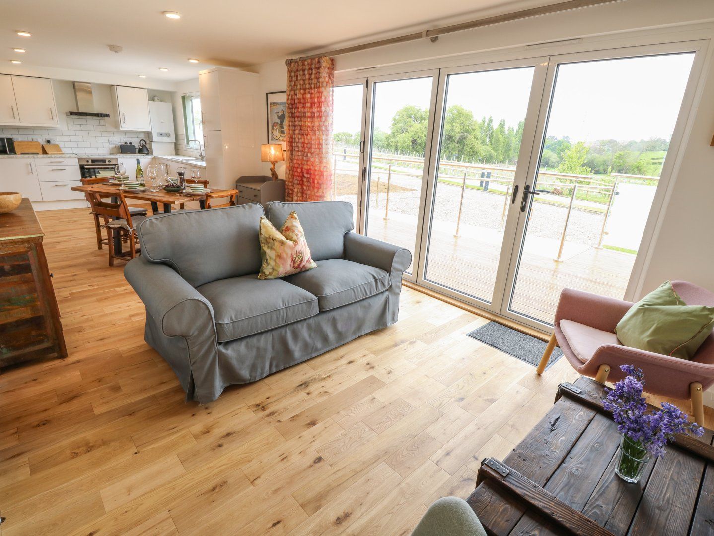 Accomodation Details Single-storey. Two bedrooms: 1 x king-size with TV, 1 x twin with TV. Shower room with walk-in shower, basin, heated towel rail and WC. Open-plan living space with kitchen, dining and sitting area
