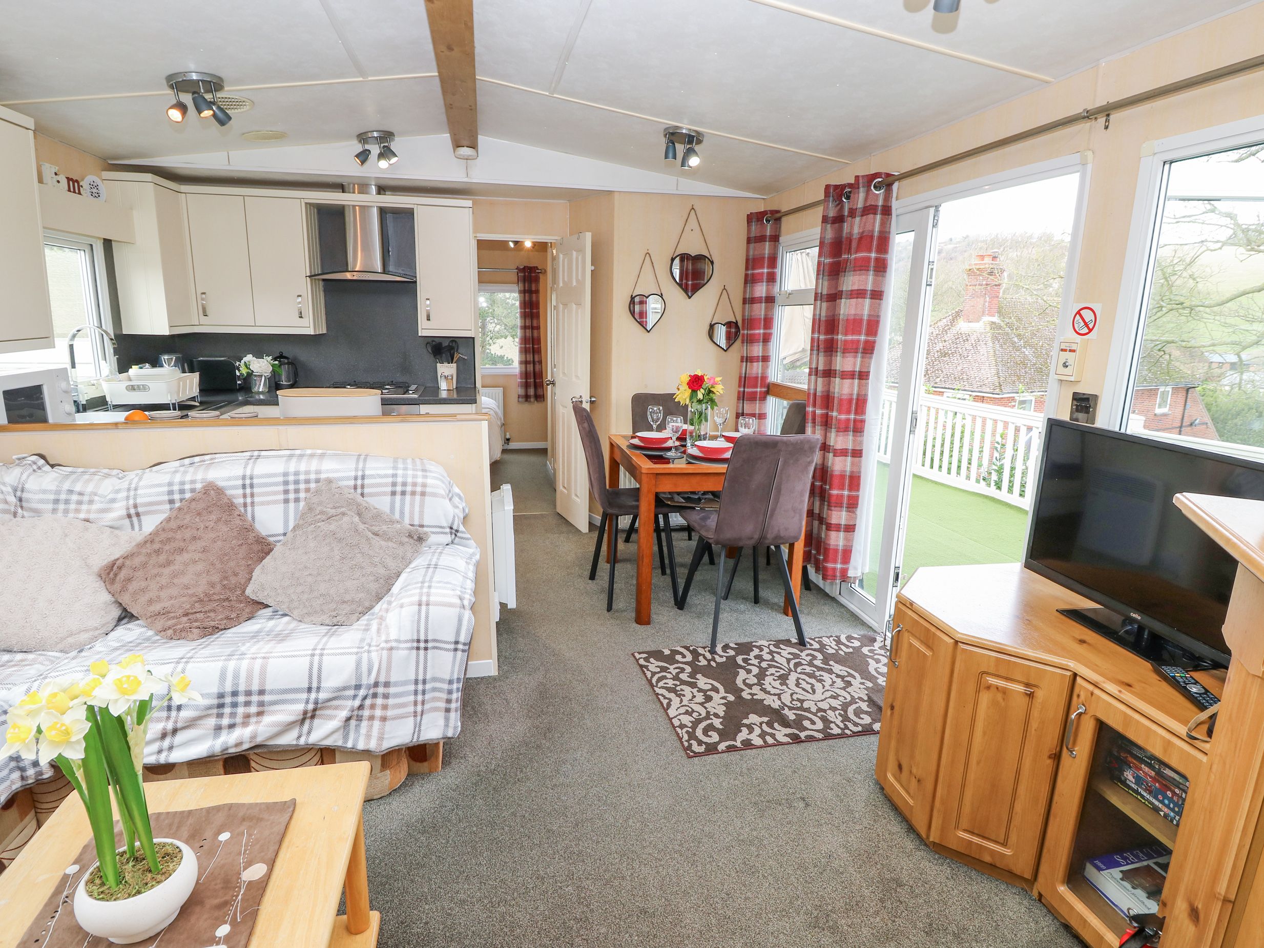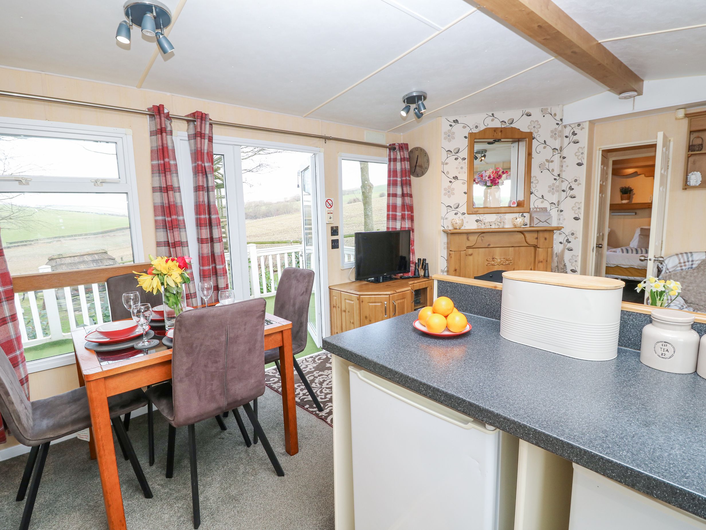 Amenities Gas central heating. Electric oven, gas hob, microwave, fridge, freezer, kettle, toaster. TV, WiFi. Fuel and power inc. in rent. Bed linen and towels inc. in rent. Off-road parking for 2 cars. Enclosed front decking with furniture. Sorry, no pets and no smoking. Shop 1.6 miles, pub 1.5 miles
