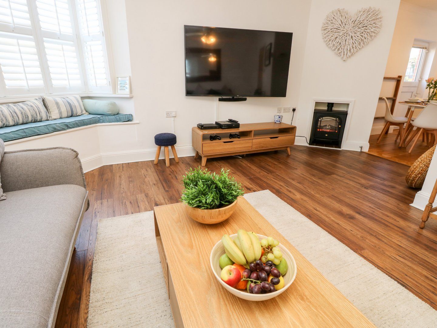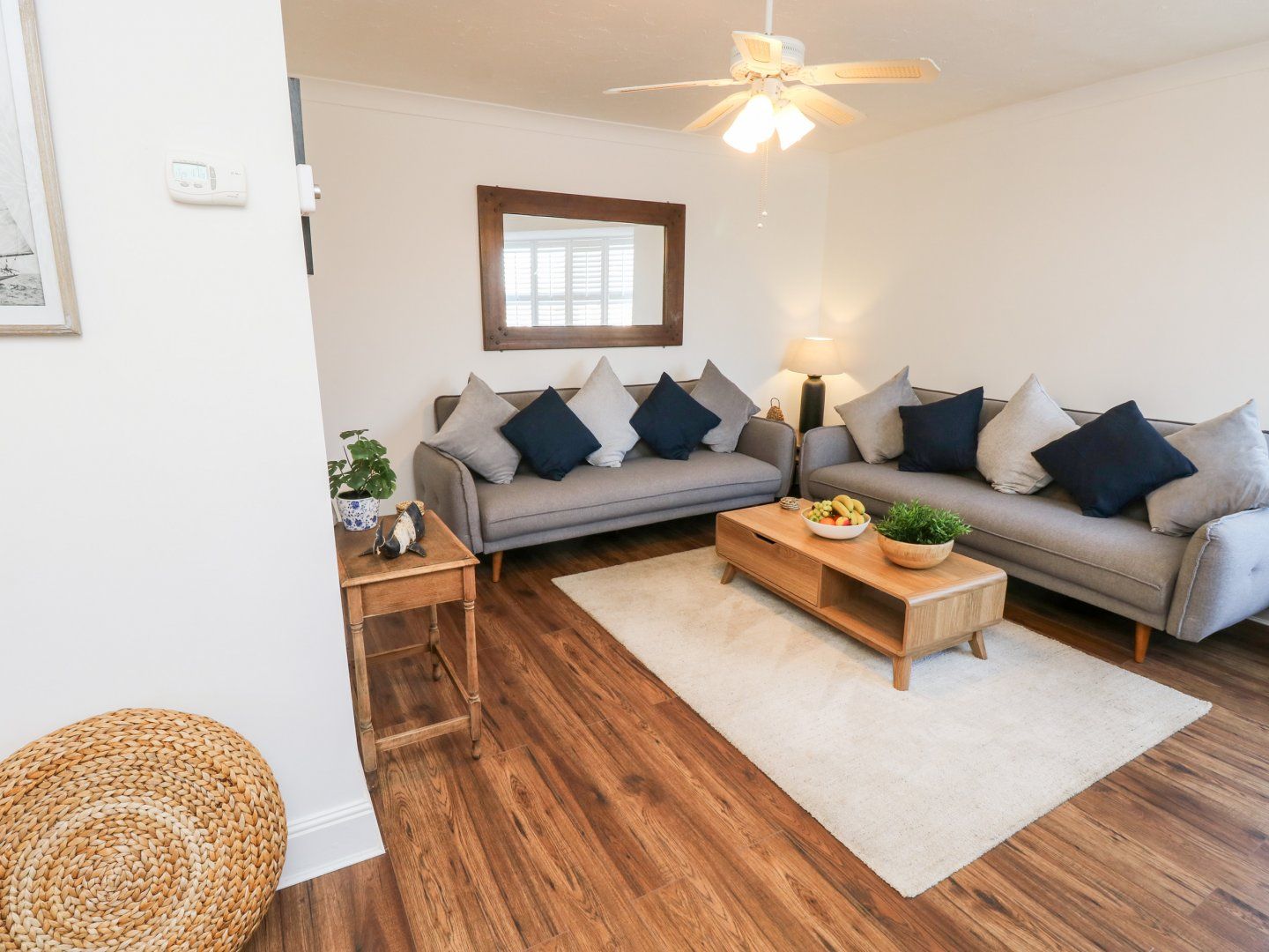 Amenities Gas central heating. Electric oven and gas hob, microwave, fridge, dishwasher, washing machine. TV, WiFi. Fuel and power inc. in rent. Bed linen and towels inc. in rent. Off-road parking for 1 car. One well-behaved pet welcome. Sorry, no smoking. Shop 0.2 miles, pub 0.5 miles, beach 1.9 miles. Note: Restricted head height in second-floor bedroom