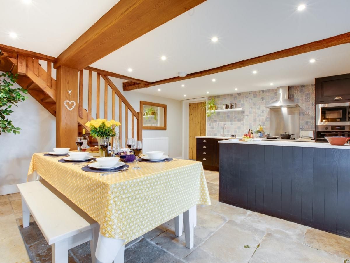 The picture-perfect exterior opens to reveal stylish interiors combining contemporary comfort and traditional features, including the original flagstone flooring and exposed beams.