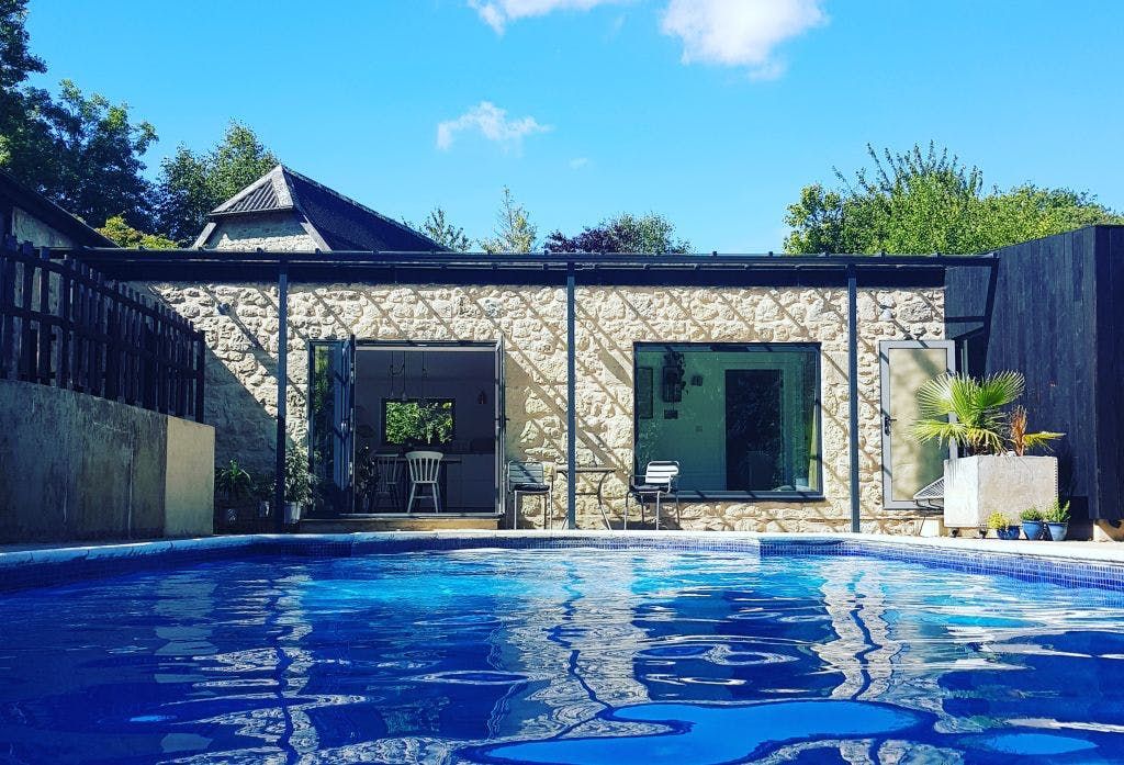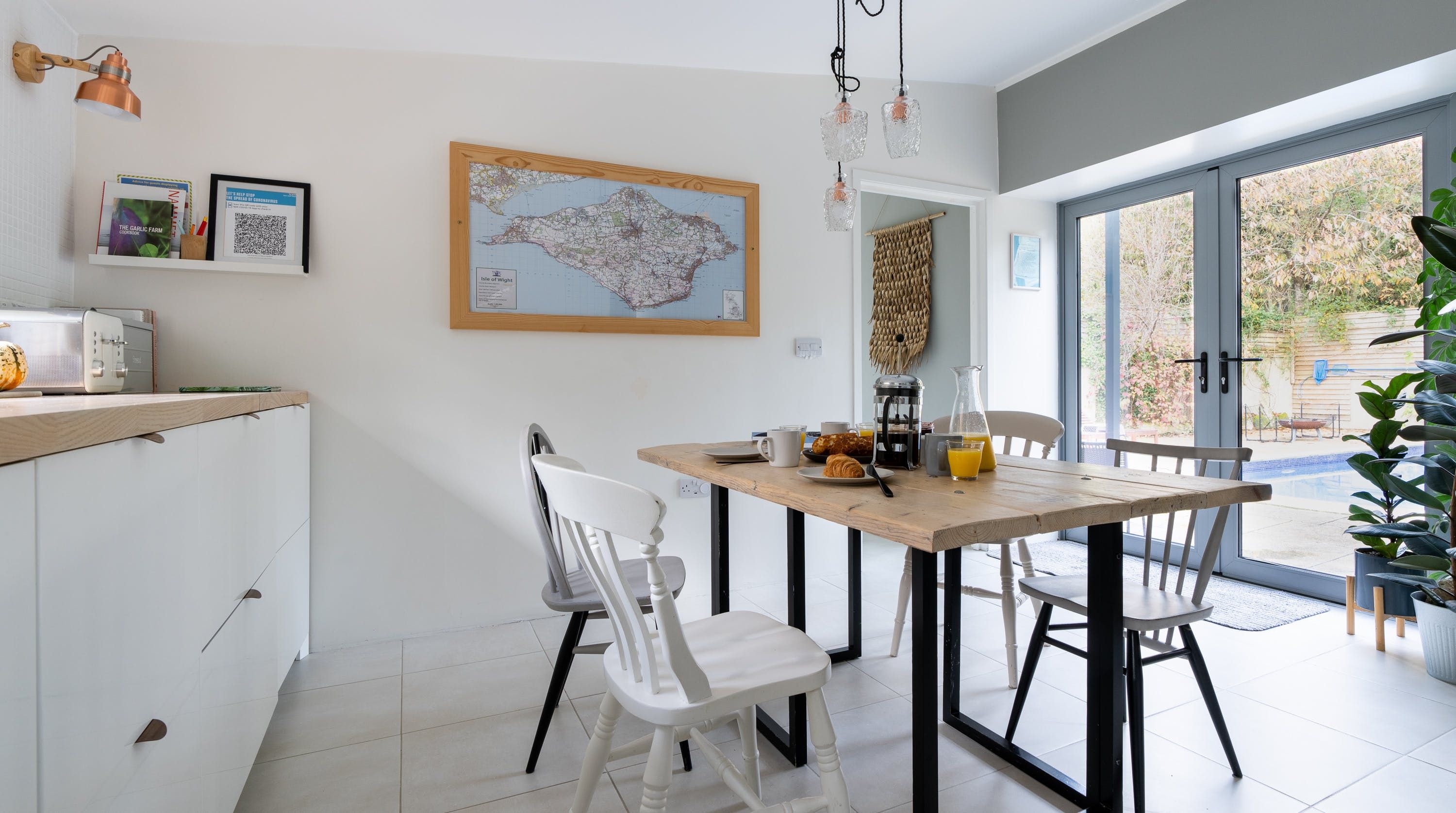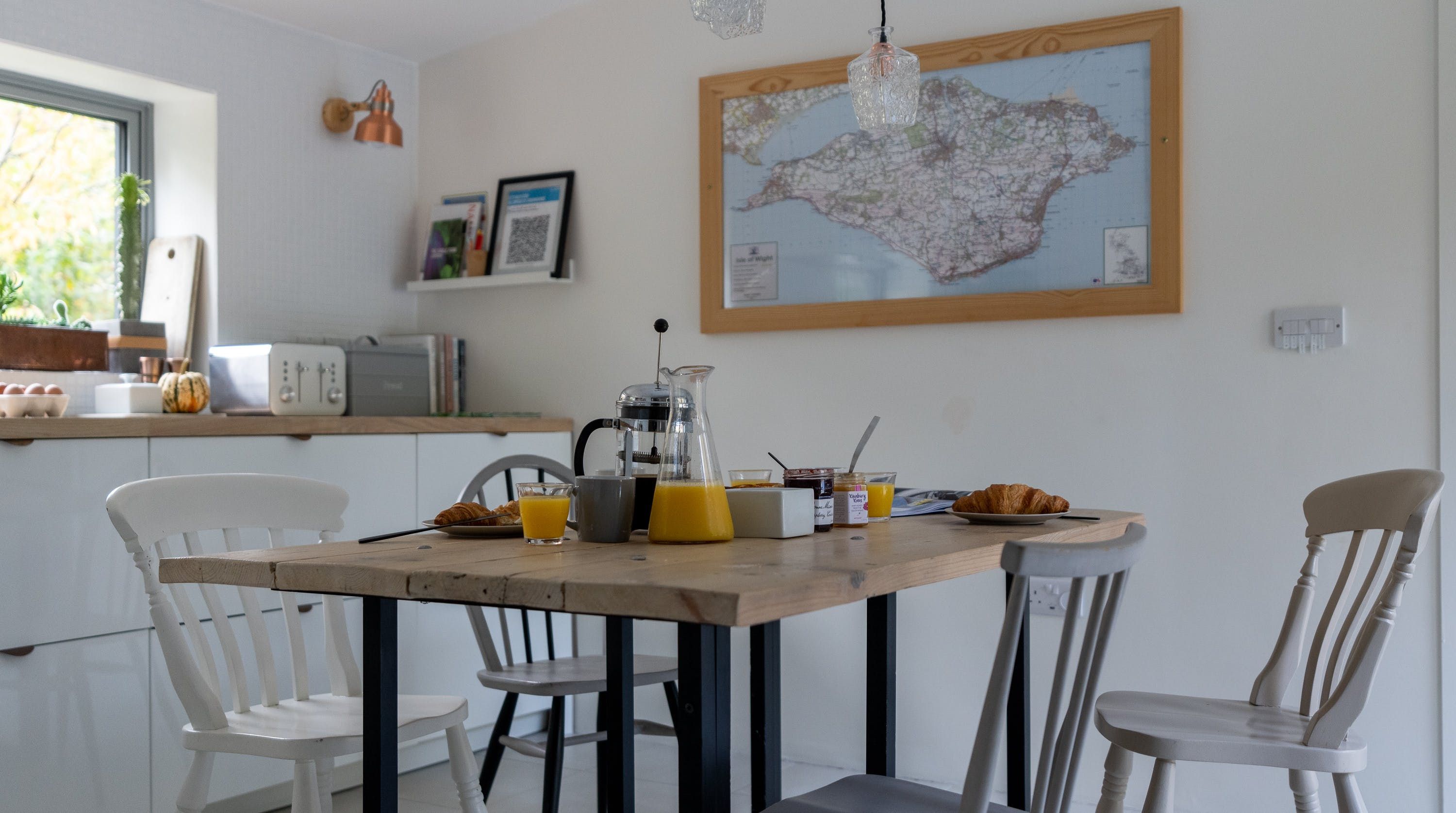 In a secluded spot down a single-track lane, this contemporary barn is a welcome surprise. Renovated in the style of Caruso St John (the famed architects behind the Tate Modern), it's a striking tribute to modern, eco-friendly design – solar panels and a heat source pump power the heating and hot water. The inside is just as dramatic, with copper light fittings, high-design furniture and large picture windows that make the most of the garden views. All the mod-cons are accounted for, including rain showers, a home-cinema projector and underfloor heating to keep chilly toes at bay. Throw a log on the wood-burner for extra cosiness and snuggle up in the window seat with a good book. Outside there's even more to love, including a private pool, leafy garden and a calisthenic gym space that works as a yoga or kickboxing studio. After a morning workout and a dip in the pool, enjoy a walk around Manor Bottom, or if you want to stretch your legs even more, the seaside town of Ventnor is a forty-minute walk away. But our favourite part were the hosts. The amount of love Steven and Agnieszka put into making their guests' stay extra special is quite something. No detail has been overlooked, be it organic toiletries, a welcome hamper filled with local jams and chutneys or arranging on-site massages. They even go the extra mile to carefully curate books and music for each individual guest – safe to say, you'll be in excellent hands.