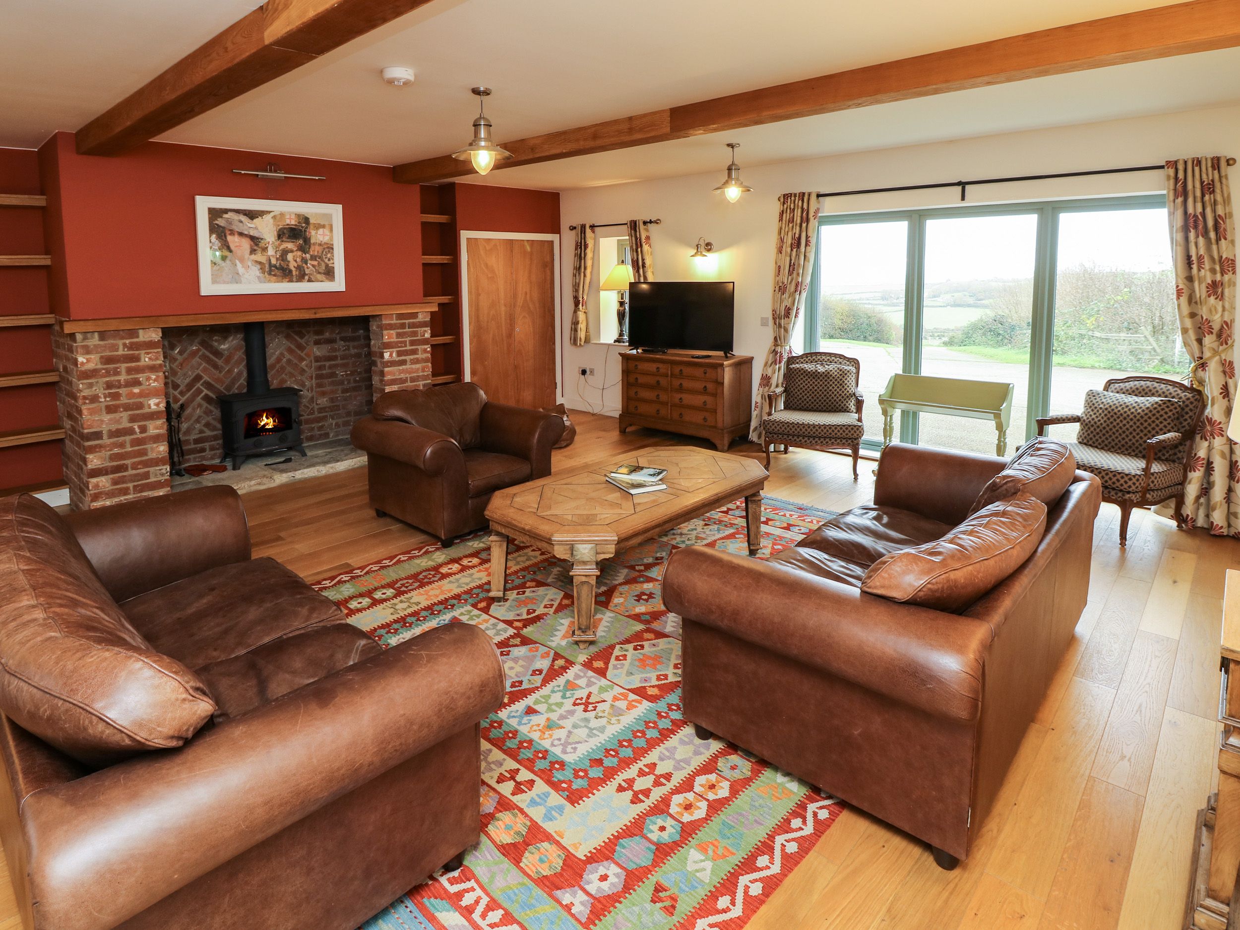 Oil central heating. Electric oven, electric hob, microwave, fridge, freezer, 2 x fridge/freezer, washing machine, tumble dryer, dishwasher, coffee machine, kettle, toaster. 2 x Smart TV, 1 x TV, WiFi. Fuel, power, and starter pack for woodburning stove inc. in rent. Bed linen and towels inc. in rent. Highchair, travel cot, and stairgate available. Ample off-road parking. Large, enclosed garden with patio, lawn, garden furniture and barbecue. One well-behaved pet welcome. Sorry, no smoking. Shop 0.9 miles, pub 2.9 miles