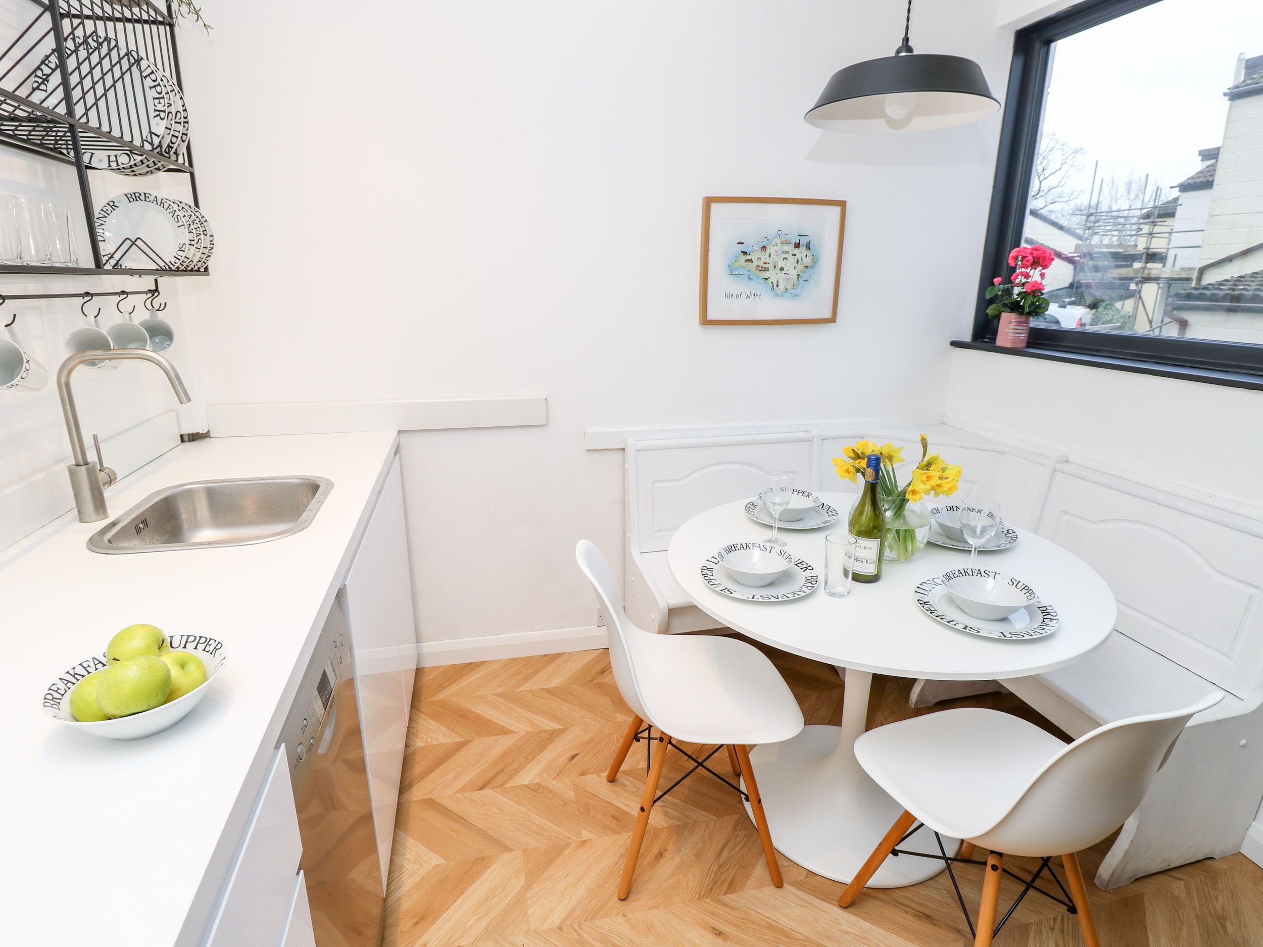 Holiday home 19 Creek Gardens is a detached two-bedroom house with a double with an en-suite shower, basin and WC, and a ground-floor double with an en-suite shower, basin and WC. The kitchen/diner is fully equipped with an oven and hob, microwave, fridge/freezer, washing machine, dishwasher. There's also a sitting room with a TV. Amenities include gas central heating, WiFi, fuel and power, bed linen and towels, a travel cot, a highchair and a stairgate. Outside there's off-road parking for one car. Sorry, no pets and no smoking. The nearest shop and pub are 0.7 miles away, and the beach 0.9 miles away. 19 Creek Gardens is a perfect base to visit the wonders of the Isle of Wight.