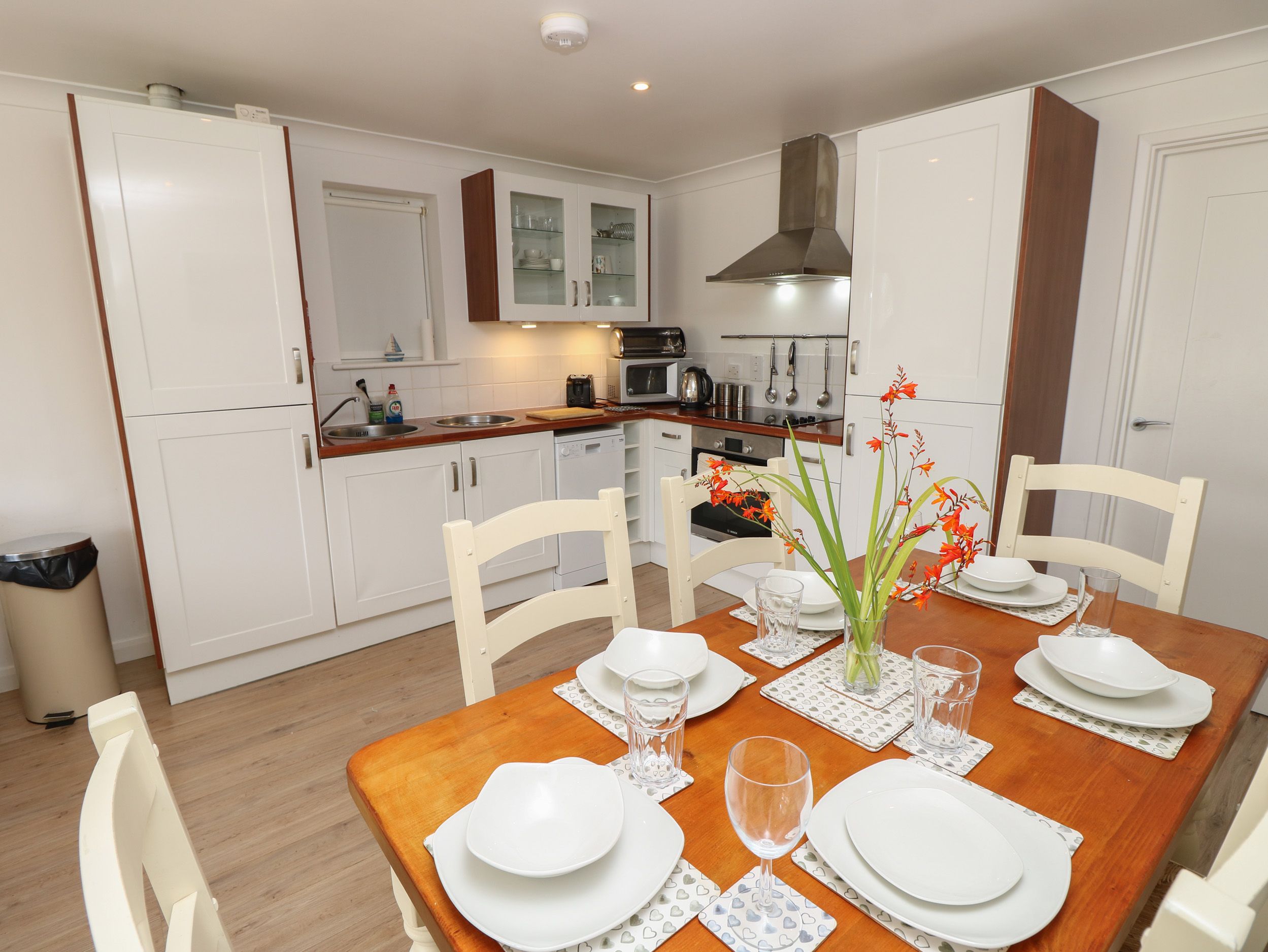 Amenities Gas central heating. Electric oven and hob, microwave, fridge/freezer, kettle, toaster. TV, WiFi. Fuel and power inc. in rent. Bed linen and towels inc. in rent. Off-road parking in free on-site car park. Front non-enclosed decking with furniture. Sorry, no pets and no smoking. Shop 1 mile, pub 0.9 miles, beach 2.5 miles. Note: Check-in 4pm, check-out 10am. On-site laundry. This property has a 3 night minimum stay