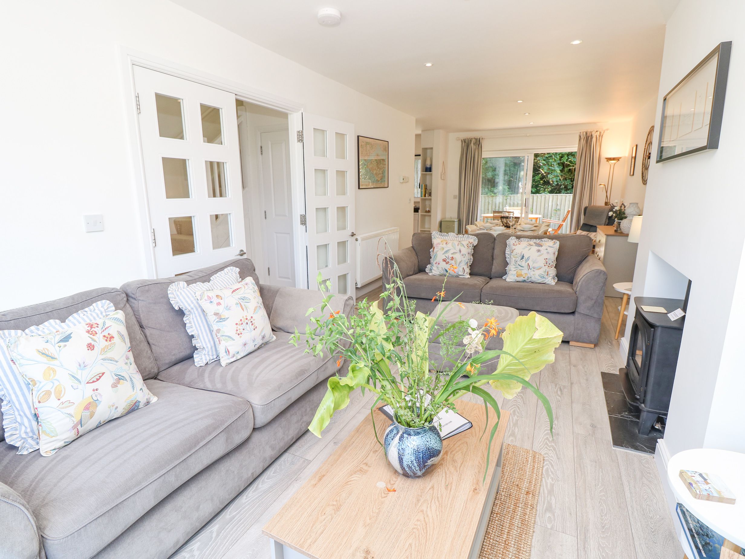 Accomodation Details Three bedrooms: 1 x double with en-suite walk-in shower, basin, heated towel rail, WC and TV, 1 x twin with TV, 1 x single with rollaway bed which is suitable for up to teenage children. Bathroom with bath, shower over, basin and WC. Cloakroom with basin and WC. Open-plan living space with kitchen, dining and sitting area