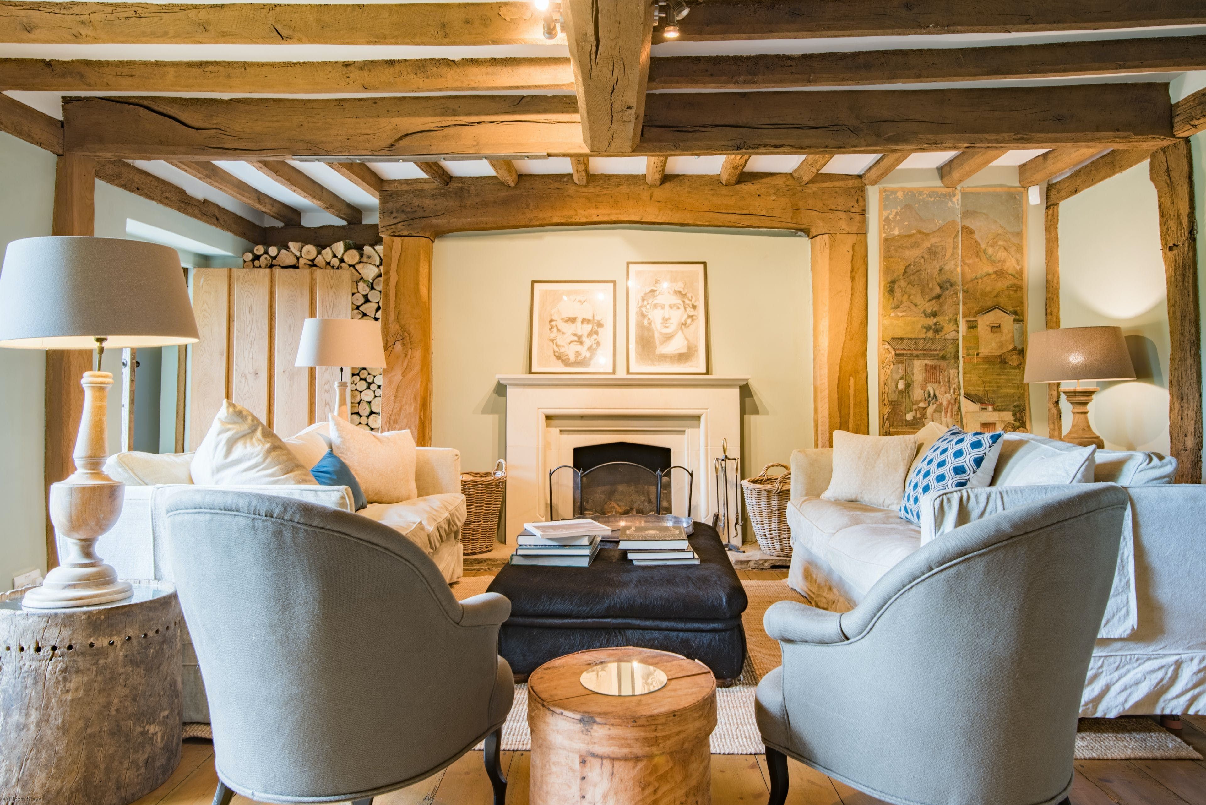 *The log wall in the sitting room and the logs outside are purely ornamental. Your host provides two baskets of logs for your use.