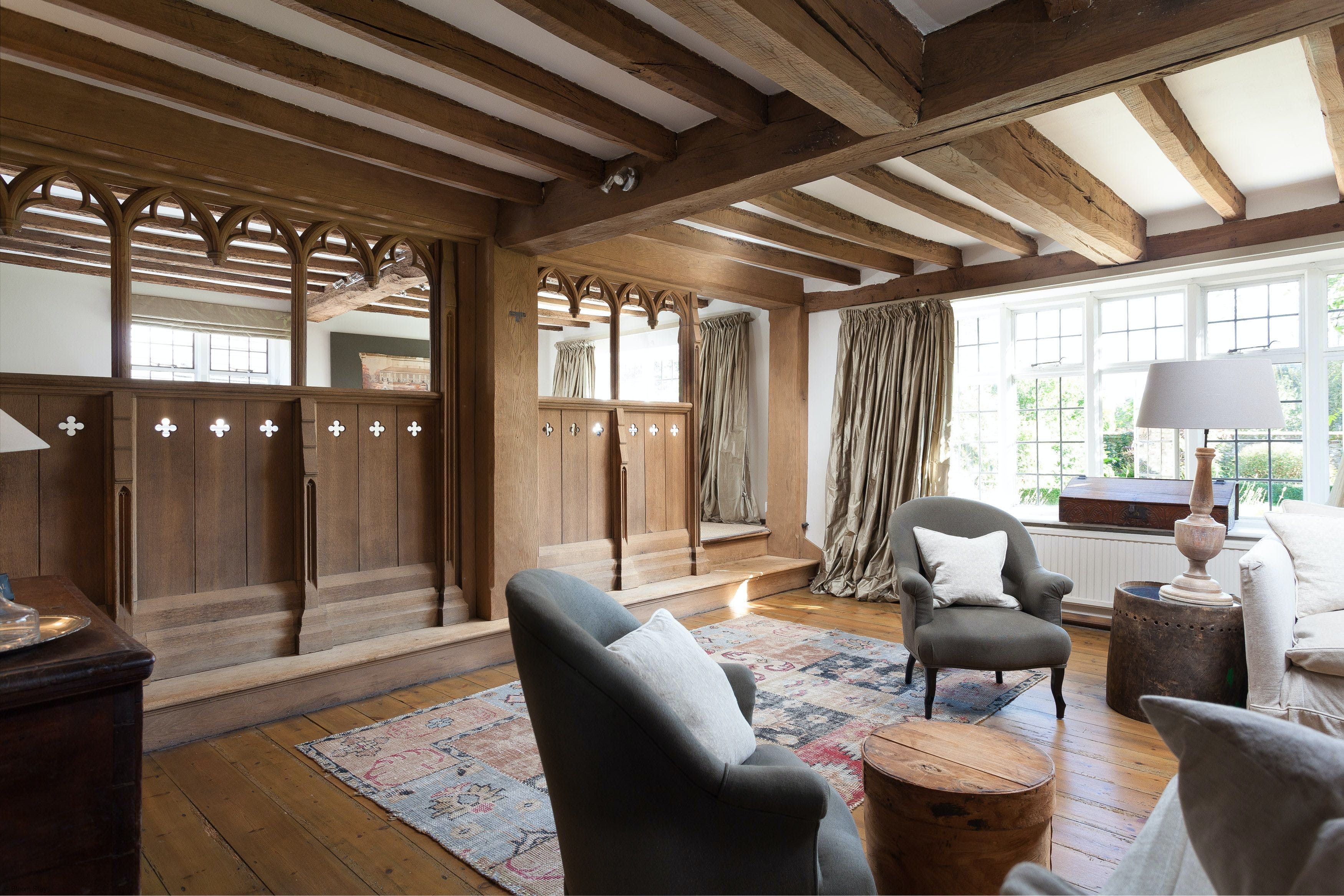 This home in Kent is one of a kind. The Grade II listed home sits on a 15th-century estate that boasts remarkable views of the North Downs – an Area of Outstanding Natural Beauty. You’ll have a heated swimming pool to look forward to, in addition to a tennis court. The house itself perfectly blends antique finds with modern comforts, so you’ll have everything you need for a cosy stay. Best of all, your four-legged friends are welcome to join you – and you don’t even need to leave the estate for delightful walks.