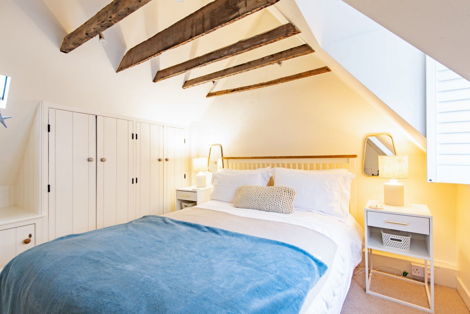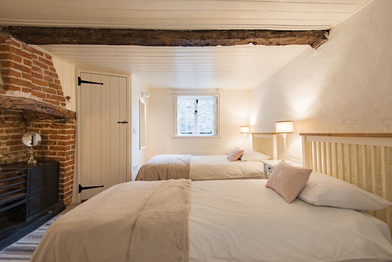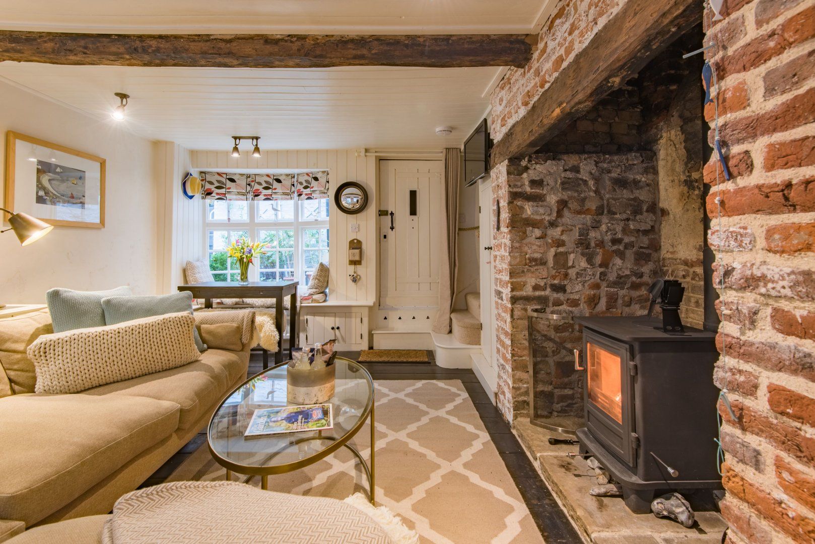 Tucked away on a quiet pedestrianised lane just off the winding streets of Deal, the flower-adorned way to the front door will feel like a hug for your soul. Stepping inside the home, you’ll notice a homely blend of traditional exposed beams and a brick fireplace that now houses a little wood-burning stove, alongside more modern furnishings.