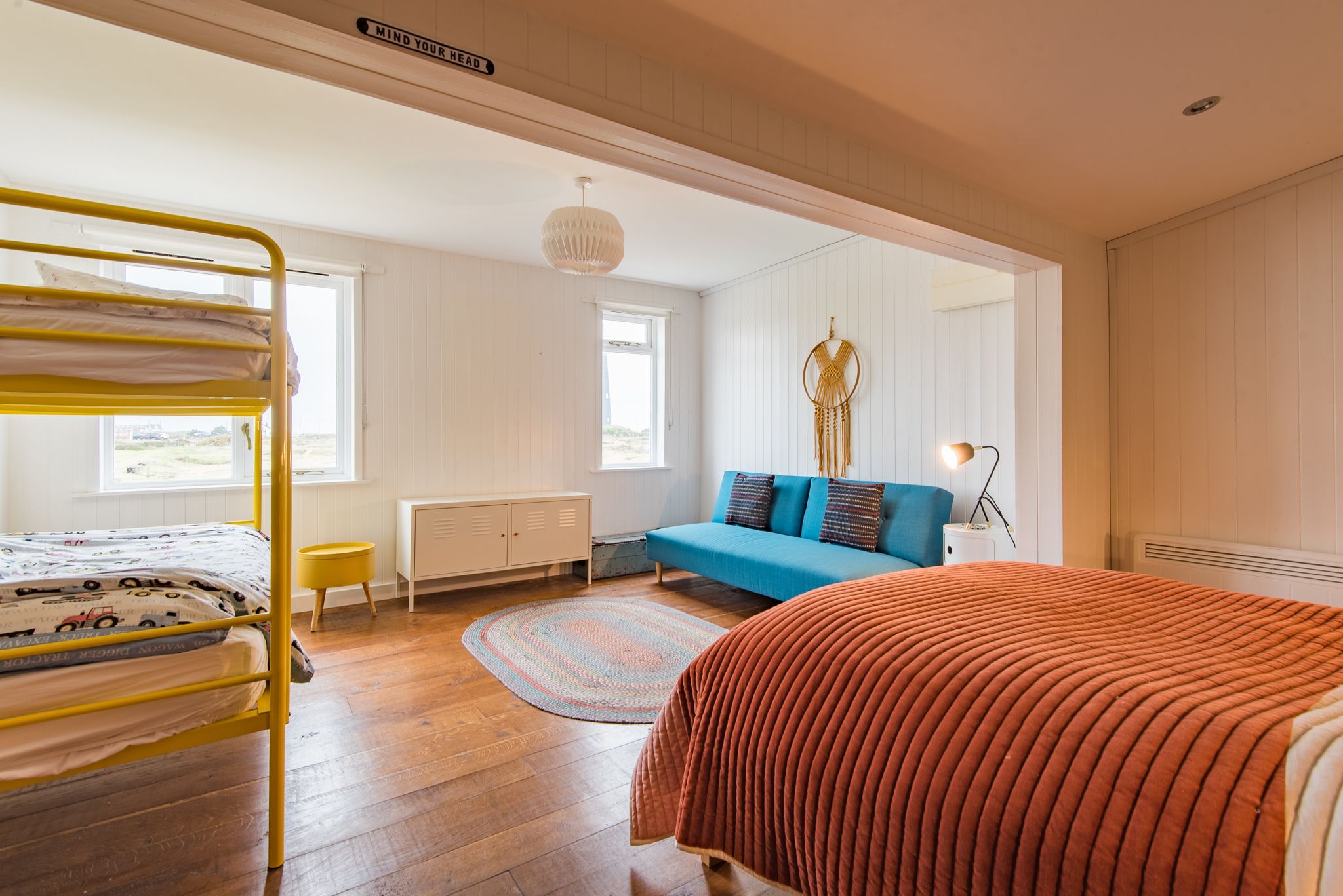 This quirky home is full of charm and fascinating architectural design. A salvaged Victorian railway carriage has been incorporated into the design of the home, which boasts retro and urban styling – you’d never guess from the simple white cottage exterior. There’s a pool table and a wood-burning stove for cosy nights in, but most of your stay here will likely be spent exploring the shingle beach just a few steps away, or admiring sea views and the dramatic backdrop of the power station on Dungeness beach. This area is a great choice for wildlife enthusiasts – don’t forget to bring your binoculars.