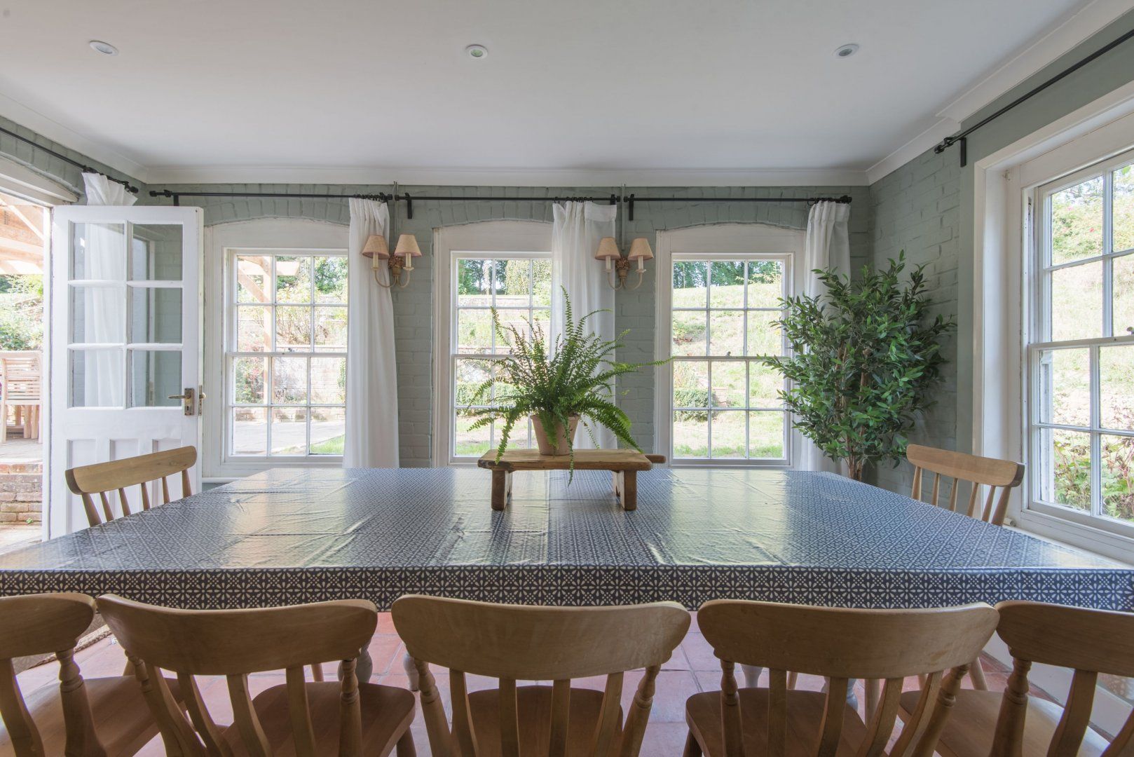 Enjoy grand family breakfasts around the dining table and swing open the patio doors to let the crisp morning air in. Spend the afternoon exploring the 3 acres of landscaped gardens that you have access to and soaking up the surrounding Kent countryside. Little ones can have a blast on the trampoline, while bigger kids can enjoy a game of tennis on your own private courts. In the evenings, gather around the log fire for late-night conversations, or cuddle up on the sofa with a good movie or book.