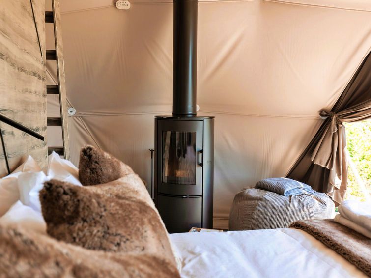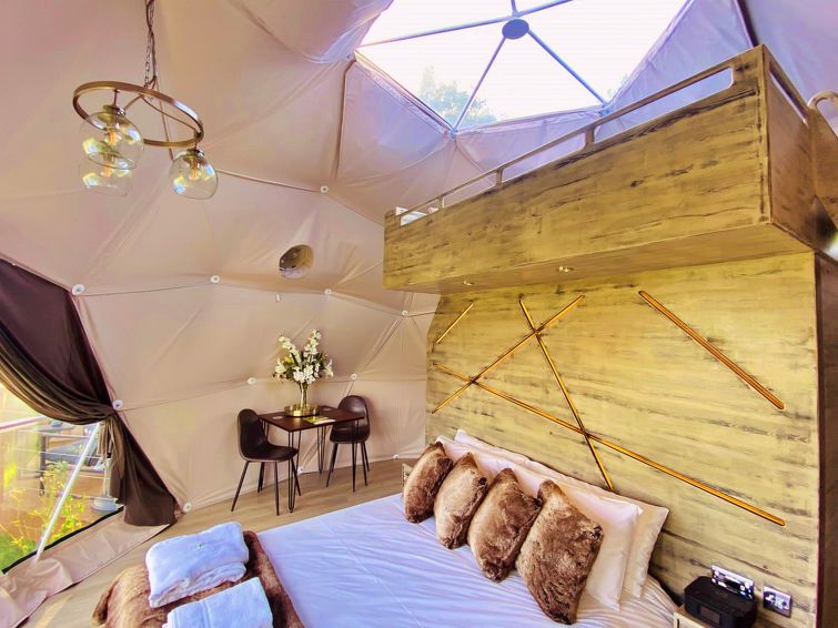 "Scotney Luxury Dome", 2-room chalet 30 m2, on the ground floor. Object suitable for 4 adults. Living room with open-hearth fireplace. 1 room with 2 french beds. Kitchen (toaster, kettle, microwave, electric coffee machine). Shower/WC. Barbecue. Facilities: iron. Internet (WiFi, free).