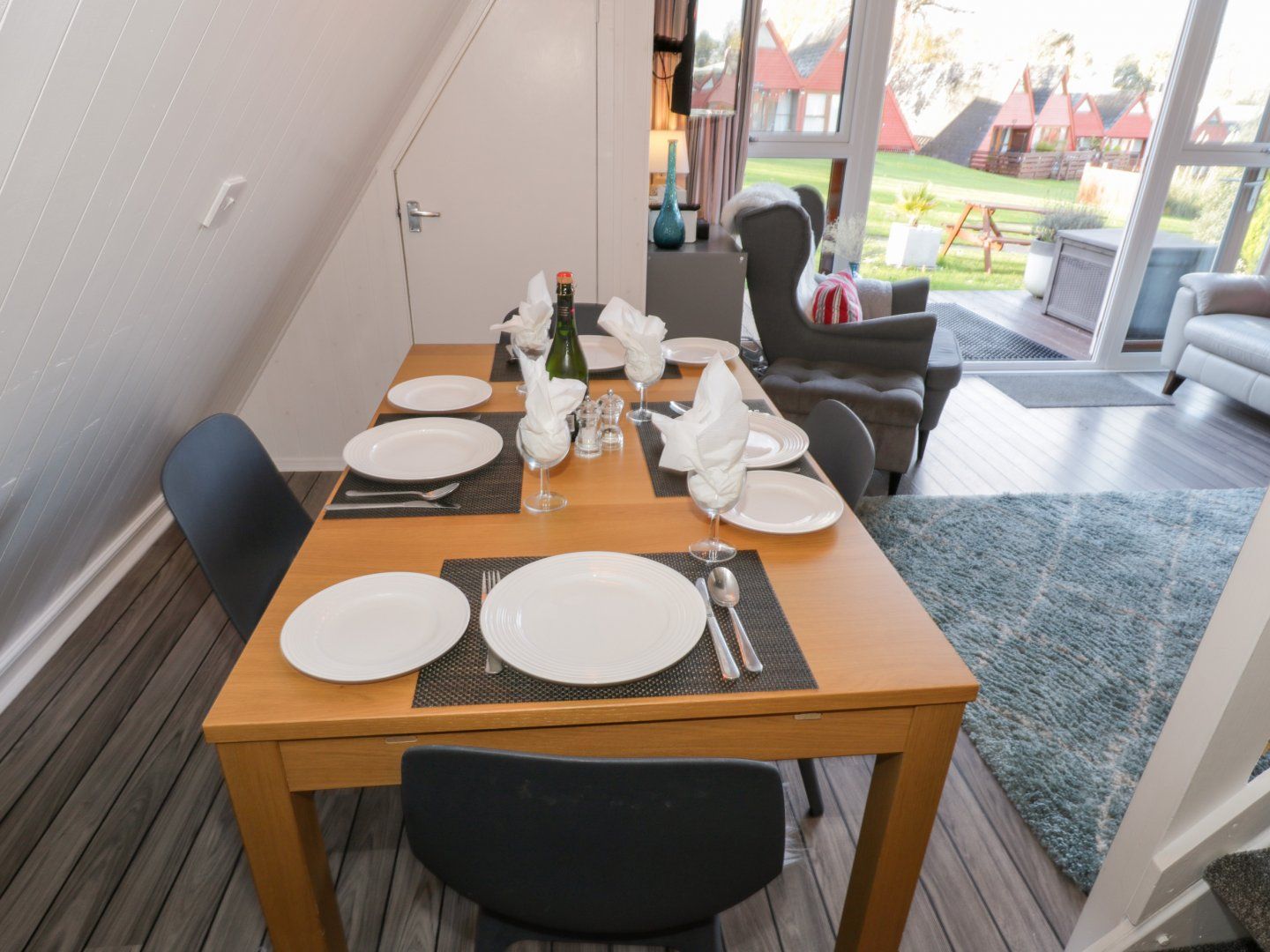 Amenities Electric heating. Electric oven and hob, microwave, fridge/freezer, washing machine, dishwasher. TV, WiFi. Fuel and power inc. in rent. Bed linen and towels inc. in rent. Travel cot can be hired from Kingsdown Park reception. Communal parking. Decking with table and chairs. Shared use of swimming pool, tennis courts, crazy golf and clubhouse with bar (seasonal openings may vary). Sorry, no pets and no smoking. Shop and pub 0.1 miles, beach 0.2 miles. Note: Steep open-tread staircase in this property, please consider when booking and take care in the property. Note: Sloped ceilings in upstairs bedrooms, please take care. Note: Check-in from 4pm, check-out by 10am.