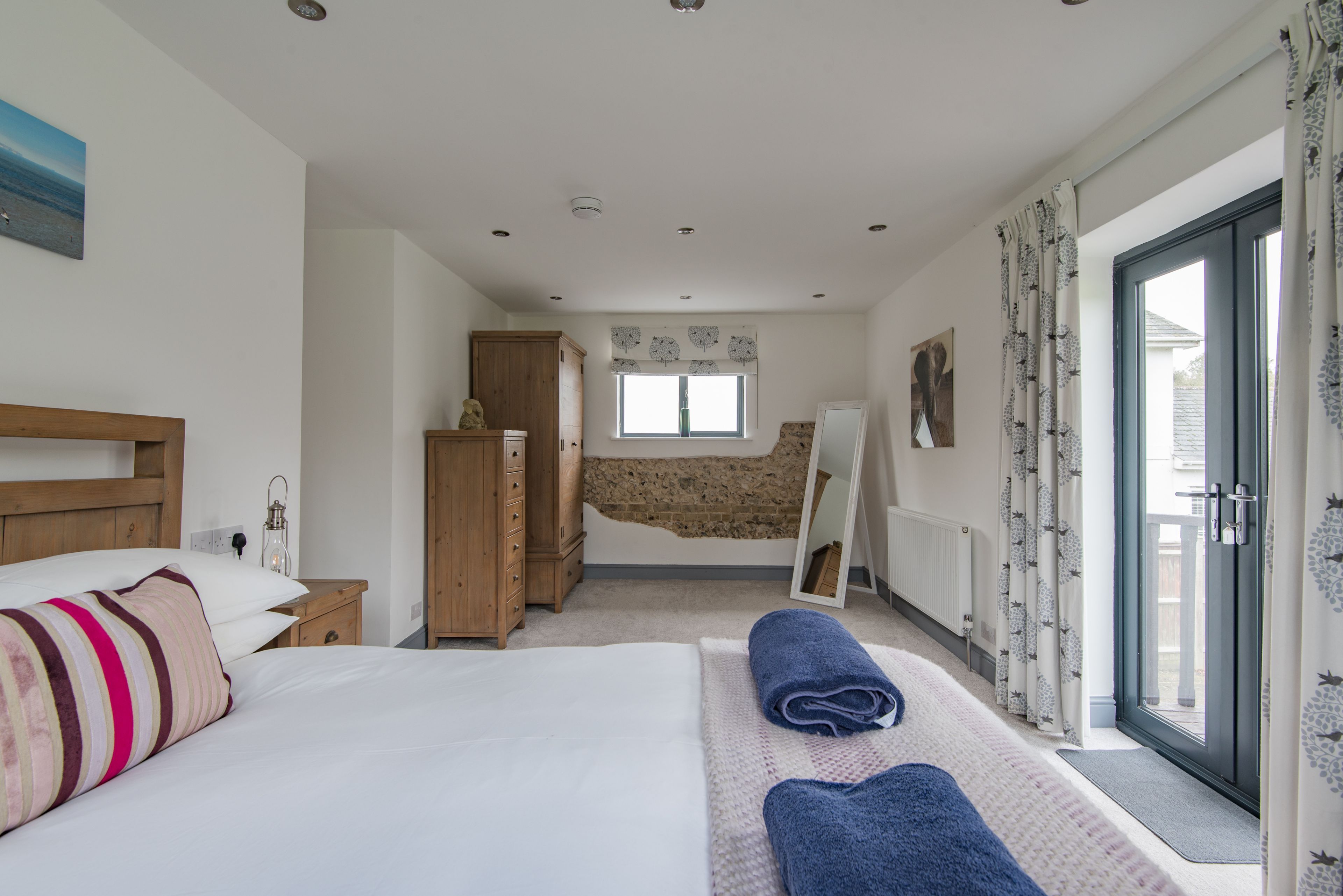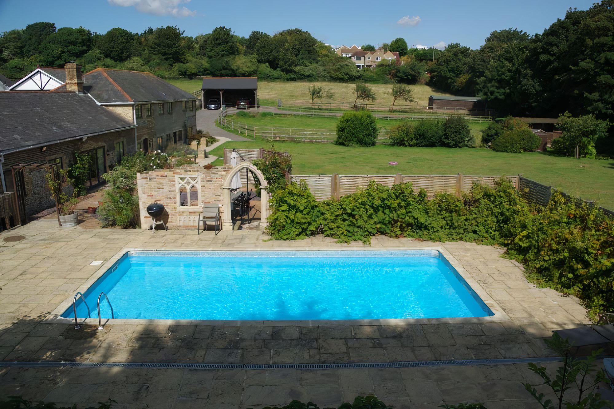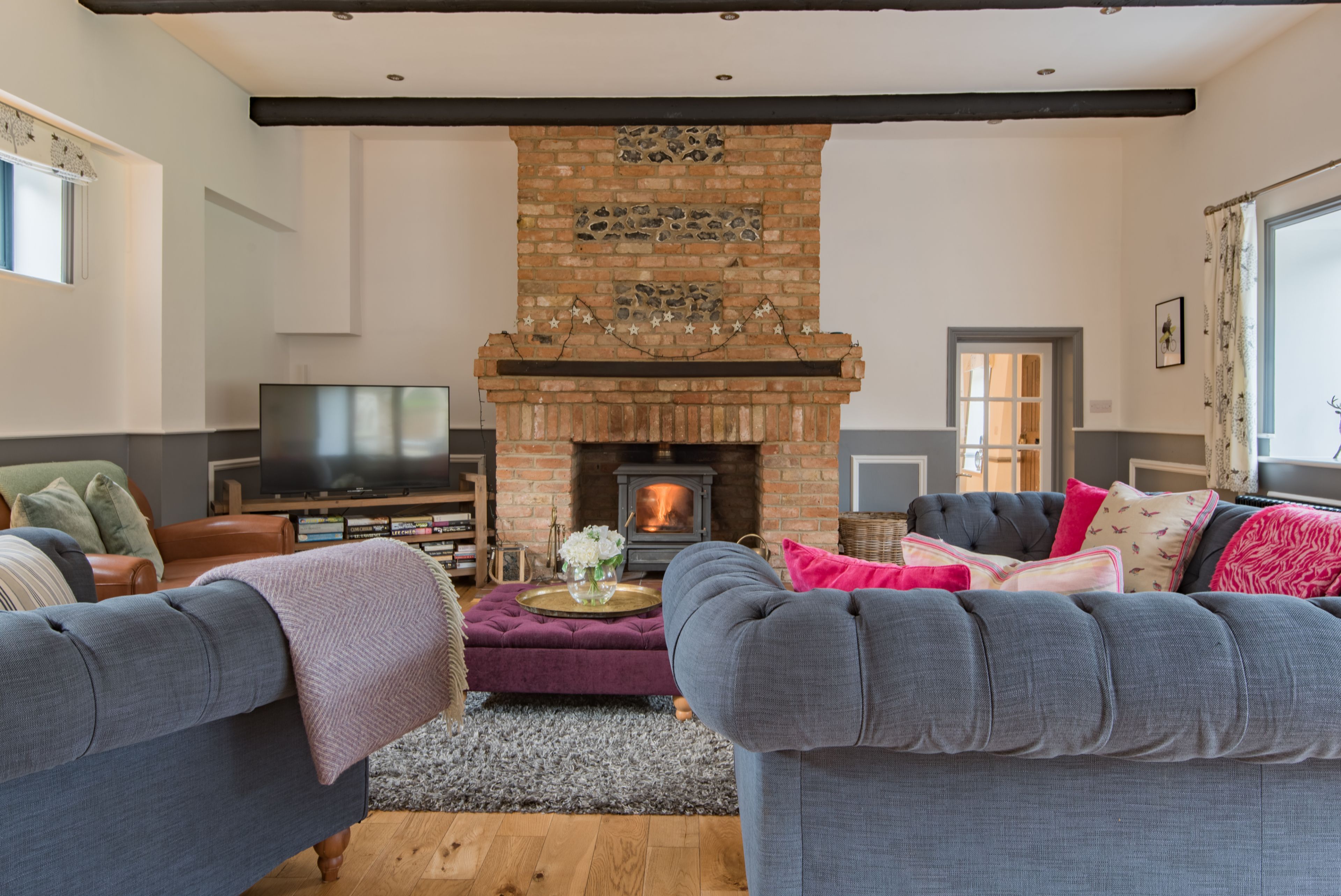 Your coastal country break starts at this converted flint stone barn, a ten-minute walk from the beach. With its own heated pool in the summer and a games room as well-equipped as the kitchen, there's more than enough space here for extended families and large groups of friends. The home's rustic charm has been retained in the exposed brick and wooden beams, while the log burner is just oh-so inviting for cosy evenings indoors. Furry friends are welcome to join you for a fee, and you'll find plenty of scenic walks nearby. Not to mention the golf club, local pubs and shops, and sandy coast of Kingsdown village are easily reached on foot.