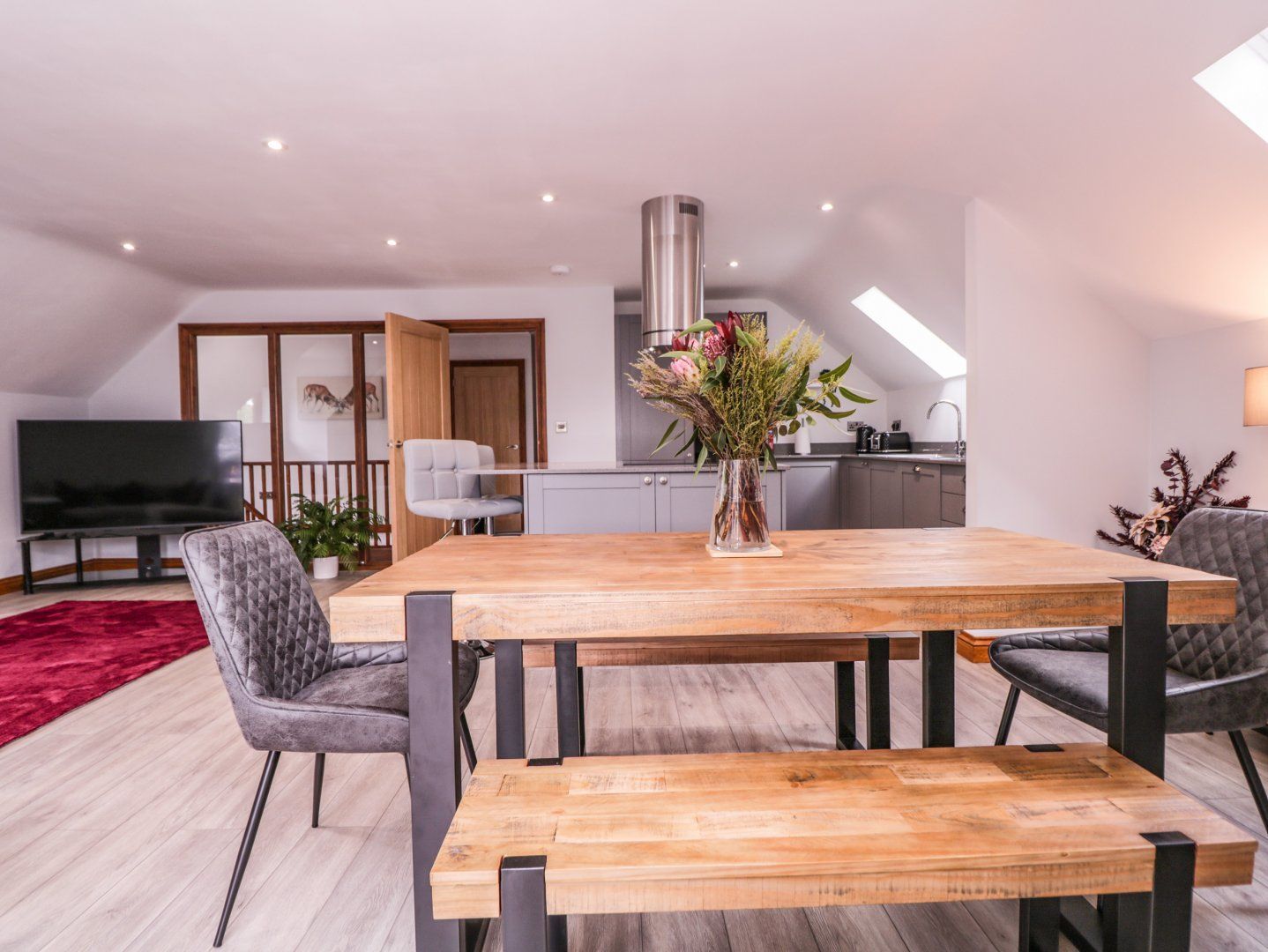 Holiday home The living areas in the property consist of an open-plan living area with electric oven and induction hob, microwave, fridge/freezer, washing machine, dishwasher, coffee machine, dining seating for six people, and a sitting room with Smart TV and balcony with furniture. The bedrooms consist of a king-size and a double, both with Jack-and-Jill access to a shower room, and a single with trundle, all with Smart TVs, along with a bathroom and Jack-and-Jill shower room. Outside, there is a rear garden with lawn, patio, and furniture, as well as off-road parking. Within 0.5 miles, you will find a shop, and within 1.8 miles, you will find a pub, and please note that this is a non-smoking property. WiFi, fuel, power, bed linen and towels are all included in the price. Pets are not permitted. Whisk the ones who mean most away to The Barn at Mulberry Lodge. Note: No stag/hen parties or similar.