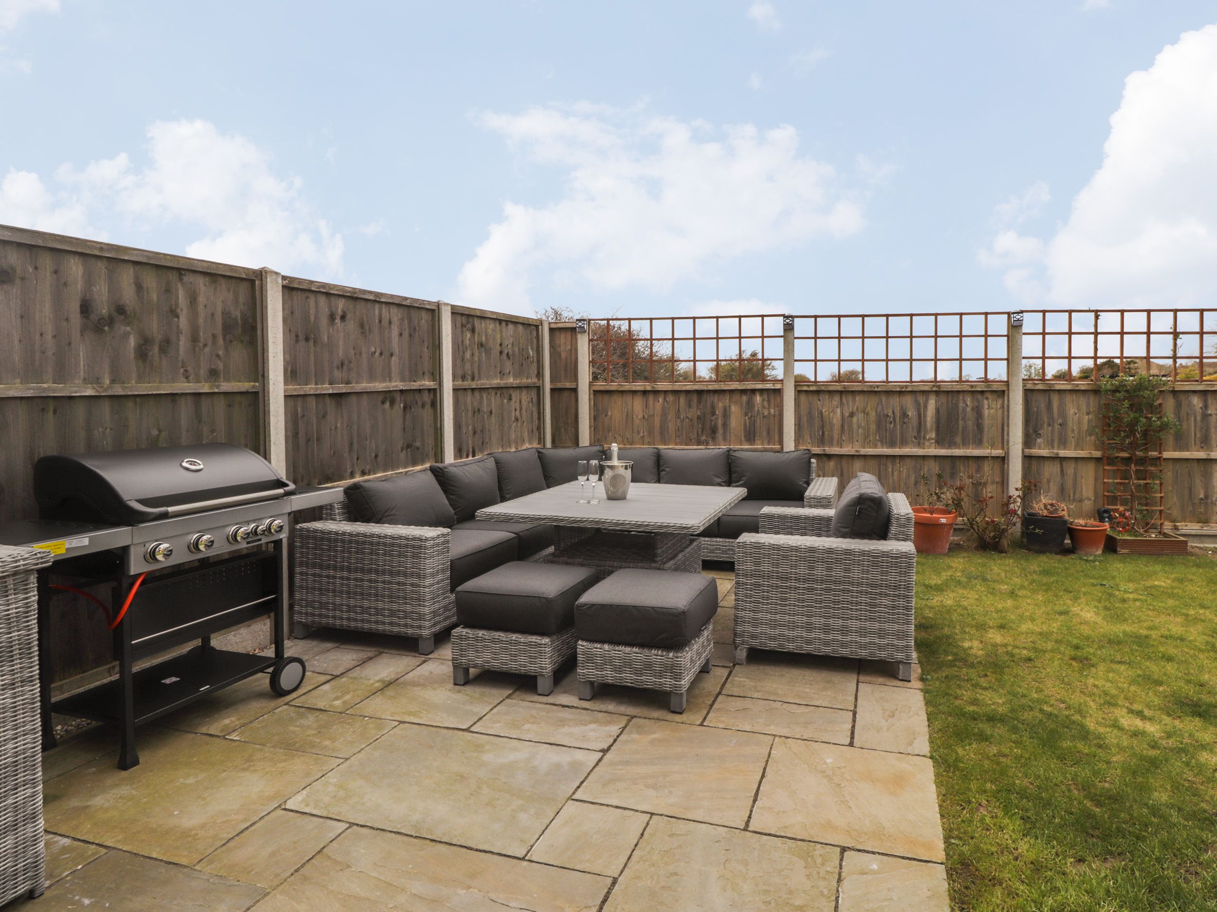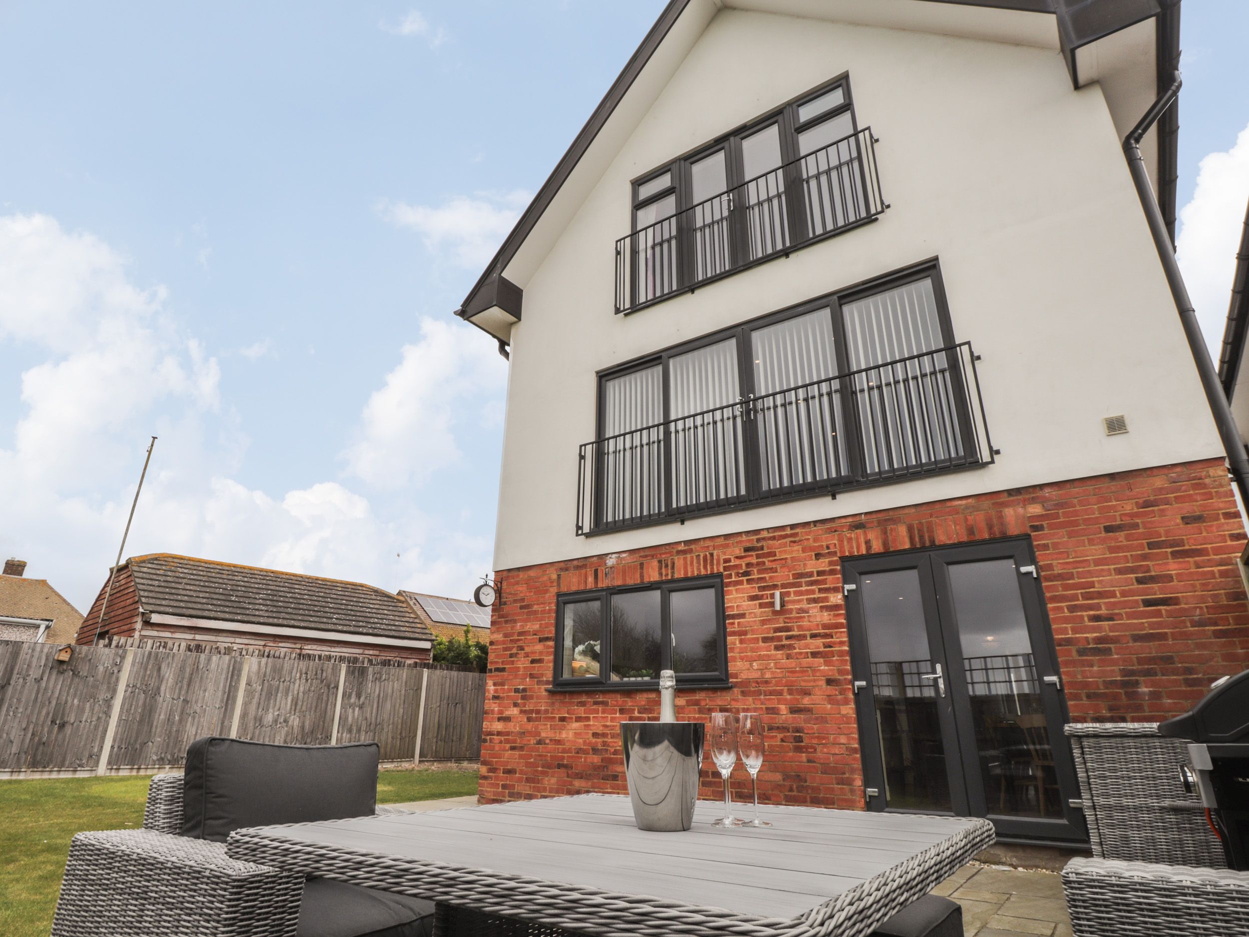 The Hideaway Beach House is a contemporary, detached property resting in Littlestone near Greatstone-On-Sea, Kent. The property sleeps eight guests in four bedroom, comprising two second-floor king-size doubles with en-suite shower rooms, one of which has a Juliet balcony, along with a double and a twin. There is a bathroom with bath and shower over, a cloakroom/laundry room, a kitchen/diner and a first-floor sitting room with woodburning stove and Juliet balcony. Outside, there is off-road parking for six cars and an enclosed patio and lawn garden with a children's play area. The Hideaway Beach House is well-placed for a Kent holiday by the sea.